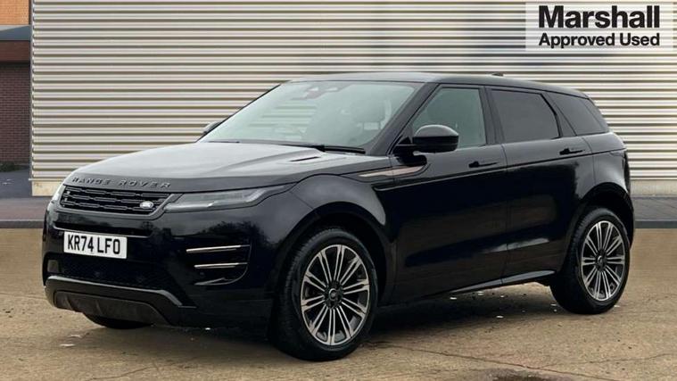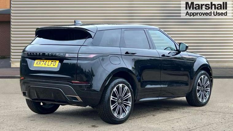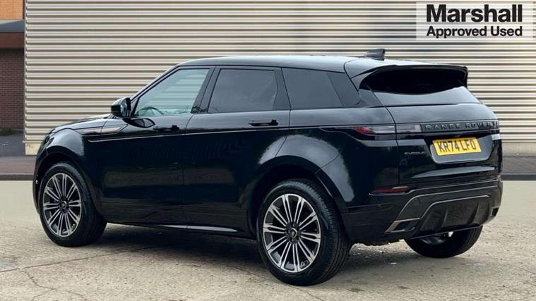 11.4" touch screen, Adaptive cruise control, Android Auto, Apple car play, Blind spot assist, Bluetooth connectivity, Brake pad wear indicator warning light, Driver condition monitor, eCall emergency system, Eco mode, Electronic power assisted steering (EPAS), Front and rear parking aid, InControl remote, Interactive driver display, Land Rover InControl apps, Lane keep assist, Pivi pro connected includes diamond pivi variant, smart settings, connected navigation pro, nuance speech licence, Powered tailgate/boot lid, Rear collision monitor, Rear traffic monitor, Traffic sign recognition with adaptive speed limiter, Voice control system, Wireless device charging, All terrain progress control, Diesel exhaust fluid (DEF) large tank, Efficient Driveline, Large fuel tank, Passive suspension, Terrain Response 2, Digital Audio Broadcast radio-DAB, Steering wheel mounted controls, Acoustic laminated windscreen, Auto headlights, Automatic headlight levelling, Electric windows with one touch open/close and anti trap, Flush deployable exterior door handles, Front and rear recovery eyes, Heated rear window with timer, Heated washer jets, Heated windscreen, Pixel LED headlights with signature DRL and LED tail Lights, Power fold, auto-dimming, heated door mirrors with approach lights and auto dimming driver side, Rain sensing windscreen wipers, Rear animated directional indicators, Rear fog lights, Rear side wing doors, Rear wiper, Side repeater indicators in mirror, Tailgate spoiler, Third brake light, Winter wiper park position, 14 way driver memory electric front seats with 2 way manual headrests + 4 way lumbar support, bolsters, 40:20:40 split folding rear seats with centre headrest and armrest, Ambient interior lighting, Bright metal pedals, Carpet mats, Chrome tread plates with range rover branding Includes stainless steel loadspace scuff plate with etched graphic, Customer configurable single point entry, Electrically adjustable steering column with memory function and easy entry/exit, Front and rear cupholders, Heated steering wheel, Isofix system on outer rear seats, Overhead lighting console, Overhead stowage for sunglasses, Passive front head restraints, Rear air vents, Rear head restraints, Satin chrome gearshift paddles, Single passenger seat, Sunvisors with illuminated vanity mirrors, Twin sliding front centre armrest, Online pack with data plan - Evoque, Power socket pack 2 - Evoque, 3 rear 3 point seatbelts, Anti-lock braking system (ABS), Brake hold function, Customer configurable autolock, DSC - Dynamic Stability Control, Electronic brake force distribution, Electronic parking brake, Electronic traction control, Emergency braking, Front and rear seatbelt reminder, Hill descent control, Hill launch assist, Low traction launch, Occupant protection assist, Passenger seat occupant detector, Power operated child locks, Roll stability control, Six airbags - Driver and passenger airbags/driver knee airbag/front side airbag and curtain airbags, Torque vectoring brake, Tyre pressure monitoring system, Alarm, Immobiliser, Intrusion sensor, Keyless entry, Locking wheel nuts,