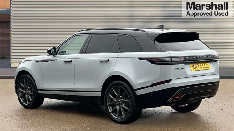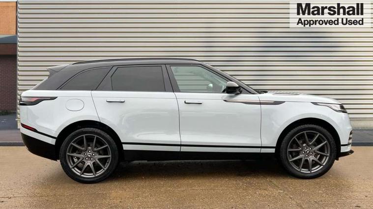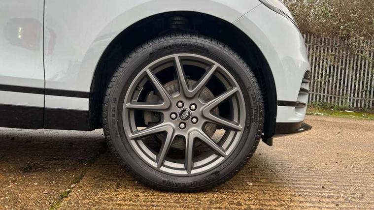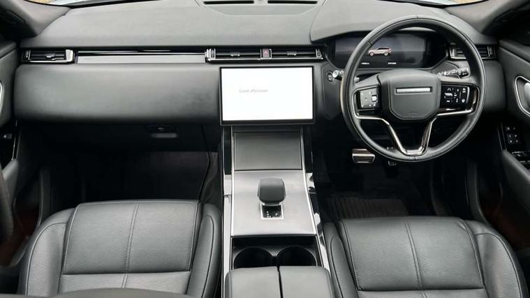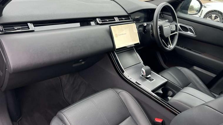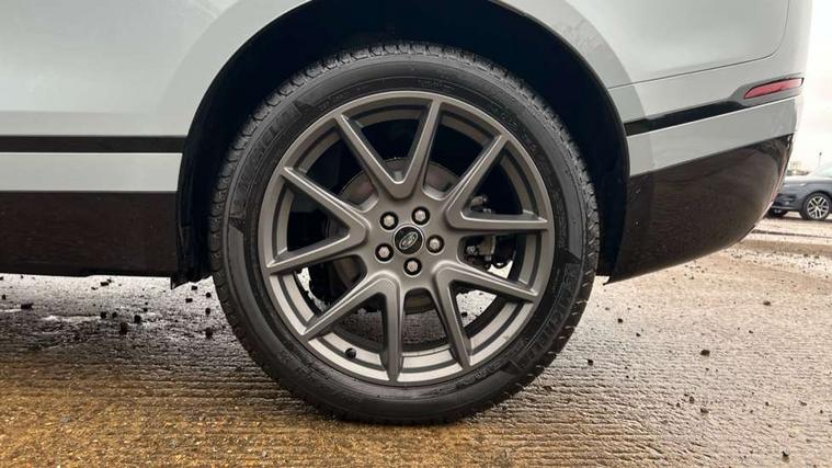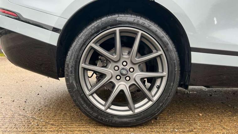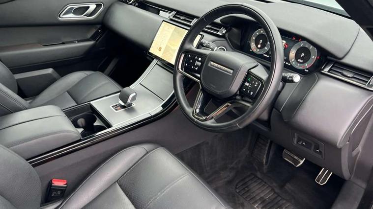 Adaptive cruise control with steering assist, Android Auto, Apple CarPlay, Blind spot assist, Bluetooth connectivity, Brake pad wear indicator warning light, Driver condition monitor, eCall emergency call system, Front and rear parking aid, InControl remote, Land Rover InControl apps, Lane keep assist, Pivi pro with connected navigation, Rear collision monitor, Rear traffic monitor, Service indicator, Speed proportional electronic power assisted steering (EPAS), Traffic sign recognition with adaptive speed limiter, Trip computer, Voice control system, Wireless device charging, 8 speed automatic transmission, Adaptive dynamics, All terrain progress control, Electronic air suspension, Open differential with torque vectoring by braking, Single speed transfer box, DAB radio, Steering wheel mounted controls, 3rd brake light, Acoustic laminated windscreen, Auto dimming interior rear view mirror, Automatic headlamp levelling, Automatic headlights, Body coloured bumpers, Boot protection plate, Electric windows with one touch open/close and anti trap, Flush deployable exterior door handles, Follow me home headlights, Heated rear window with timer, Heated washer jets, Heated windscreen, Metal front tread plates, Metal load space scuff plates, Pixel LED headlights with signature DRL, Power fold, auto-dimming, heated door mirrors with memory and approach lights, Rain sensor windscreen wipers, Rear animated directional indicators, Rear fog lights, Rear side wing doors, Rear wash/wipe, Tailgate/boot lid spoiler, Trailer stability assist, Velar badge, 3 seat bench in 2nd row, Ambient lighting, Bright metal pedals, Carpet mats, Driver/passenger sunvisors with illuminated vanity mirrors, Ebony morzine headlining, Electrically adjustable steering column, Extended leather upgrade, Heated steering wheel, Isofix system on outer rear seats, Loadspace cover, Overhead lighting console, Overhead stowage for sunglasses, Passive front headrests, Rear air vents, Rear centre headrest, Single front passenger seat, Twin front cupholders, Twin sliding front centre armrest, Online pack with data plan - Velar, Power socket pack 2 - Velar, 355mm Front and 325mm Rear brakes, 3x3 point rear seatbelts, Anti-lock braking system (ABS), Cornering brake control, Curtain airbags, Customer configurable autolock, Door side intrusion beams, Driver airbag, DSC - Dynamic Stability Control, Electronic brake force distribution, Electronic parking brake, Electronic traction control, Emergency braking, Front and rear seatbelt reminder, Hill descent control, Hill launch assist, Low traction launch, Passenger airbag, Power operated child locks, Rear airbags, Roll stability control, Side airbags, Tyre pressure monitoring system (TPMS), Global lock and unlock switch on driver door, Immobiliser, Intrusion sensor, Keyless entry, Lock only switch on front passenger door, Locking wheel nuts, Perimetric alarm, Remote central locking, All season tyres,