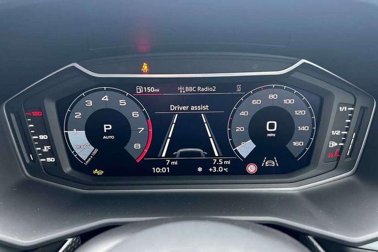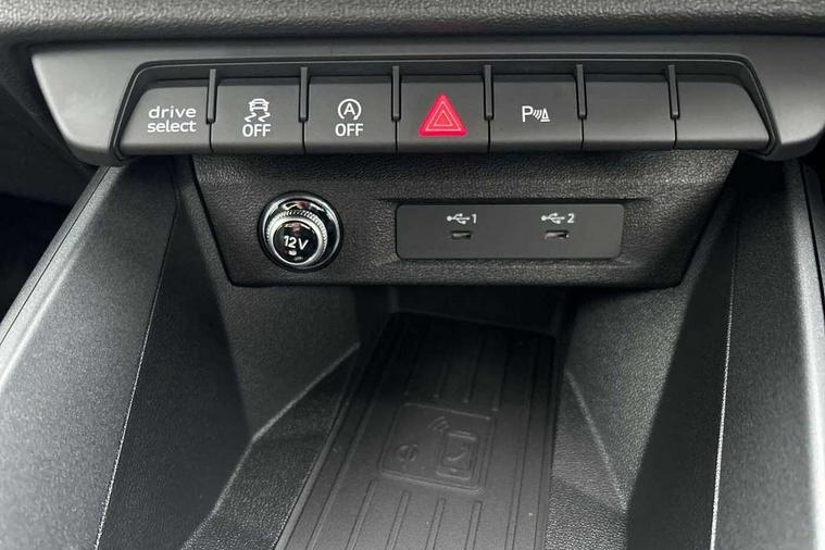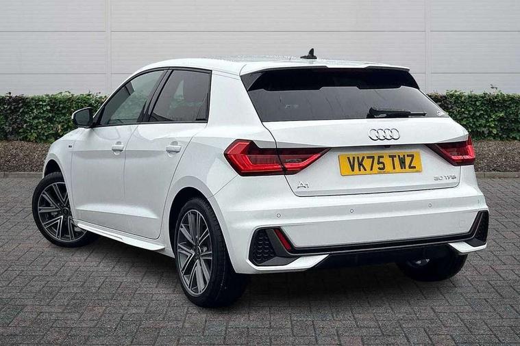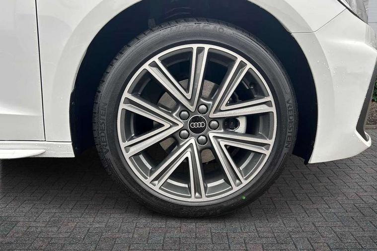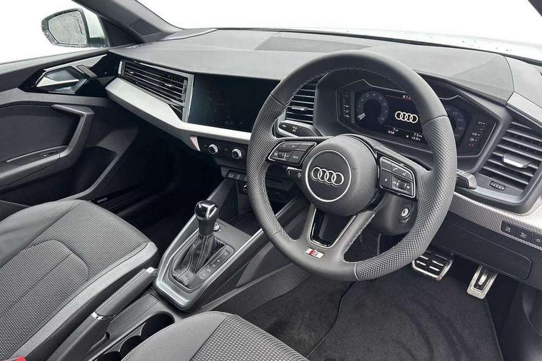 10.25" Digital instrument cluster display classis style instrument dials + speed, odometer, time, outside temperature, telephone menu + fuel level warning, Advanced driver attention and drowsiness monitor, Audi connect emergency call and service, Audi drive select, Audi remote connect and control, Bluetooth interface, Camera based traffic sign recognition, Cruise control, Driver's information system, Electromechanical power steering, Lane departure warning system, Rear parking sensor, Service interval indicator, Smartphone interface, Speed limiter, Start stop system with recuperation, Voice control system, Washer fluid level indicator, Sports suspension, 2 x USB type C connection points, 6 loudspeakers, DAB Digital radio, MMI radio plus with 10.1" colour MMI display screen and MMI touch, Auto dimming rear view mirror, Body coloured door mirrors, Door sill trims with aluminium inlays and S line logo in front, Electric front and rear windows, Electrically adjustable, heated, folding door mirrors with integrated LED side indicator, Front side air inlets in grained matt black and C frame in anthracite black, Headlight cleaning system, Heat insulating glass windscreen and side windows, Heated rear windscreen, High level LED brake light, LED daytime running lights, LED headlights with range control LED rear lights + dynamic rear indicators, Light and rain sensors, Privacy glass, Radiator grille and rear diffuser in matt anthracite black, Radiator protective grille frame in matt aluminium silver, Rear fog lights, Rear side wing doors, Rear wiper, Side front spoiler lips in grained matt black, 12V socket in centre console with two cup holders, 3 rear seats with headrests, 3 seat bench in 2nd row, 3 spoke leather multi-function plus steering wheel features S badging and grips in perforated leather with contrast stitching, 40:60 Split folding rear seat or fully collapsed, Black carpets, Black cloth headlining, Front and rear velour black floor mats with contrast stitching in fine silver, Front head restraints, Front passenger seat, Height and reach adjustable steering wheel, Interior lighting includes roof module, front and rear reading lights and right luggage compartment lighting, ISOFIX child seat mounting for front passenger and outer rear seats including top tether attachment point of outer rear seats, Leather gear knob with aluminium trim, Leather handbrake grip, Manual air conditioning, Manual height adjustable for driver and front passenger seat, Manually adjustable lumbar support in front seats, Stainless steel pedals, Ambient lighting package - A1, Luggage compartment pack - A1, S line exterior styling pack - A1 Sportback, 3x3 point rear seatbelts, Audi pre-sense front with pedestrain and cyclist recognition, Brake assist function, Driver and front passenger airbag with front side and head airbags, Electronic Stability Control including ABS, EBD, ASR and EDL, Front passenger airbag deactivation switch, Hill hold assist, Manual rear child locks, Seatbelt height adjustment for front seats, Seatbelt monitoring, Tyre pressure loss indicator, Warning triangle and first aid kit, Anti theft alarm, Anti theft wheel bolts, Immobiliser, Remote control key with safelock, Aluminium trim for control switches, air vents and digital instrument cluster, Black dashboard, Silver grey inlays polygon structure in diamond paint finish, Structured grey accent surfaces insert of air vents, interior door handle recesses and centre console in quartz paint finish,