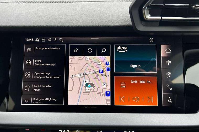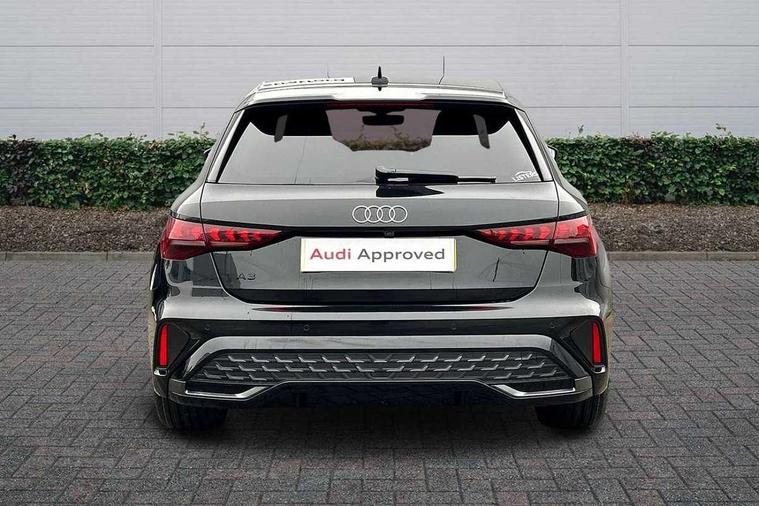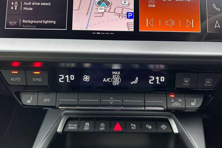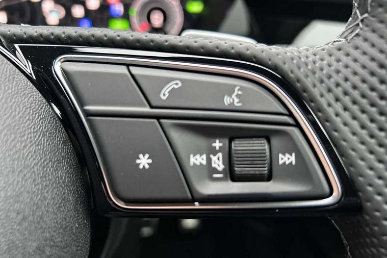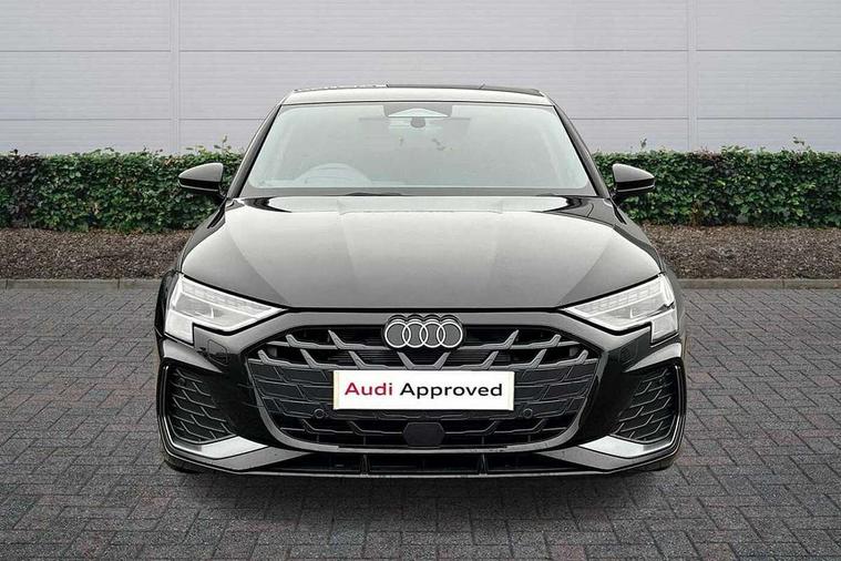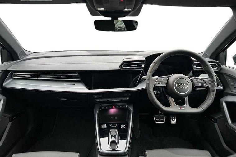 Adaptive cruise control (ACC), Adjustable speed limiter, Audi drive select (Auto, Comfort, Dynamic, Efficiency and Individual), Audi virtual cockpit plus - 12.3" full HD resolution dynamic digital instrument cluster, Automatic start/stop system with recuperation, Bluetooth interface, Camera based traffic sign recognition, Collision avoidance assistant, Driver attention and fatigue detection, e-Call (emergency call), Electromechanical power speed sensitive steering, Emergency assist, Intersection assist, Lane departure warning system, MMI Navigation Plus with high resolution 10.1" colour touch screen display, Park Assist with parking system Plus, Reversing camera, Service indicator, Smartphone interface with app store includes wireless Apple carplay, Android auto and Amazon alexa integration, Trip computer, Voice control system with natural language interaction, Sports suspension, Audi Phonebox light with wireless charging, Audi sound system - 10 loudspeakers including centre loudspeaker and subwoofer, DAB Digital radio, USB ports with charging function in the rear, Acoustic glass windscreen, All weather light, Aluminium window trim, Auto dimming frameless rear view mirror, Automatic dynamic range control, Body colour exterior mirrors, Dipped beam, main beam, position light and turning light, Electrically adjustable/heated/folding/auto dimming door mirrors with integrated LED indications + kerb view function for passenger side, Exterior model badging, Front and rear side air inlets in grained matt black with dark liquid chrome frame, Front electric windows, Front radiator grill in high gloss dark chrome, Heat insulating glass windscreen, Illuminated door sills with aluminium inserts at the front with S logo, Intersection light, Invisible tailpipe, LED 3rd brake light, LED brake lights, LED daytime running x3, LED headlights with LED rear lights and dynamic rear indicators, LED rear number plate lights, LED reverse light, LED tail lights, Light and rain sensors, Manoeuvring light, Motorway light, Privacy glass - dark tinted rear window, rear door and side windows, Rear diffuser and grill in grained matt black with inlay in dark liquid chrome, Rear electric windows, Rear side wing doors, Rear wiper, S line bumpers, S roof spoiler, Side S line emblems on front wings, Side sill trim in dark liquid chrome, Static cornering light, 12V socket and storage compartment in front centre console, 3 seat bench in 2nd row, 3 spoke flat bottomed leather multifunction sport steering wheel with gear shift paddles, 3-zone deluxe automatic air conditioning, 4 way electrically adjustable lumbar support for driver and front passenger, 40/20/40 split folding rear seat bench, Black cloth headlining, Black front and rear floor mats, Front and rear centre armrest in artificial leather with contrasting stitching on armrests and instrument panel, Front and rear headrests, Heated front seats, Height and reach adjustable steering wheel, i-Size child seat mounting on the front passenger side and outer rear seats, i-Size and top tether on the outer rear seats, Manual boot compartment lid, Manually adjustable front seats, Rear centre armrest with cupholder, S badging on the steering wheel, Seat side bolsters, Single front passenger seat, Stainless steel pedals and front footrest in black, Twin leather upholstery with front sports seats S embossed logo, Aluminium interior elements pack - A3, Multi-coloured LED interior lighting package with Multi-coloured contour lighting of instrument panel - A3, 3x3 point rear seat belts, Driver and front passenger airbag with passenger airbag deactivation, Electronic Stabilisation Control (ESC) including ABS, ASR and EDL, First aid kit with warning triangle and 2 safety vests, Front side airbags with head airbags and interaction airbag, Hill hold assist, Pre-sense front with pedestrian and cyclist detection, Seatbelt monitoring, Tyre pressure loss indicator, Anti theft alarm, Anti-theft wheel bolts, Electronically operated child locks, Immobiliser, Black dashboard, Inlay in dark aluminium spectrum,