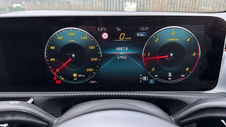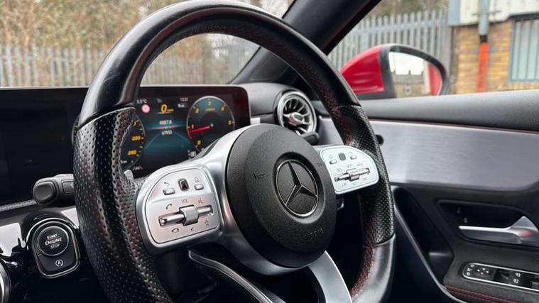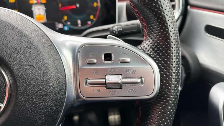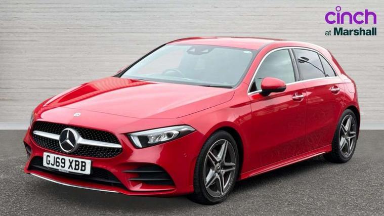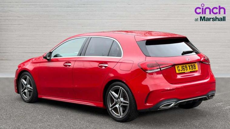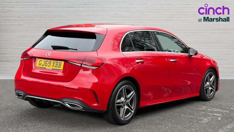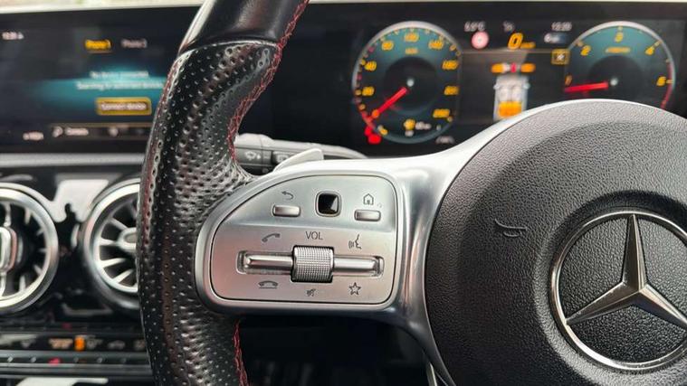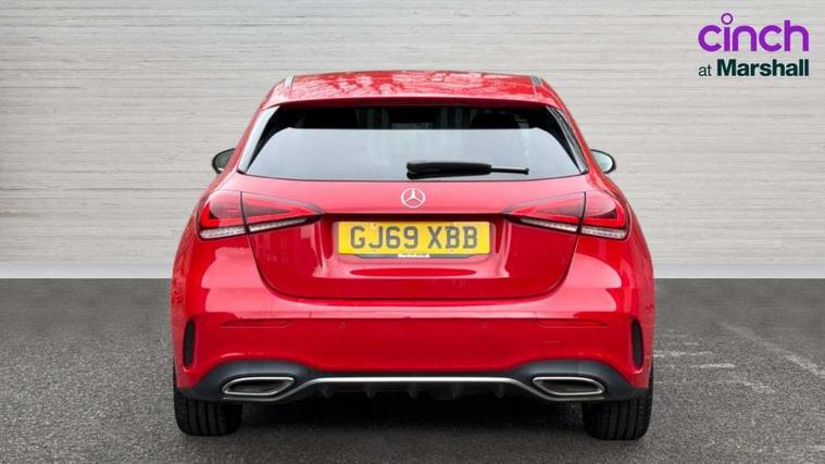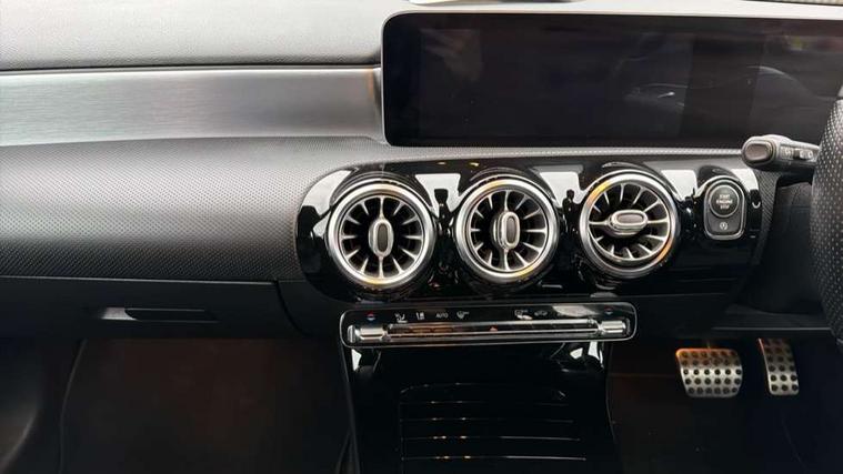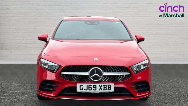 10.25" Digital instrument cluster display screen, 180 degree rear view camera with parking guidelines, Active lane keep assist, Active park assist with parktronic system including front and rear parking sensors, Attention assist, Brake pad wear indicator warning light, Direct steering, DYNAMIC SELECT with a choice of driving modes (ECO, Comfort, Sport and Individual), ECO start/stop function, Fluid level warning indicator for fuel, oil, coolant and washer fluid, Hard-disk navigation, Hey Mercedes Voice activation, Lamp failure indicator, MBUX multimedia system with DAB digital radio and touchpad including satellite navigation, Mercedes me connect including emergency call system, accident recovery, breakdown management and maintenance, Outside temperature gauge, Radio aerial integrated into roof spoiler, Service indicator (ASSYST), Speed sensitive power steering, Trip computer, Lowered comfort suspension, DAB Digital radio, Dual bluetooth interface, 2 USB ports (type C), Mid-range sound system, 4 Electric Front and Rear windows, Adaptive brake lights, AMG front, rear apron and side skirts, Blue tinted glass, Body colour bumpers, Body colour door handles, Body colour side skirt, Body coloured door mirrors, Chrome beltline trim, Diamond radiator grille with chrome pins and silver louvre + chrome insert, Electric adjustable and heated door mirrors with integrated LED side indicators, Exhaust system - Twin trapezoidal tailpipes in polished stainless steel, Headlamp assist automatic headlamp activation, Heated glass rear windscreen + timer control, LED high performance headlamps with integrated LED daytime running lights, LED tail lamp, LED third brake light, Privacy glass, Rain sensor windscreen wipers, Rear fog lights, Rear wiper, 12V socket, 3 Spoke flat bottom leather multi function steering wheel with perforated leather in grip area, 40:20:40 split folding rear seats, Air vents surround and cruciform nozzle in silver chrome, AMG floor mats with red stitching, Artico man-made leather/Microfibre Dinamica upholstery with red contrast stitching, Auto Mercedes-Benz child seat recognition sensor, Black roof lining, Brushed stainless steel sports pedals with rubber studs, Controller on centre console with chrome surround, Cup holder and stowage compartment lighting, Freight packaging without tie-down hooks, Front centre armrest with storage compartment, Front door sills with Mercedes benz lettering, Front footwell lights, Front reading lamps in left and right console downlighter, Front seat backs luggage nets, Front seat cushion length adjustment, Front signal exit lamp, Front vanity lights, Gearshift paddles on steering wheel, Handle recess/closing light, Heated front seats, Height/reach adjustable steering column, Illuminated door sills, Illuminated glove compartment stowage, Interior lighting - 64 colour Ambient lighting, ISOFIX Child seat top tethers and anchor fixings, Luggage compartment cover, Manual height adjustable front seats, Oddments tray lighting, Rear armrest, Rear head restraints, Rear Reading Lamps, Seat occupancy sensor for front passenger seat, Spectacles compartment for driver, Sports seats with integrated headrests, Storage compartment under load area floor, Stowage compartment in centre console with retractable cover, Sunvisors with illuminated vanity mirrors, Touchpad, Touchpad illumination, Twin front cupholders, Two zone thermotronic luxury automatic climate control, Light and sight pack - A Class, Mirror package - A Class, Seat comfort pack - A Class, 3 rear 3 point seatbelts, ABS with Brake Assist, Active bonnet, Adaptive brake assist with hold function and hill start assist, Black seatbelts, Childproof locks manually operated for rear doors and electrically operated for rear power windows, Crash responsive emergency lighting, Driver and passenger head and side airbags, Drivers knee airbag, Dual stage driver/passenger airbags, Electronic parking brake, ESP curve dynamic assist, ESP with ASR, Front and rear seatbelt reminder, Front brake callipers with Mercedes Benz lettering, Tyre pressure monitoring system, Warning triangle and first aid kit, Window airbags, Alarm system/interior protection/immobiliser, Keyless entry lock/unlock, Remote central locking and crash sensor with emergency opening function, 18" AMG 5 twin spoke light alloy wheels in titanium grey with highsheen finish, Summer tyres, Tirefit sealant kit,