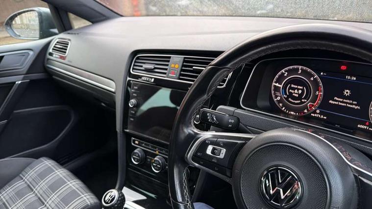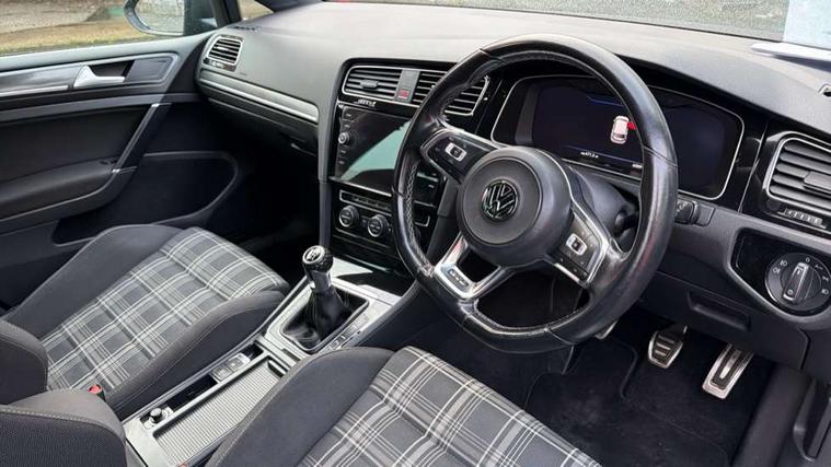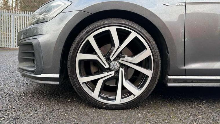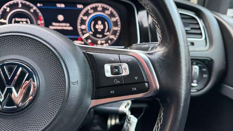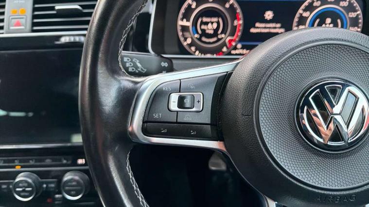 'Lights On' Reminder warning buzzer, 8" touch screen, Adaptive Cruise Control with pedestrian detection and speed limiter, App-Connect, Bluetooth hands free telephone connection, Brake pad wear indicator warning light, Drive mode selector, Driver alert system, Driver profile selection, Exterior temperature gauge, Instrument cluster in white, Multifunction computer, Progressive power assisted steering, Rev counter, Trip and service interval display, Ultrasonic front and rear optical and audible parking sensors, Warning buzzer and light for front seatbelts unfastened, Anti-tramp function, Diesel particulate filter, Lowered sports suspension, XDS plus electronic differential lock, CD/MP3/WMA, USB and SD card reader, aux-in, Composition media system, DAB Digital radio, 3D-LED-SBBR with sweeping indicator, Auto dimming rear view mirror, Automatic coming/leaving home lighting function, Automatic headlights, Black rear diffuser, Body colour door handles, Body colour door mirrors, Body colour rear roof spoiler, Body colour sports bumpers, Electric front windows, Electric rear windows, Electrically adjustable and heated door mirrors, Heated rear windscreen, Honeycomb radiator grille - black, LED daytime running lights, LED front fog lights, LED rear lights, Rain sensor, Rear windscreen washer and wiper with interval delay, Twin exhaust tailpipe, 12V socket in luggage compartment, 3 rear headrests, 3 spoke steering wheel, 60/40 split folding rear seat, Air conditioning - 2 zone electronic climate control, Bag hook in luggage compartment, Black headlining, Boot lashing points, Cooled glovebox, Courtesy light delay, Cover for storage compartment in centre, Dust/pollen filter, Front + rear carpet mats, Front centre armrest with storage box and rear air vents, Front passenger drawer stowage, Front passenger seat height adjust, Front seat back storage pockets, Grab handles, Height/reach adjust steering wheel, Illuminated door sills, Illuminated vanity mirrors, Isofix preparation for 2 rear child seats, Leather gear knob and handbrake grip, Load through provision with rear centre armrest and cupholders x2, Luggage compartment cover, Luggage compartment lighting, Multifunction leather steering wheel with grey stitching leather trimmed gear knob including paddle shift, Overhead storage box, Stainless steel pedals, Storage box in luggage compartment, Storage compartments in doors, Sun visors, Variable boot floor, height adjustable and removable, Ambient lighting pack - Golf, Mirror pack - Golf, 3 point height adj front seatbelts + pretensioners, 3 rear 3 point seatbelts, ABS, Automatic post collision braking, Child locks on rear doors, Driver/Front Passenger airbags, Driver/Passenger whiplash optimised head restraints, Drivers knee airbag, Electronic parking brake with auto hold, ESP with EDL + ASR, Front and rear curtain airbags, Front passenger airbag deactivation, Front side airbags, Pre crash system, Tyre pressure monitor, Alarm with interior protection, Electronic engine immobiliser, Remote central locking with 2 remote folding keys, Chrome-plated light switch surround, Honeycomb black decorative inserts, Piano black centre console, Space saver spare wheel,