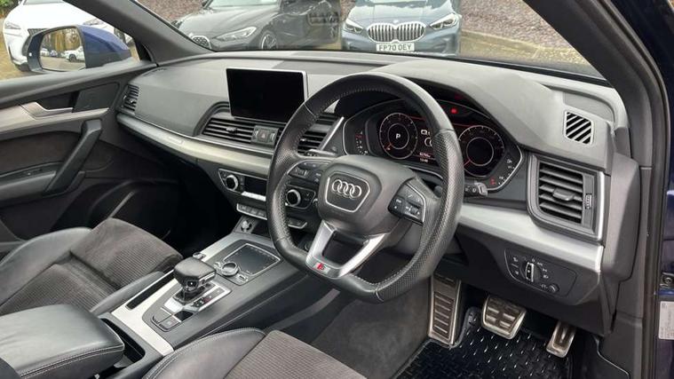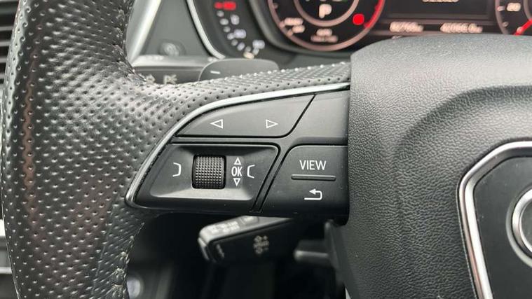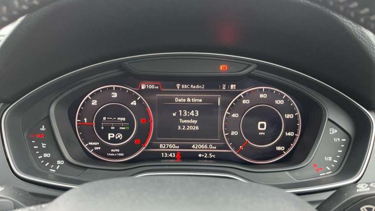 Audi connect, Audi drive select, Audi smartphone interface, Driver information centre with colour display in instrument panel, Electric power steering, Power tailgate, Remote electric boot opening/closing, SD card based MMI navigation, Service interval indicator, Voice control system, Diesel particulate filter, 2 USB ports, Audi sound system, Auxiliary input socket, CD player, DAB Digital radio, MMI radio plus with 7" colour MMI screen and MMI controller, Acoustic windscreen, Aluminium roof rails, Aluminium sill plates, Auto dimming rear view mirror, Black high gloss front air inlet in matt aluminium effect, Body colour bumpers, Body colour door mirrors, Body colour rear diffuser insert, Chrome exhaust tailpipe, Electric headlight adjustment, Electrically adjustable and heated door mirrors, Front and rear electric windows, Front fog lights, Headlight range control, Headlight washers, Honeycomb side air inlet in titan black, Light and rain sensor for auto activation of lights and windscreen wipers, Loading sill protector in stainless steel, Privacy glass with front acoustic glazing, Rear diffuser strip in matt aluminium silver, Rear spoiler, Rear wiper, S Line side skirts, Selenite silver underbody guard, Twilight grey matt radiator grille with matt aluminium horizontal chrome struts, 3 rear headrests, 3 zone climate control, 4 way electric lumbar support for driver and front passenger, 40:20:40 split folding rear bench seat, Black cloth headlining, Front centre armrest with 12v socket, Front sports seats, Front/rear floor mats, Height adjustable driver's seat, Height adjustable front head restraints, Illuminated door sills, Isofix front passenger and rear seat preparation, Jack and tool kit, Load compartment cover, Luggage compartment carpet, Matt selenite silver door inserts, Perforated leather gearknob, Reach + rake adjustable steering column, Removable luggage compartment floor, Removable net partition, Roller blind loadspace cover, Stainless steel pedals, Sunvisors with vanity mirrors, Non Smokers pack, 3 point seatbelts on all seats, ABS, Curtain airbags, Driver and passenger airbags, Driver and passenger side airbags, Electromechanical parking brake, ESC with ASR, ESP, First aid kit, Front passenger airbag deactivation, Hill descent control, Seat belt force limiter, Seatbelt warning lamp, Traction control, Tyre pressure monitor, Warning triangle, Keyless Go access/ignition system, Locking wheel bolts, Remote central locking, Thatcham category 1 alarm + immobiliser, Contrast stitching,