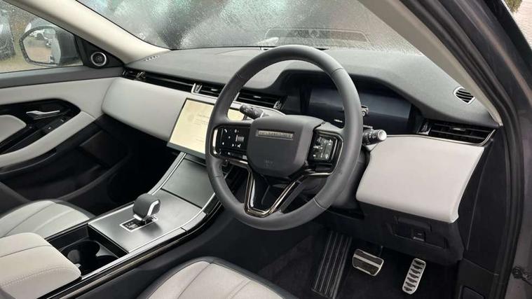 11.4" touch screen, 3D 360 degree surround camera with wade sensing, Adaptive cruise control, Android Auto, Apple car play, Blind spot assist, Bluetooth connectivity, Brake pad wear indicator warning light, Driver condition monitor, eCall emergency system, Eco mode, Electronic power assisted steering (EPAS), Front and rear parking sensors with auto brake, InControl remote, Interactive driver display, Land Rover InControl apps, Lane keep assist, Pivi pro connected includes diamond pivi variant, smart settings, connected navigation pro, nuance speech licence, Powered tailgate/boot lid, Rear collision monitor, Rear traffic monitor, Tailgate, Traffic sign recognition with adaptive speed limiter, Voice control system, Wireless device charging, All terrain progress control, Diesel exhaust fluid (DEF) large tank, Efficient Driveline, Large fuel tank, Terrain Response 2, Digital Audio Broadcast radio-DAB, Steering wheel mounted controls, Acoustic laminated windscreen, Auto headlights, Auto high beam assist, Automatic headlight levelling, Electric windows with one touch open/close and anti trap, Flush deployable exterior door handles, Front and rear recovery eyes, Heated rear window with timer, Heated washer jets, Heated windscreen, LED headlights with signature DRL and LED tail Lights, Power fold, auto-dimming, heated door mirrors with approach lights and auto dimming driver side, Rain sensing windscreen wipers, Rear animated directional indicators, Rear fog lights, Rear side wing doors, Rear wiper, Side repeater indicators in mirror, Tailgate spoiler, Third brake light, Winter wiper park position, 12 way driver memory and 10 way passenger electric front seats with 2 way manual headrest + 4 way lumbar support, 40:20:40 split folding rear seats with centre headrest and armrest, Ambient interior lighting, Bright metal pedals, Carpet mats, Chrome tread plates with range rover branding Includes stainless steel loadspace scuff plate with etched graphic, Customer configurable single point entry, Front and rear cupholders, Heated front seats, Heated steering wheel, Isofix system on outer rear seats, Manually adjustable steering column, Overhead lighting console, Overhead stowage for sunglasses, Passive front head restraints, Rear air vents, Rear head restraints, Satin chrome gearshift paddles, SE Grained leather upholstery, Single passenger seat, Standard steering wheel with Moonlight Bezel, Sunvisors with illuminated vanity mirrors, Twin sliding front centre armrest, Power socket pack 2 - Evoque, 3 rear 3 point seatbelts, Anti-lock braking system (ABS), Brake hold function, Customer configurable autolock, DSC - Dynamic Stability Control, Electronic brake force distribution, Electronic parking brake, Electronic traction control, Emergency braking, Front and rear seatbelt reminder, Hill descent control, Hill launch assist, Low traction launch, Occupant protection assist, Passenger seat occupant detector, Power operated child locks, Roll stability control, Six airbags - Driver and passenger airbags/driver knee airbag/front side airbag and curtain airbags, Torque vectoring brake, Tyre pressure monitoring system, Alarm, Immobiliser, Intrusion sensor, Keyless entry, Locking wheel nuts, All season tyres,