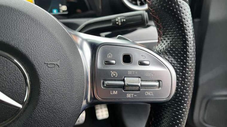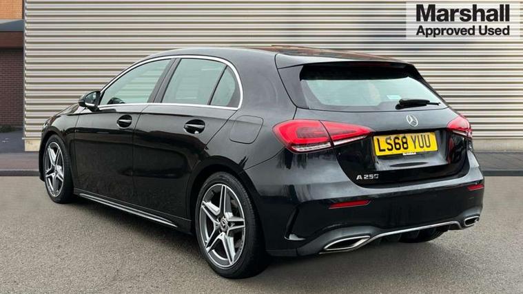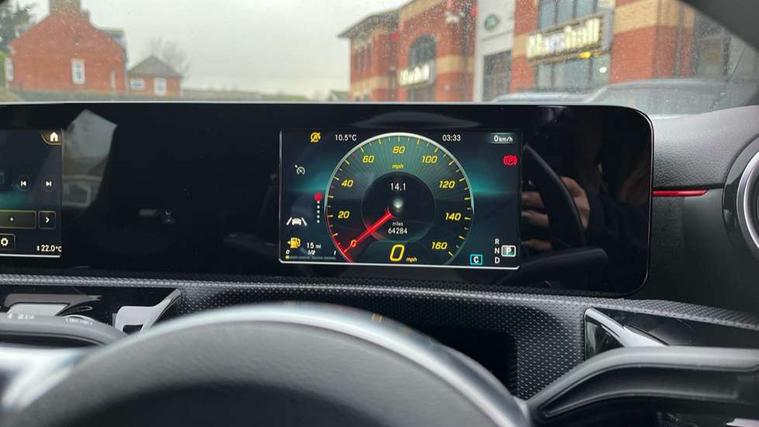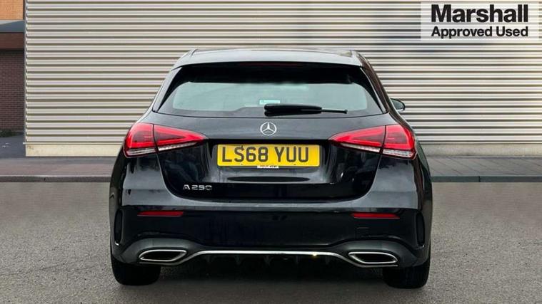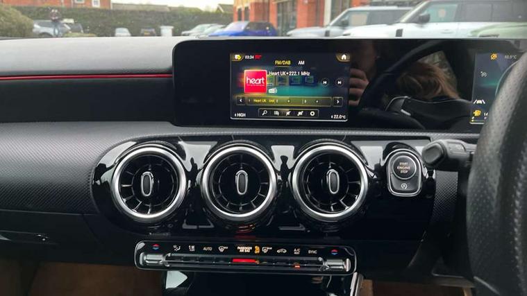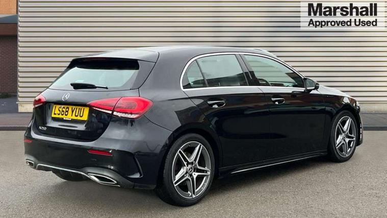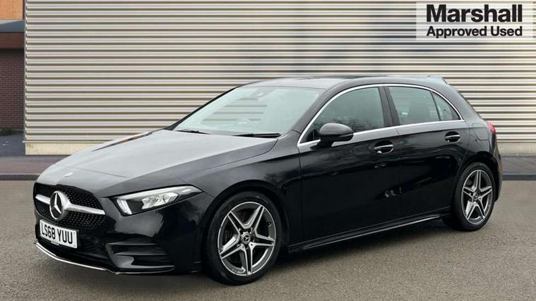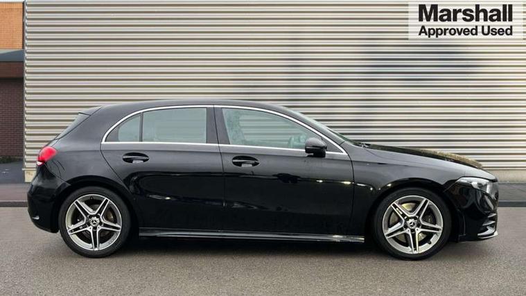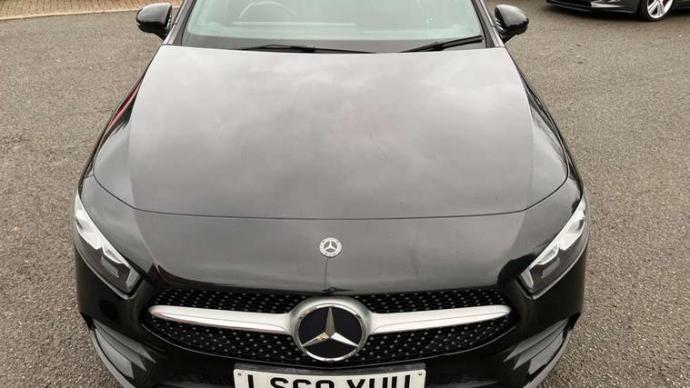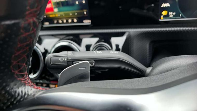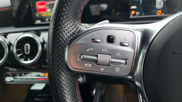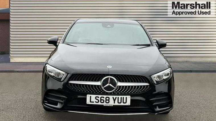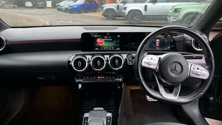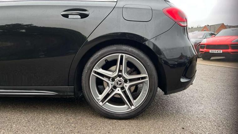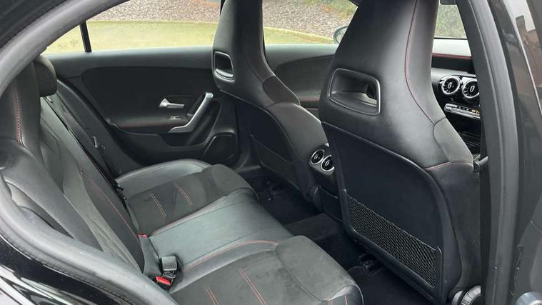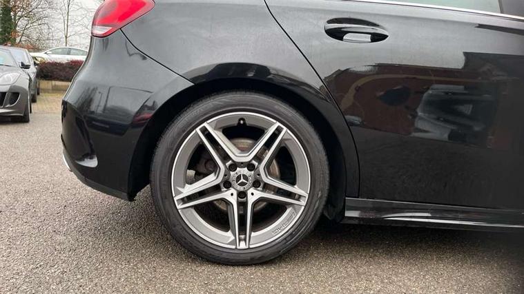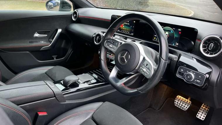 7" colour screen in instrument panel, 7" tablet style colour display, Active lane keep assist, Attention assist, Bluetooth interface for hands free telephone, Bulb failure indicator, Cruise control + speed limiter, Direct steering, DYNAMIC SELECT with a choice of driving modes (ECO, Comfort, Sport, Sport+ and Individual), External temperature gauge, HDD Navigation system, Low fluid warning light, Mercedes connect me with remote online services, Radio aerial integrated into roof spoiler, Reversing camera, Service indicator (ASSYST PLUS), Speed sensitive power steering, Stop/start system, Trip computer, Voice control system, Warning lamp for direction indicators, Lowered comfort suspension, 2 USB ports in centre console, DAB Digital radio, MBUX Multimedia system including digital instrument cluster and phone mirroring, Adaptive brake lights, AMG body styling, Body colour bumpers, Body colour door handles, Body colour side skirt, Body coloured door mirrors, Chrome beltline trim, Diamond radiator grille with chrome pins and silver louvre + chrome insert, Electric adjustable heated door mirrors, Electric front windows, Electric rear windows, Headlamp assist, Heated rear window with timer, High level third brake light, LED daytime running lights, LED Headlights, LED rear lights, Rain sensor windscreen wipers, Rear fog lights, Rear wiper, Twin Trapezoidal tailpipes, 1/3 to 2/3 split folding rear seats, 12V socket, 3 spoke flat bottomed nappa leather sport steering wheel, AMG floor mats with red stitching, Artico man-made leather/Dinamica upholstery, Auto Mercedes-Benz child seat recognition sensor, Black headlining, Brushed stainless steel sports pedals with rubber studs, Controller on centre console with chrome surround, Dual zone automatic climate control, Exit lights, Footwell lights, Front and rear reading lights, Front centre armrest with storage compartment, Front door sills with Mercedes Benz lettering, Front head restraints, Front seat backs luggage nets, Front sport seats, Gearshift paddles on steering wheel, Height adjustable front seats, Height/reach adjustable steering column, Illuminated cup holders, Illuminated glovebox, Illuminated storage compartment, Integrated head restraints, Interior door handle illumination, Isofix rear child seat preparation, Load securing rings in luggage compartment, Luggage compartment cover, Multifunction steering wheel, Oddments tray lighting, Reading lights, Rear head restraints, Storage compartment under load area floor, Sunvisors with illuminated vanity mirrors, Touchpad, Twin front cupholders, Seat comfort pack - A Class, 3 rear 3 point seatbelts, ABS with Brake Assist, Active bonnet, Brake calipers with Mercedes-Benz lettering + perforated brake discs, Child proof door locks, Crash responsive emergency lighting, Drivers knee airbag, Dual stage driver/passenger airbags, Electronic parking brake, ESP with ASR, Front and rear seatbelt reminder, Front head airbags, Front passenger seat occupancy sensor, Front side airbags, Hill start assist, Tyre pressure monitoring system, Warning triangle and first aid kit, Window airbags, Alarm system/interior protection/immobiliser, Keyless ignition, Remote central locking, Chrome air vent surrounds, 18" AMG 5 twin spoke light alloy wheels in titanium grey with highsheen finish, Tirefit sealant with electric air pump,