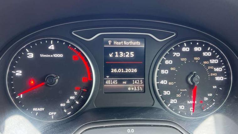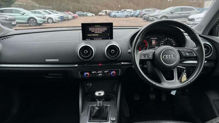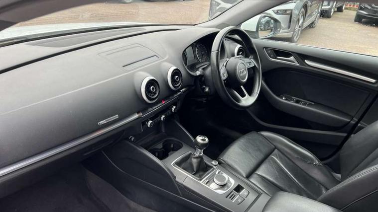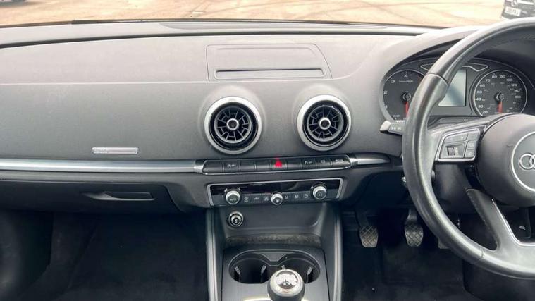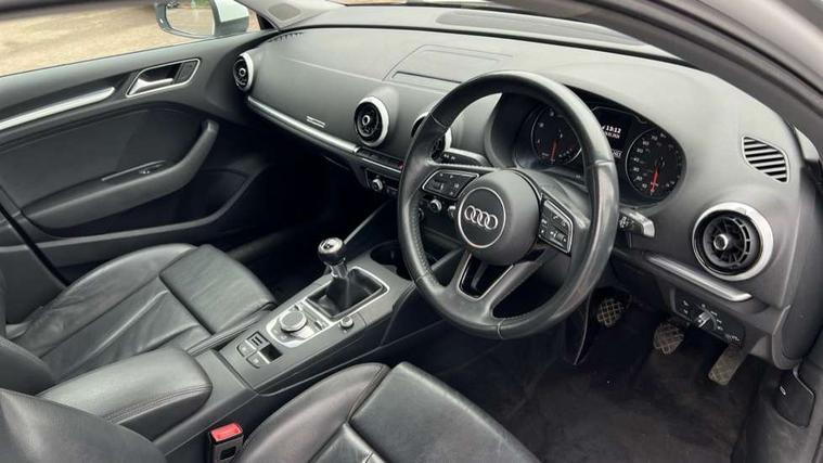Audi connect, Audi drive select, Audi smartphone interface, Automatic start/stop system, Colour driver's information system display, Electro - mechanical power assisted steering, Mobile telephone preparation - bluetooth interface, SD card based MMI navigation, Service interval indicator, Speed limit display, Voice control system, Voice recognition for navigation system, Diesel particulate filter, Dynamic suspension, 2 USB interfaces and Aux-In jack, Audi music interface, CD player, DAB Digital radio, MMI radio plus with 7" colour MMI screen and MMI controller, Online entertainment, Aluminium window trim, Auto dimming interior rear view mirror, Body colour bumpers, Body colour door mirrors, Body colour roof spoiler with aerodynamic inserts in high gloss black, Chrome exhaust tailpipes, Electric front windows, Electric rear windows, Electrically adjustable and heated door mirrors with integrated LED side indicators, Heated windscreen washer jets, Light and rain sensors, Matt black radiator grille, Rear wiper, Sport specific side air inlet grille and diffuser insert, Xenon headlights with LED Daytime running light, 3 adjustable rear headrests, 3 spoke leather multifunction sports steering wheel, 4 lashing points to secure luggage, 60/40 split folding rear seat, Adjustable front centre armrest, Aluminium door sill trims, Dual zone electronic climate control, Front and rear interior lights with delay, Front/rear floor mats, Height and reach adjustable steering wheel, Isofix child seat preparation for front passenger/outer rear seats inc passenger airbag deactivation, Manual height adjustable front seats, Rock grey headlining, Storage compartments in doors side trims, centre console and under front drivers seat, Interior light pack - A3 Hatchback/Sportback/Cabriolet, Non smoking pack - A3, Storage and luggage pack - A3/RS3, 3 point seatbelts on all seats, ABS/EBD, Active bonnet, Active front headrests, Airbags - front driver/passenger, front & rear side, curtain, drivers knee, ASR, EDL, Electromechanical parking brake, ESC - Electronic Stability Control + traction control, Front passenger airbag deactivation, Hill hold assist, Manual rear child locks, Multi-Collision braking, Seatbelt warning, Tyre pressure warning, Warning triangle and first aid kit, Anti theft alarm, Anti-theft wheel bolts, Remote control central locking, Thatcham category 1 alarm + immobiliser, Aluminium air vent surrounds, Aluminium mistral silver inlay, Aluminium trim elements, Tool kit, Tyre repair kit,