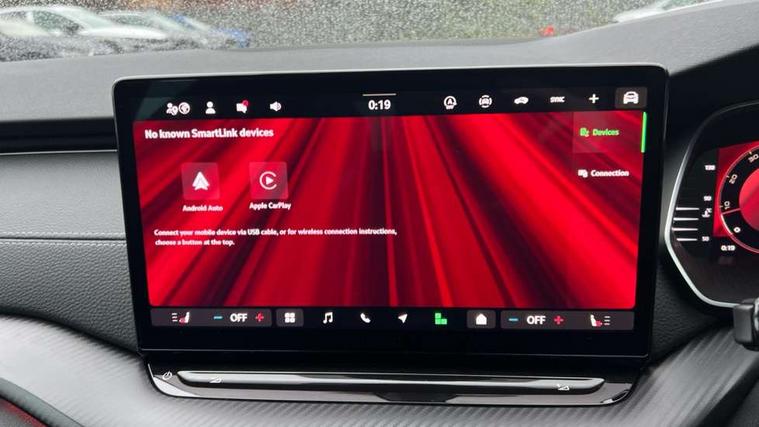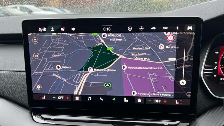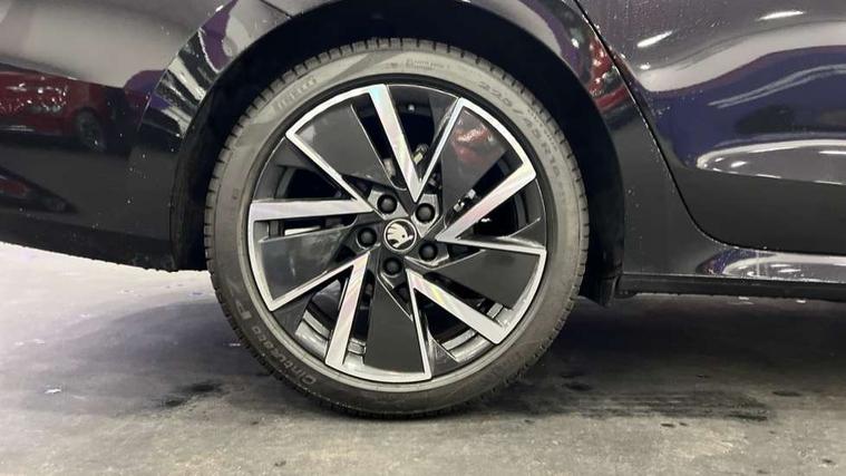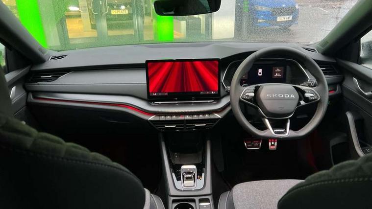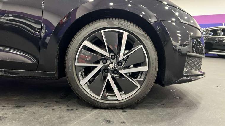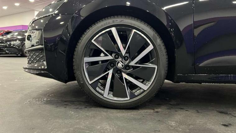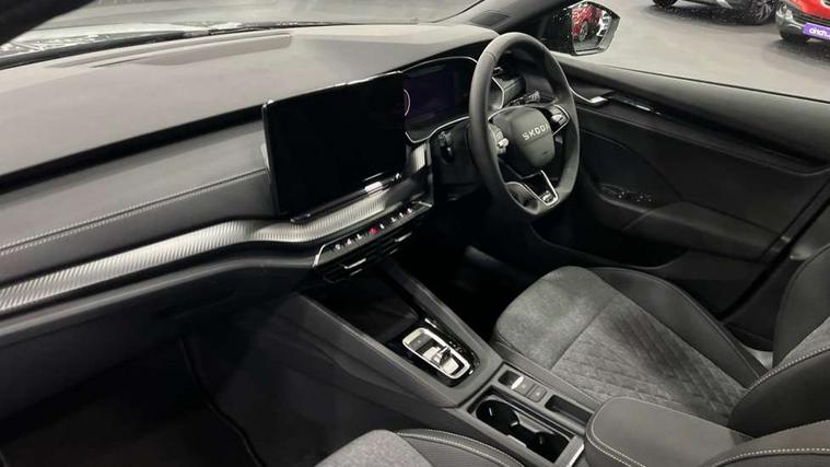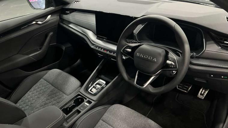 1x USB Typc C port in rear view mirror, 4x USB Type C ports - 2x in front centre console and 2x in rear (45W), Drive mode selection, Driver fatigue sensor, eCall emergency system, Front assist system, Progressive dynamic steering, Traffic sign recognition, Turn Assist, Virtual Cockpit - 10.25" digital display, Voice control system, Wireless charging (15W) with cooling function, Wireless SmartLink for Apple CarPlay and Android Auto, Sports suspension with 15mm lower, 13" touchscreen display with navigation, DAB Digital radio, Aero front windscreen wipers with intermittent function, Auto dimming rear view mirror, Body colour bumpers, Body colour door handles, Chrome strip in lower front bumper, Electric front and rear windows, Exterior gloss black sports styling including front grille, window surrounds, door mirrors and badging, Gloss black diffuser, Gloss black spoiler, Heated rear windscreen, High beam control, High level third brake light, Ice scraper in fuel cap, LED daytime running lights, Logo projection in front doors, Rain and light sensors, Rear fog light on one side and reversing lights on both sides, Rear privacy glass, Rear side wing doors, 12 volt socket in boot, 3 rear headrests, 3 seat bench in 2nd row, 4 foldable roof handles, Aluminium pedals, Boot net programme, Front head restraints, Front sport seats, Heated front seats, Illuminated glovebox, Interior door handles in dark chrome, Jumbo Box storage, Luggage compartment lighting x2 lights, Mechanical rear seat release from boot, Parcel shelf - folding, Single front passenger seat, Steering wheel in black leather with black stitching, Storage compartments in left and right of boot, Sun visors with mirrors, Sunglasses storage, Three spoke leather sports multifunction steering wheel with paddles, Ticket holder, Umbrella in door panel, Unsplit rear bench seat, split folding backrest with centre armrest with cupholder, SportLine Design Selection pack - Octavia, 3x3 point rear seat belts, Alarm with interior monitoring, tilt sensor and back up horn, Curtain airbags and front side airbags, Driver and front passenger airbags, Drivers knee airbag, Electronic parking brake, ESC including ABS, EBV, MSR, ASR, EDS, HBA, DSR, Front central airbag, Hill hold assist, ISOFIX on front passenger seat and outer rear seats, Passenger airbag deactivate switch, Three point seat belts in front and rear, Two tone horn, Tyre pressure monitor, Visual and acoustic seat belt reminder, Warning reflectors in front door, Anti-theft wheel bolts, Keyless entry and start/stop, Remote central locking, Gloss black air vent surrounds,
