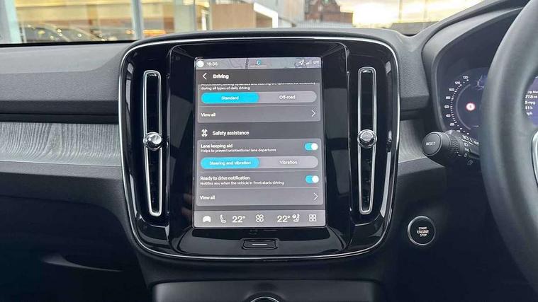 12.3" Progressive Driver Display, 360 degree surround view parking camera with side proximity sensors, 9" centre console portrait touch screen, Adjustable steering wheel force, Android auto (Wired), Apple carplay (wired), Bluetooth handsfree system, Driver alert control, Driver assistance (pilot assist and adaptive cruise control), Driver awareness - Blind spot information system with steer assist, cross traffic alert with autobrake and rear collision warning and mitigation, E-call, Front and rear parking sensors, Front park assist, Google automotive services - Enabled entertainment apps, navigation with google maps, voice recognition with google assistant, Hands free power tailgate, Intelligent speed assistance, Lane keeping aid, Oncoming Lane Mitigation, Speed sensitive steering, Volvo cars services with app - Driving journal, emergency and breakdown call, engine remote start, remote door locking/unlocking and vehicle dashboard, Wireless/Inductive Mobile Phone Charging, Automatic transmission with start/stop and manual change functions, Dynamic chassis, DAB Digital radio, Premium Sound by Harman Kardon, Dolby Pro Logic II Surround Sound, Dirac Unison, 12 speakers/600W and subwoofer, Steering wheel mounted remote controls, Active bending pixel LED headlights with adaptive shadow technology, Active high beam incorporating daytime running lights, Adaptive brake lights with high level LED brake lights, Auto dimming feature for exterior door mirrors, Auto dimming interior mirror, Auto folding and heated power door mirrors, Automatic headlamp levelling, Dark tinted windows - rear side windows and rear screen, Front aluminium tread plates, Front and rear electric windows, Headlight cleaning system, High gloss black front and rear skid plate, High gloss black front bumper deco, High gloss black mesh front grille with high gloss black surround, High gloss black window trim, Home safe and approach lighting, Integrated roof rails in high gloss black, LED front fog lights with cornering function, Power glass tilt and slide panoramic sunroof with sun curtain, Puddle lights, Rain sensor with automatic windscreen wiper activation, Rear side wing doors, Rear wiper, Roof antenna, Roof spoiler, Visible VIN plate, 12V socket in front tunnel console and luggage compartment, 2-Zone electronic climate control with CleanZone air quality system and pollen filter, 3 seat bench in 2nd row, 3 Spoke tailored steering wheel with chrome trim, 60/40 versatile split folding rear seat, Centre console cupholders and storage, Charcoal carpet and floor mats, Flexible load floor and grocery bag holder, Front headrests, Front seat cushion extensions, Glovebox bag hook, Heated front seats, Height/reach adjustable steering column, High gloss centre tunnel deco, High level illumination - Front door pocket, front side step (under door), tailgate, instrument panel, front door inlay, rear courtesy&reading lights, Integrated waste bin, Isofix attachments on outer rear seats, Load cover, Load protection net, Mid level illumination - Front footwell, luggage & glovebox compartment, front cabin courtesy & reading lights, illuminated vanity mirrors+ticket holder, Multi directional lumbar support for driver and passenger seat, Power driver seat with memory + exterior mirrors memory, Power folding rear headrests, Power passenger seat, Rear armrest with cupholders, Single front passenger seat, Underfloor luggage compartment storage, Climate pack without heated front seats - XC40, 3x3 point rear seatbelts, City safety with steering support with Pedestrian + cyclist + front collision warning with full auto brake and rear auto brake, Driver and passenger airbags, Drivers knee airbag, Electronic parking brake with auto hold, First aid kit, Front and outer rear seatbelt reminder and pretensioners, Front seats SIPS airbags, Hill descent control - Off-road drive mode, Hill start assist, IC (Inflatable Curtains) - Full Length, Passenger airbag cut-off device, Power child locks on rear doors, Road sign information display, Run off Road Protection, SIPS (Side Impact Protection System), Slippery road and hazard light alert, Stability and Traction Control with Spin control, Engine Drag Control and Corner Traction Control, Tyre pressure monitoring system, Vehicle deceleration control with Anti-lock Brake System, Electronic Brake Distribution and Emergency Brake Assist, Warning triangle, WHIPS whiplash protection system - front, 2 x Key integrated remote control central locking including with deadlocking system and auto open/close windows and sunroof, Anti-theft alarm including immobiliser/volume sensor + level sensor, Keyless drive includes keyless entry and keyless start, Locking wheel nuts,
