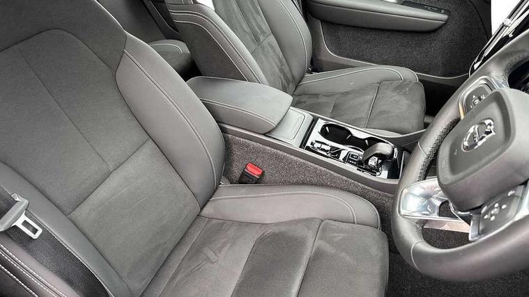 12.3" Progressive Driver Display, 9" centre console portrait touch screen, Adjustable steering wheel force, Android auto (Wired), Apple carplay (wired), Bluetooth handsfree system, Driver alert control, Driver assistance (pilot assist and adaptive cruise control), Driver awareness - Blind spot information system with steer assist, cross traffic alert with autobrake and rear collision warning and mitigation, E-call, Front park assist, Google automotive services - Enabled entertainment apps, navigation with google maps, voice recognition with google assistant, Hands free power tailgate, Intelligent speed assistance, Lane keeping aid, Oncoming Lane Mitigation, Rear park assist, Speed sensitive steering, Volvo cars services with app - Driving journal, emergency and breakdown call, engine remote start, remote door locking/unlocking and vehicle dashboard, Wireless/Inductive Mobile Phone Charging, Automatic transmission with start/stop and manual change functions, Dynamic chassis, DAB Digital radio, Steering wheel mounted remote controls, Adaptive brake lights with high level LED brake lights, Auto dimming feature for exterior door mirrors, Auto dimming interior mirror, Automatic headlamp levelling, Automatic LED Headlights + Active high beam incorporating daytime running lights, Front aluminium tread plates, Front and rear electric windows, High gloss black front and rear skid plate, High gloss black front bumper deco, High gloss black mesh front grille with high gloss black surround, High gloss black window trim, Home safe and approach lighting, Integrated roof rails in high gloss black, LED front fog lights, Puddle lights, Rain sensor with automatic windscreen wiper activation, Rear side wing doors, Rear wiper, Roof antenna, Roof spoiler, Visible VIN plate, 12V socket in front tunnel console and luggage compartment, 2-Zone electronic climate control with CleanZone air quality system and pollen filter, 3 seat bench in 2nd row, 3 Spoke tailored steering wheel with chrome trim, 60/40 versatile split folding rear seat, Centre console cupholders and storage, Charcoal headlining, Connect textile/microtech upholstery, Flexible load floor and grocery bag holder, Floor mats, Front cabin courtesy lights, Front door pocket, front cupholder, ambient front door, rear reading, rear courtesy, instrument panel and tailgate lighting, Front footwell illumination, Front headrests, Front reading lights, Front seat cushion extensions, Front side step illumination (under door), Glovebox bag hook, Heated front seats, Height adjustable passenger seat, Height/reach adjustable steering column, High gloss centre tunnel deco, Illuminated glovebox, Illuminated luggage compartment, Illuminated vanity mirrors + ticket holder, Integrated waste bin, Isofix attachments on outer rear seats, Load cover, Load protection net, Multi directional lumbar support for driver and passenger seat, Power driver seat with memory + exterior mirrors memory, Rear armrest with cupholders, Rear headrests, Single front passenger seat, Underfloor cargo storage, Climate pack without heated front seats - XC40, 3x3 point rear seatbelts, City safety with steering support with Pedestrian + cyclist + front collision warning with full auto brake and rear auto brake, Driver and passenger airbags, Drivers knee airbag, Electronic parking brake with auto hold, First aid kit, Front and outer rear seatbelt reminder and pretensioners, Front seats SIPS airbags, Hill descent control, Hill start assist, Inflatable curtain, Passenger airbag cut-off device, Power child locks on rear doors, Road sign information display, Run off Road Protection, SIPS (Side Impact Protection System), Slippery road and hazard light alert, Stability and Traction Control with Spin control, Engine Drag Control and Corner Traction Control, Tyre pressure monitoring system, Vehicle deceleration control with Anti-lock Brake System, Electronic Brake Distribution and Emergency Brake Assist, Warning triangle, WHIPS whiplash protection system - front, 2 x Key integrated remote control central locking including with deadlocking system and auto open/close windows, Anti-theft alarm including immobiliser/volume sensor + level sensor, Keyless drive includes keyless entry and keyless start, Locking wheel nuts,