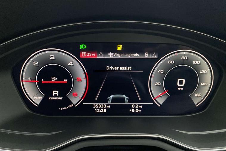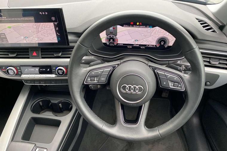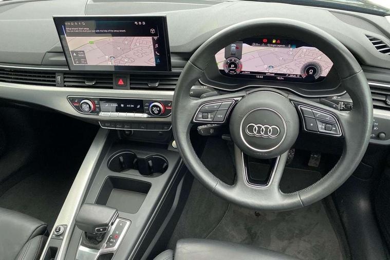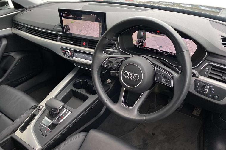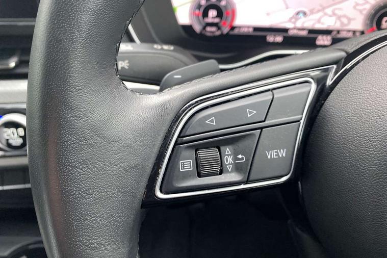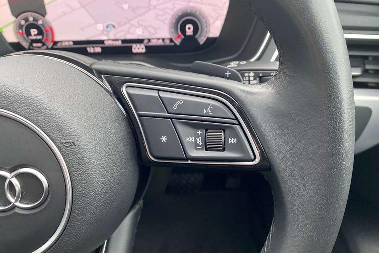 Audi connect safety and service (e-call), Audi drive select, Audi smartphone interface, Audi virtual cockpit, Automatic start-stop system with coasting functionality and efficiency programme, Bluetooth interface, Camera based traffic sign recognition, Electromechanical power steering, Email, calendar and text messages displayed via MMI, Front and rear parking sensors, Lane departure warning, MMI Navigation plus with MMI touch includes 10.1" high resolution colour MMI display, 3D map, Power operated tailgate, Rear view camera, Voice control system, Comfort dynamic suspension, 2 USB charging ports, 8 passive loudspeakers, DAB digital radio reception, Aluminium roof rails, Auto dimming rear view mirror, Body colour door handles, Body colour side sill trim, Body coloured door mirrors, Electric adjustable/heated/folding door mirrors with auto dimming, LED headlights and rear lights with LED daytime running lights, LED third brake light, Matt aluminium silver tailpipe trim, Rain and light sensors, Rear side wing doors, Rear wiper, S Line roof edge spoiler, Sport front and rear bumpers with side skirts, Variable intermittent front wash/wipe, Windscreen with acoustic glazing, 3 spoke high multi-function leather sport steering wheel with paddle shift and height and reach adjustable, 4 way electric lumbar support for driver and front passenger, 40/20/40 split folding 3 rear seat bench in 3 parts with rear centre armrest, Black carpets, Contrast stitching on seats, steering wheel and gear lever gaiter, Deluxe 3 zone electronic climate control, Door sill trims with aluminium inlay, Electric load area cover, Front and rear head restraints, Front centre armrest, Heated front seats, ISOFIX child seat mounting and top tether, Manual seat adjustment, Single front passenger seat, Twin leather upholstery + front sports seats, High gloss package - A4, LED Interior light pack - A4/S4, 3 rear seatbelts, 6 airbags - Driver, front passenger, curtain and side windows, Attention and drowsiness assist, Electronic Stabilisation Control (ESC) including ABS, ASR and EDL, Hill hold assist, Multi collision brake assist, Pop-up bonnet for pedestrian protection, Pre sense city, Rear door child safety locks, Seatbelt monitoring, Warning triangle and first aid kit, Anti theft alarm, Anti theft wheel bolts, Central locking, Keyless Go, Aluminium ellipse silver inlays, Tool kit, Tyre repair kit,
