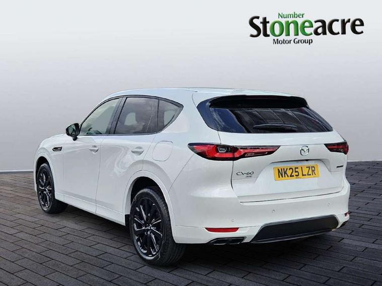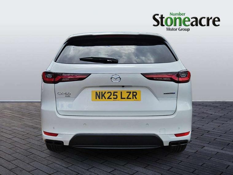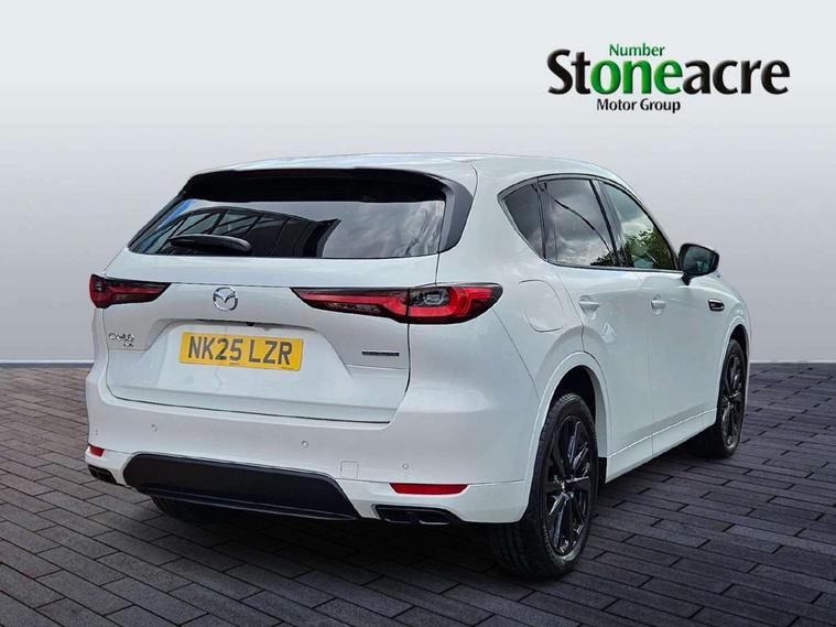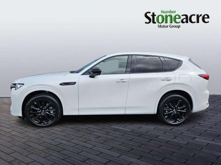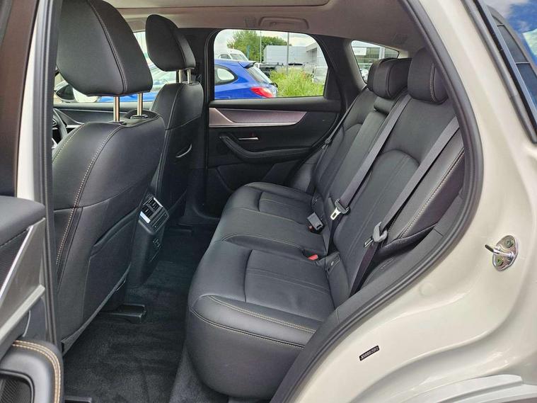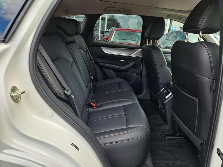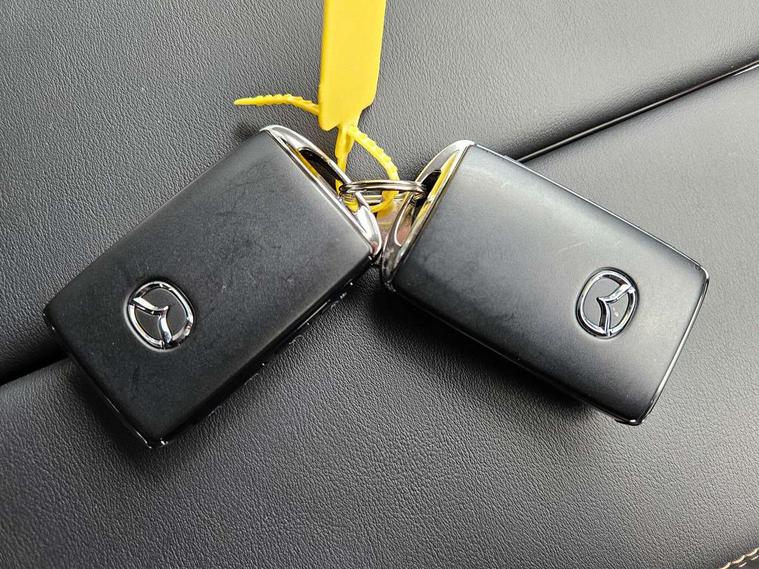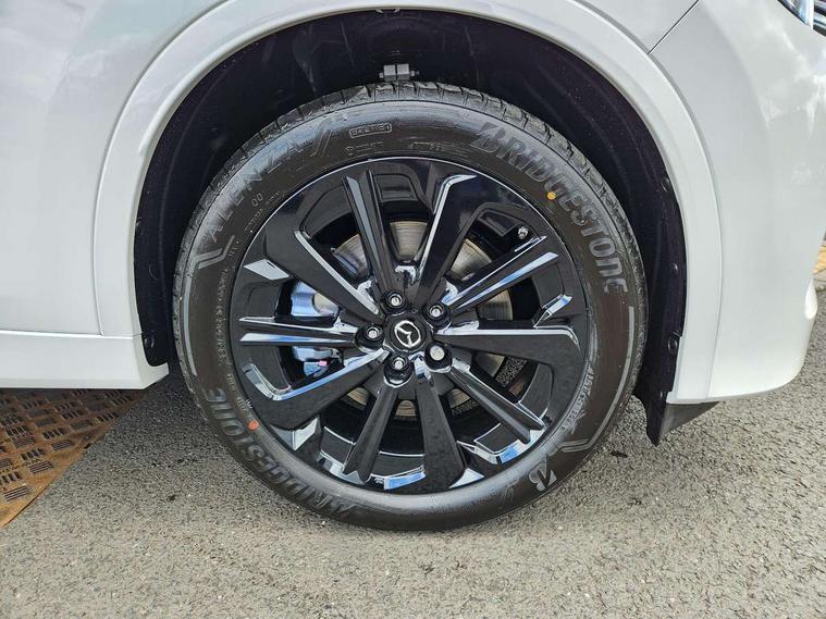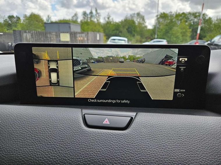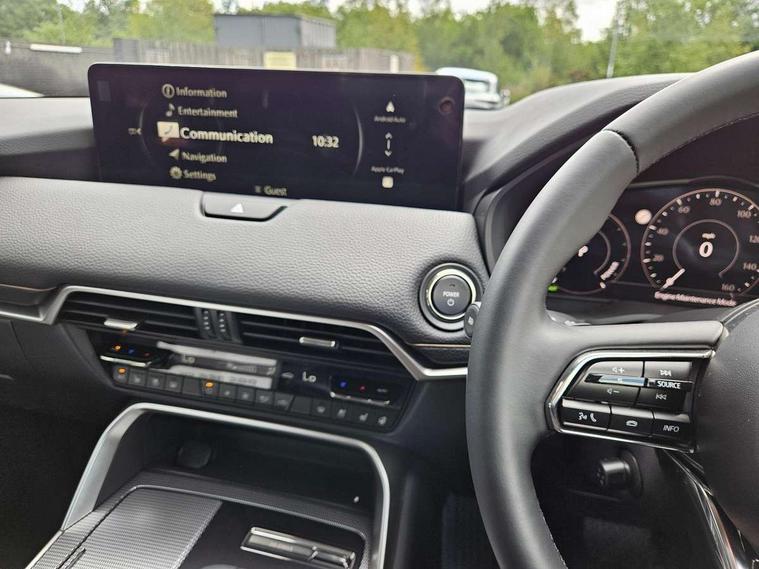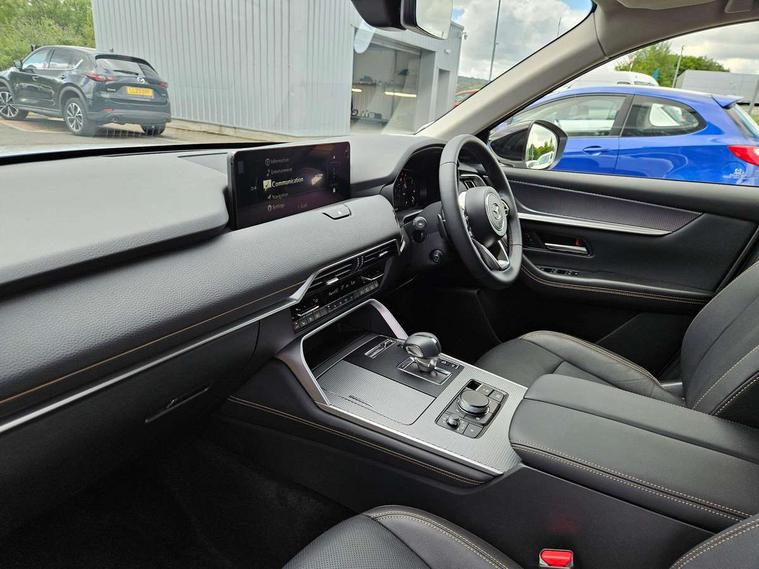 Emergency lane keeping with blind spot assist, Low washer fluid warning light, 12.3" Colour entertainment centre display with mazda connect infotainment, 12.3" TFT Colour display, Adjustable speed limiter, Blind spot assist, Blind spot monitoring with rear cross traffic alert, Cruise control, Distance alert system, Driver attention alert system, Driver Monitoring with personal identification, E-call with GPS, Emergency stop signalling system, Exit warning function, Front and rear parking sensors, Ingress / Egress support and automatic driver position guide, Integrated bluetooth, Intelligent speed assist, Kinematic posture control, Lane keep assist system (LAS) with Lane departure warning system (LDWS), Mazda Driver Personalisation System, Mazda hybrid navigation system with european mapping, Multimedia Commander, PAS, Power lift gate with handsfree function, Power start/stop button, Reversing camera with static guide lines, Speed alert, Traffic sign recognition enhanced with mandated excessive speed warning, Trip computer, Windscreen projected colour active driving display, Wireless apple car play/android Auto, Type 2 Mode 2 cable for AC charging via UK 3-pin plug, 7.2 kw On board Charger, Mi-Drive (Normal, Sport, Off-road, Towing and EV mode), Paddle shift, Type 2 Mode 3 cable for AC charging via home or public charge points, AM/FM and DAB radio, Bose surround sound system with 12 Speaker, Bose center point, Bass match and audio pilot technology, Steering wheel mounted audio/bluetooth controls, USB-C inputs (x2 front and x2 rear), Auto dimming driver's door mirror, Automatic headlight levelling, B-pillar and C-pillar garnishes in gloss black finish, Body colour roof spoiler, Body coloured bumpers, Body coloured lower bumper, wheel arch and side mouldings, Coming/leaving home lighting function, Dark plated headlight lense, Dark plating finish signature wing in front grille, Dark plating front side garnish, Differentiated front bumper design to accentuate the intake, Dusk sensing headlights, Electric front/rear windows with one touch auto up/down, Electrically adjustable, heated auto power folding door mirrors with memory, Frameless auto dimming interior rear view mirror, Front kodo turn signal, Front wiper de-icer, Gloss black door mirrors, Headlight washers, High beam control, Honeycomb radiator grille in piano black, LED 3rd brake light, LED headlamps, LED rear signature combination lamps, Rain sensing front wipers with adjustable sensitivity and speed, Rear side wing doors, Rear wiper, Roof pillars and roof lining finished in lighter colour to soften the overall look, Signature LED daytime running lights, Silver decoration panel, 12v power outlet - front, 12V socket in boot, 3 height adjustable rear headrests, 3 seat bench in 2nd row, 40/20/40 split folding rear seats with quick levers in the boot, Ambient lighting, Cargo net, Chrome interior trim accents with steering wheel centre bezel, surround of engine start / stop button and glove box handle, Door panel trim vinyl leather with armrest, Driver and front passenger two rear grab handles with rear coat hooks, Driver and front passenger visors with covered vanity mirror and driver ticket holder, Driver seat electric tilt, slide, recline, height and lumbar adjustment, Driver, front passenger and two rear door pockets, Driver/passenger front seatback pockets, Dual zone climate control air conditioning with rear air vents, Electric telescopic and tilt adjustment steering wheel, Featuring black vinyl leather dashboard trim with titanium coloured accents, Folding rear centre armrest with two cup holders, Front centre storage with two cupholders, Front down lamp with front and rear foot lamps, Front headrests, Front passengers seat electric slide, recline, height and lumbar adjustment, Front seat ventilation with 3-stage setting, Glovebox illumination, Heated front seats with 3 stage setting, Heated leather wrapped steering wheel, Heated outer rear seats with 3-stage setting, ISOFIX child seat anchorage points attached on outer rear seats, Karakuri tonneau cover, Leather wrapped gear shift knob, LED illumination luggage compartment, Nappa leather upholstery, Practical and spacious front centre armrest storage, Rear seat recline function for rear passenger comfort, Remote fold down rear seats, Roof lining (ceiling and pillars) - Black, Roof mounted sunglasses holder, Single front passenger seat, 3 point ELR front seat belts x2 with pretensioners, 3 point ELR rear seat belts, Active bonnet, Anti-lock braking system (ABS), Drivers knee airbag, DSC - Dynamic Stability Control, Electronic parking brake with auto disengage function and auto hold function, Front and rear curtain airbags, Front dual stage driver and single stage front passenger airbags, Front passenger airbag cut-off switch, Front side airbags, Front smart city brake support, Hill decent control, Hill launch assist, Manual rear child locks, Seatbelt reminder for driver/front passenger and rear seats, Traction control, Tyre pressure monitoring system (TPMS), Remote central locking with deadlocking and automatic door lock when driving, Smart keyless entry, Thatcham accredited alarm and immobiliser, Mesh metal film centre console panel, 20" Black metallic alloy wheels, Emergency tyre repair kit,