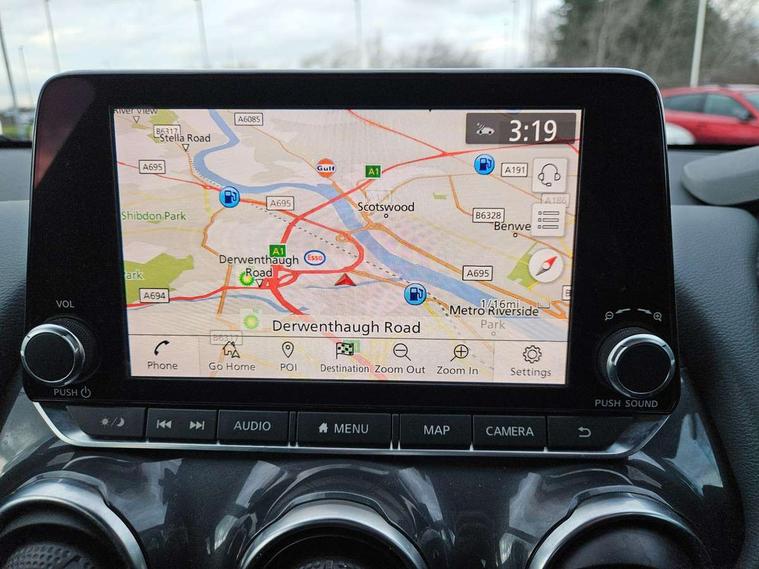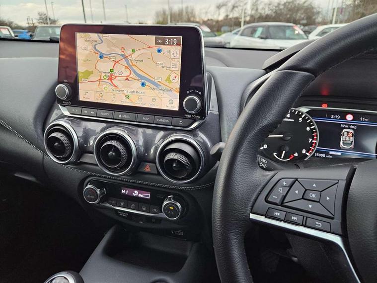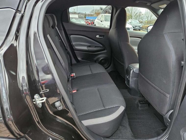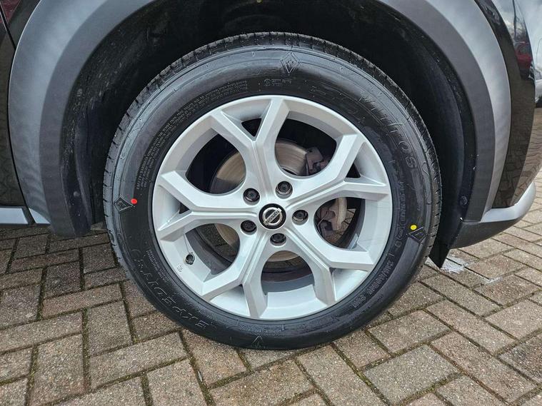 7" full colour TFT screen combimeter, 8" infotainment colour display with touch screen, Apple CarPlay and Google Android auto, Drive modes select (Eco, normal and sport), Emergency and breakdown call, Front parking sensor, Idle start/stop system, Intelligent lane intervention, Lane departure warning system, Nissan connect nav with TomTom traffic, Nissan connect services and Wifi connection, Outside temperature sensor, Power Steering, Rear parking sensor, Traffic sign recognition, Trip computer, Gasoline particulate filter, 6 speakers, Bluetooth system, USB, Aux-in and 12V socket, DAB Digital radio, Rear console USB port, Auto dimming interior rear view mirror, Automatic hazard signal with emergency stop signal, Body colour bumpers, Body colour door handles, Electrically adjustable door mirrors with integrated indicators, Follow me home headlights, Front and rear electric window with one touch driver and passenger window, Heated and auto folding door mirrors, High beam assist, LED daytime running lights, LED front fog lights, LED headlamps, LED rear fog lamp, LED rear lamps, Rain sensor windscreen wipers, Rear privacy glass, Rear spoiler, Rear wiper, Three blink turn signal, 3 height adjustable rear headrests, 60/40 split folding rear seat, Automatic climate control, Card holder on driver sunvisor, Cloth upholstery, Door ambient lighting, Driver and passenger sliding and reclining seats, Driver seat back pocket, Driver side rear coat hanger, Driver/passenger sunvisors and illuminated vanity mirrors, Front and rear cabin lights, Front armrest, Front door pockets with bottle holders, Front head restraints, Front/rear passenger grab handles, Gear console ambient circle lighting, Grey synthetic leather kneepad, Height adjustable driver's seat, Internal chrome door handles, Leather gearshift knob, Leather steering wheel, Luggage board, Luggage space lighting, Monoform sporty seats, Multifunction steering wheel, Passenger seat back pocket, Rear door bottle holders, Telescopic steering wheel adjustment, Two cupholders in front centre console, Two rear isofix child seat anchorage points with top tether, Voice recognition switch on steering wheel, Welcome light and console tray ambient lighting, ABS with EBD and brake assist, Active ride control, Active Trace Control, Driver and passenger airbags, Driver and passenger side airbags, Electric handbrake with auto hold function, Electronic Stability Programme (ESP), Front and rear curtain airbags, Height adjustable seatbelts, Hill start assist, Intelligent emergency braking with pedestrian and cyclist recognition, Seatbelt reminder for driver/front passenger and rear seats, Single tone horn, Three 3 point rear seatbelts, Traction control, Tyre pressure monitoring system, VDC Dynamic Vehicle Control, Ventilated rear brake discs, Alarm, Immobiliser, Intelligent Key with push button starter, Remote central locking,