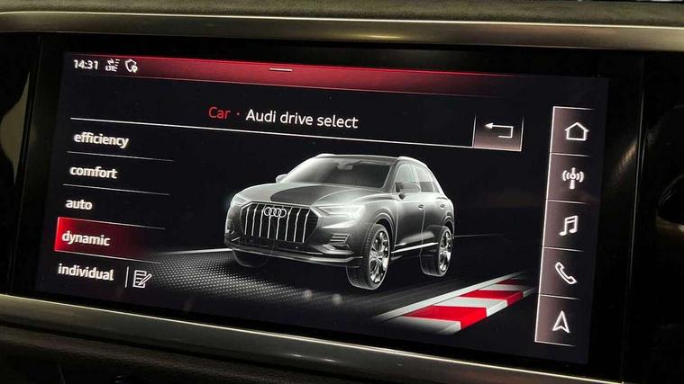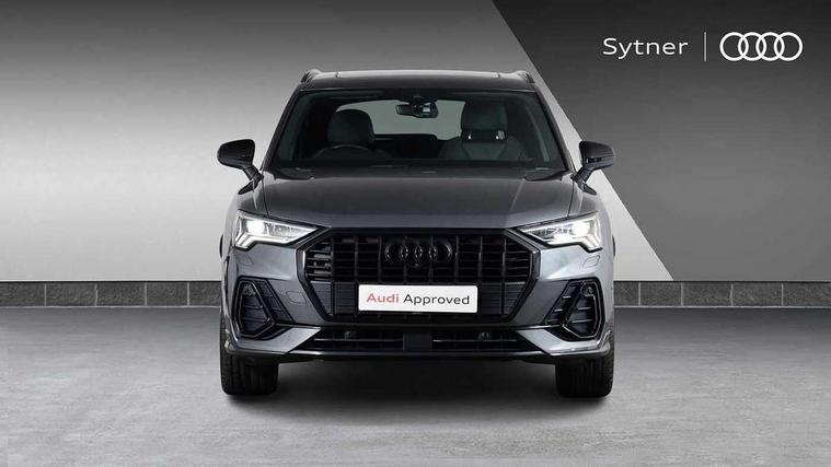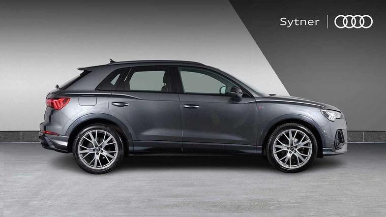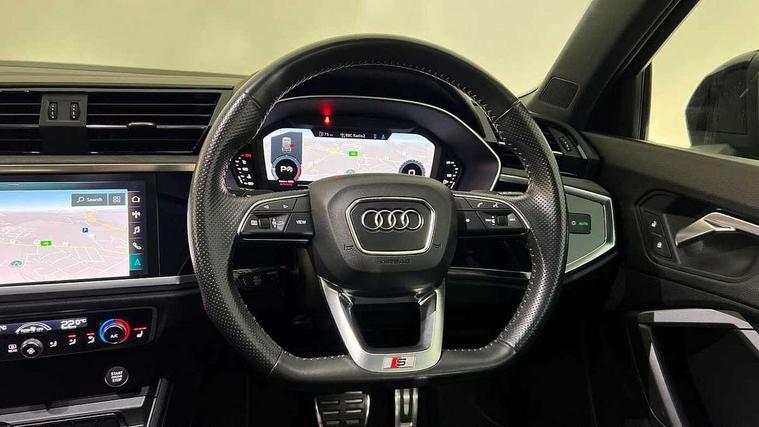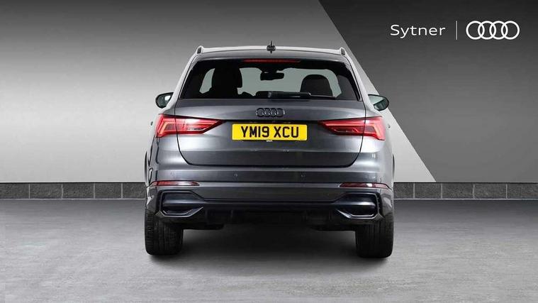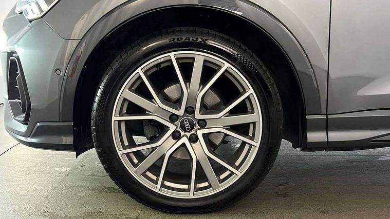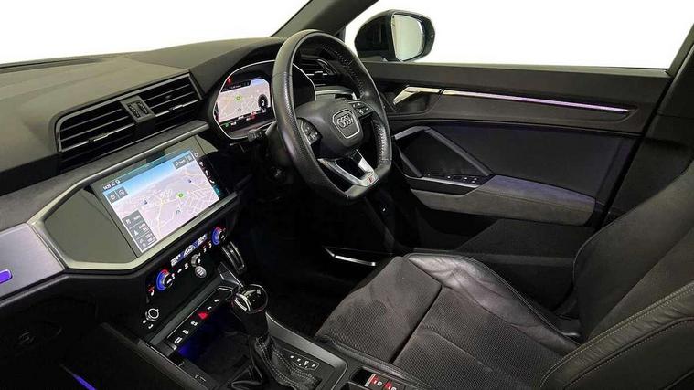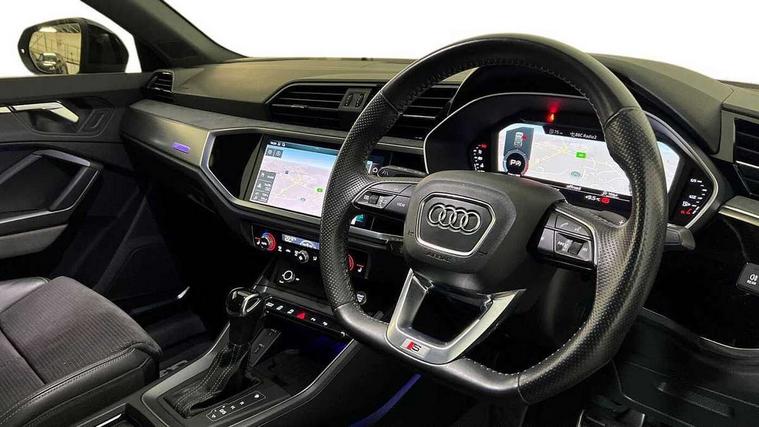 360 degree parking camera, Audi connect safety and service (e-call), Audi drive select, Audi lane departure warning, Audi parking system plus with front and rear sensors, Audi phone box with wireless charging, Audi side assist, Audi smartphone interface, Audi virtual cockpit plus, Bluetooth interface, MMI navigation plus with MMI touch, Power opening/closing tailgate, Progressive steering, Rear cross traffic alert, Service interval indicator, Stop/start system, Voice control system, Adaptive suspension with damping control, Diesel particulate filter, Bang & Olufsen 3D Premium Sound System, DAB digital radio module, Acoustic windscreen, Aluminium roof rails, Auto dimming and folding door mirrors, Auto dimming rear view mirror, Black roof rails, Contrast bumpers in Manhattan grey paint finish, Diffuser in matt Platinum grey, Electrically adjustable and heated door mirrors with integrated LED side indicators, Front and rear electric windows, Front fog lights, Front side air inlets in matt platinum grey, Front spoiler blade in matt platinum grey, Front spoiler in matt selenite silver, Grille vertical bars in aluminium silver/Matt, Headlight washers, High gloss black finish B and C pillars, Matrix LED headlights with LED rear lights and dynamic front and rear indicator, Panoramic opening glass sunroof, Privacy glass, Rain and light sensors, Rear diffuser strip in selenite silver, S line bumpers in contrasting Manhattan grey, 12V socket in rear centre console, 3 spoke flat bottomed high multi-function leather sport steering wheel with gearshift paddles, 4 way electric lumbar support for driver and front passenger, 40:20:40 split folding rear bench seat, Adjustable rear seat bench/backrest with centre armrest and cupholder, Aluminium door sill trims, Black cloth headlining, Dual zone climate control, Electrically adjustable front seats, Front and rear black floor mats with contrast stitching in rock grey, Front and rear headrests, Front centre armrest with storage compartment and angle adjustment, Heated front seats, ISOFIX child seat mounting and Top Tether with front passenger airbag deactivation, Perforated leather gearknob, Stainless steel luggage compartment sill finisher, Stainless steel pedals, Black styling pack - Q3, Driver Assistance Pack - Q3, Multi coloured extended ambient interior lighting pack - Q3, Non smoking pack - Q3, 3x3 point rear seatbelts, 6 airbags - Driver, front passenger, curtain and side windows, Audi pre-sense front with pedestrain and cyclist recognition, Electronic stabilisation control including ABS, ASR and EDL, Hill hold assist, Pre sense basic, Seatbelt monitoring, Tyre pressure warning, Warning triangle and first aid kit, Advanced key, Anti theft alarm, Anti theft wheel bolts, Remote central locking, Dark matt brushed aluminium inlay, MMI touch colour display in gloss black with aluminium surround,