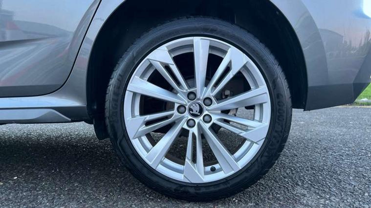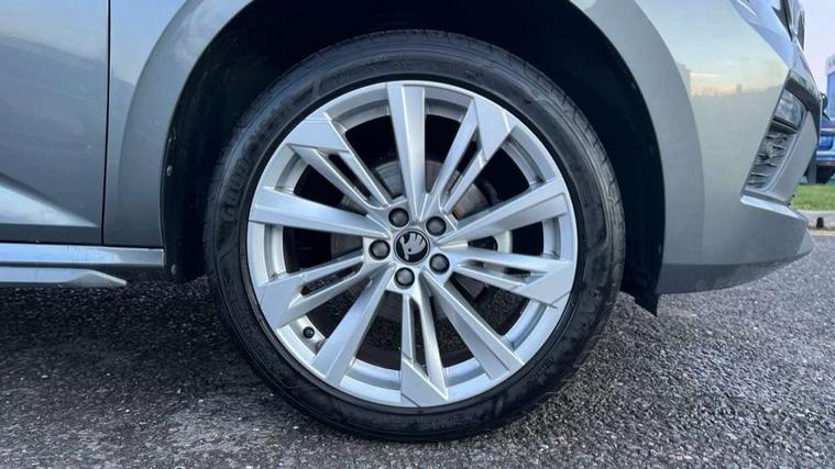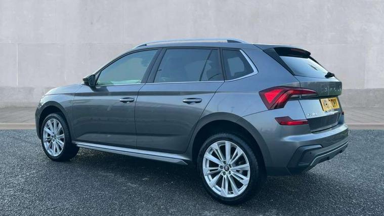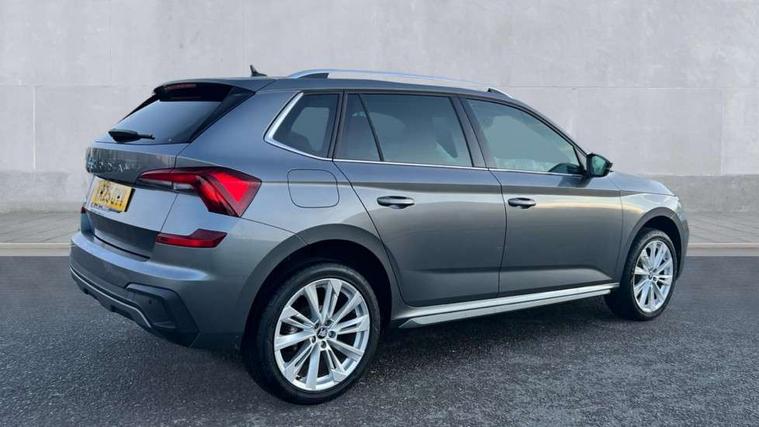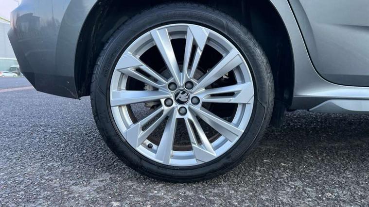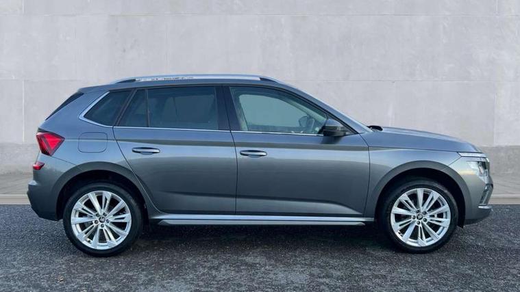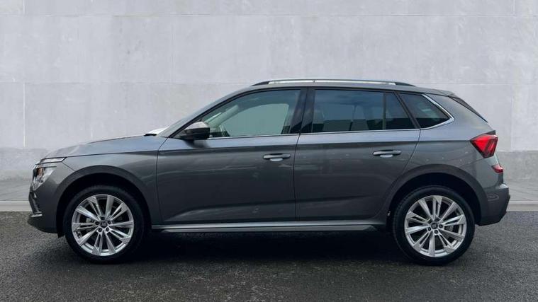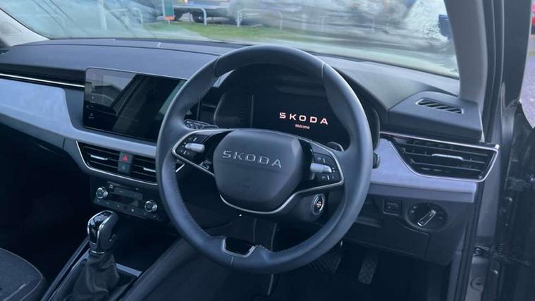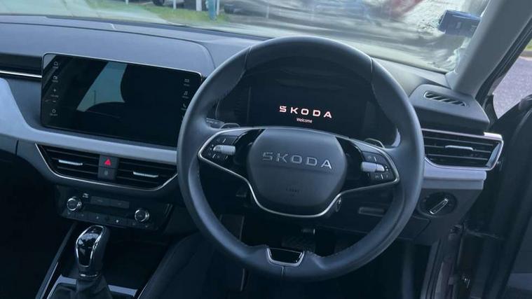 Advanced driver attention and drowsiness monitor, Bluetooth system, E-call, Front assist system, PAS, Rear parking sensors, Rear view camera, Service indicator, Speed limiter, Traffic sign recognition, Virtual cockpit with 10.25" display, Voice control system, Wireless smartlink, 4 USB C ports, 8 Speakers, 9.2" Skoda navigation display, DAB Digital radio, Auto dimming rear view mirror, Automatic headlight control with coming home and leaving home feature, Body colour bumpers, Body colour door mirrors and handles, Chrome grille surround, Chrome roof rails with chrome window surround, Front and rear electric windows, Heated rear window, LED daytime running lights, LED high beam, LED low beam, LED third brake light, Light sensors, Privacy glass, Rear side wing doors, Rear wiper, Ticket holder inside windscreen, 12V socket in luggage compartment, 3 seat bench in 2nd row, Accent black door inserts, Ambient lighting in white/red, Cargo elements, Chrome inner door handles, Copper hotstamping, Driver and passenger sun visors with vanity mirror, Dual zone climate control, Front and rear roof lights, Front centre armrest, Front head restraints, Glove compartment with illumination, Height adjustable driver seat, Height adjustable front passenger seat, Ice scraper, Inner circulation control with pollen filter, ISOFIX on front passenger seat, Isofix preparation for back seats, Leather gearknob and handbrake lever, Lodge cloth upholstery, Manual lumbar support for front seats, Net package and top tether hooks in boot space, Net under rear shelf, Overhead glasses storage compartment, Pocket on the back of both front seats include mobile phone pockets, Rake/reach adjustable steering wheel, Reading lights, Rear centre armrests, Single front passenger seat, Suedia grey decor inserts, Textile floor mats, Third rear headrest, Top tether for front passenger seat, Umbrella in driver's door, Convenience pack - Kamiq, 3x3 point rear seatbelts, Airbags - driver and front passenger, Disc brakes, ESP, Extended and predictive pedestrian/cyclist protection, Front passenger airbag deactivation switch, Front side airbags with curtain airbags, Hill hold control, Manual leather parking brake, Manual rear child locks, One tone horn, Seatbelt reminder for driver an co-driver, Traction control, Tyre pressure monitor, Anti-theft alarm system with interior monitoring, backup horn, towing protection and remote central locking with SAFE system, Anti-theft wheel bolts, Electronic engine immobilizer,