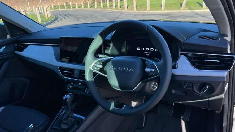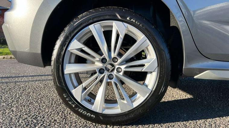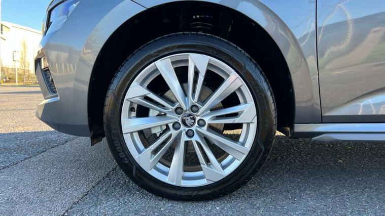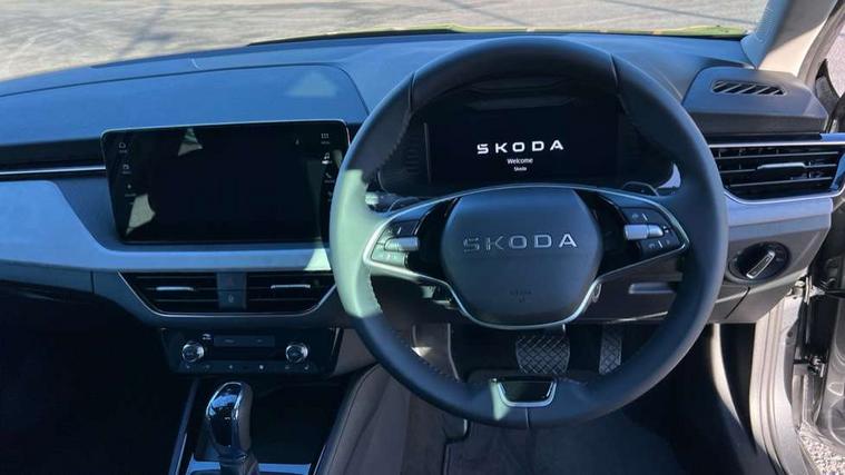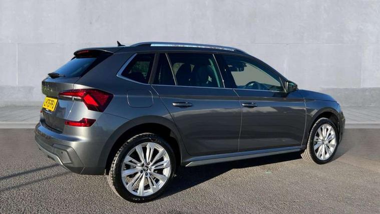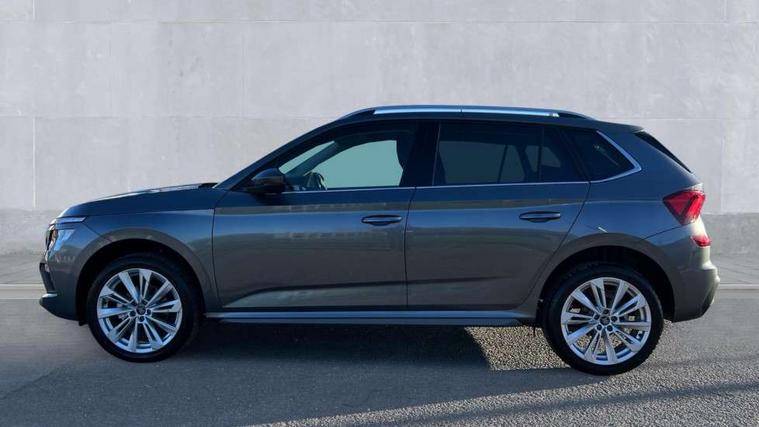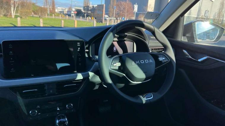 Advanced driver attention and drowsiness monitor, Bluetooth system, E-call, Front assist system, PAS, Rear parking sensors, Rear view camera, Service indicator, Speed limiter, Traffic sign recognition, Virtual cockpit with 10.25" display, Voice control system, Wireless smartlink, 4 USB C ports, 8 Speakers, 9.2" Skoda navigation display, DAB Digital radio, Auto dimming rear view mirror, Automatic headlight control with coming home and leaving home feature, Body colour bumpers, Body colour door mirrors and handles, Chrome grille surround, Chrome roof rails with chrome window surround, Front and rear electric windows, Heated rear window, LED daytime running lights, LED high beam, LED low beam, LED third brake light, Light sensors, Privacy glass, Rear side wing doors, Rear wiper, Ticket holder inside windscreen, 12V socket in luggage compartment, 3 seat bench in 2nd row, Accent black door inserts, Ambient lighting in white/red, Cargo elements, Chrome inner door handles, Copper hotstamping, Driver and passenger sun visors with vanity mirror, Dual zone climate control, Front and rear roof lights, Front centre armrest, Front head restraints, Glove compartment with illumination, Height adjustable driver seat, Height adjustable front passenger seat, Ice scraper, Inner circulation control with pollen filter, ISOFIX on front passenger seat, Isofix preparation for back seats, Leather gearknob and handbrake lever, Lodge cloth upholstery, Manual lumbar support for front seats, Net package and top tether hooks in boot space, Net under rear shelf, Overhead glasses storage compartment, Pocket on the back of both front seats include mobile phone pockets, Rake/reach adjustable steering wheel, Reading lights, Rear centre armrests, Single front passenger seat, Suedia grey decor inserts, Textile floor mats, Third rear headrest, Top tether for front passenger seat, Umbrella in driver's door, Convenience pack - Kamiq, 3x3 point rear seatbelts, Airbags - driver and front passenger, Disc brakes, ESP, Extended and predictive pedestrian/cyclist protection, Front passenger airbag deactivation switch, Front side airbags with curtain airbags, Hill hold control, Manual leather parking brake, Manual rear child locks, One tone horn, Seatbelt reminder for driver an co-driver, Traction control, Tyre pressure monitor, Anti-theft alarm system with interior monitoring, backup horn, towing protection and remote central locking with SAFE system, Anti-theft wheel bolts, Electronic engine immobilizer,