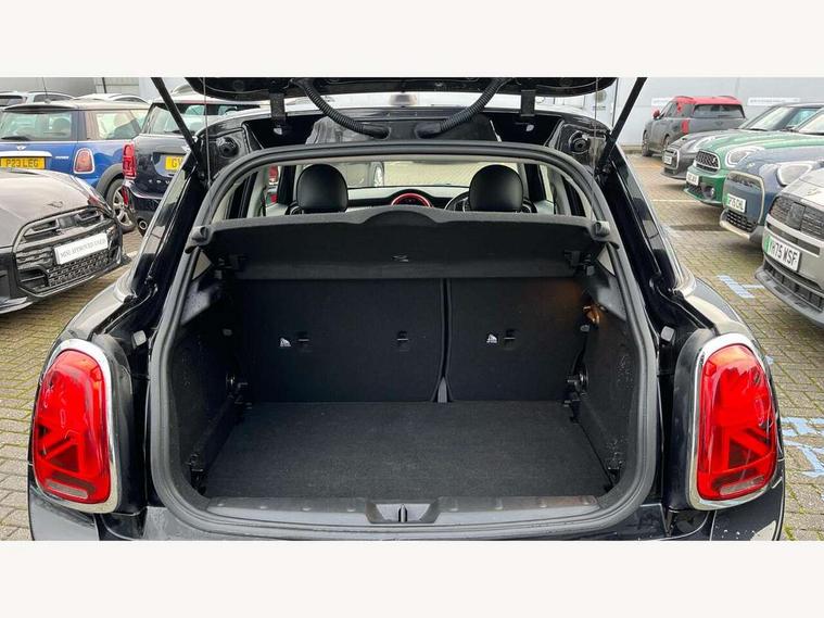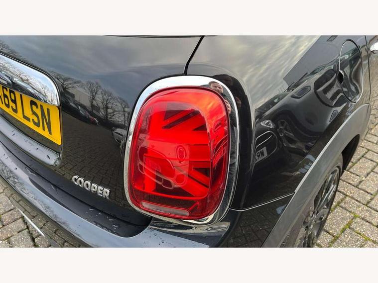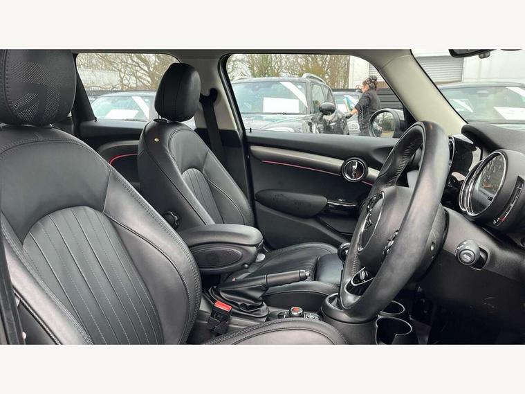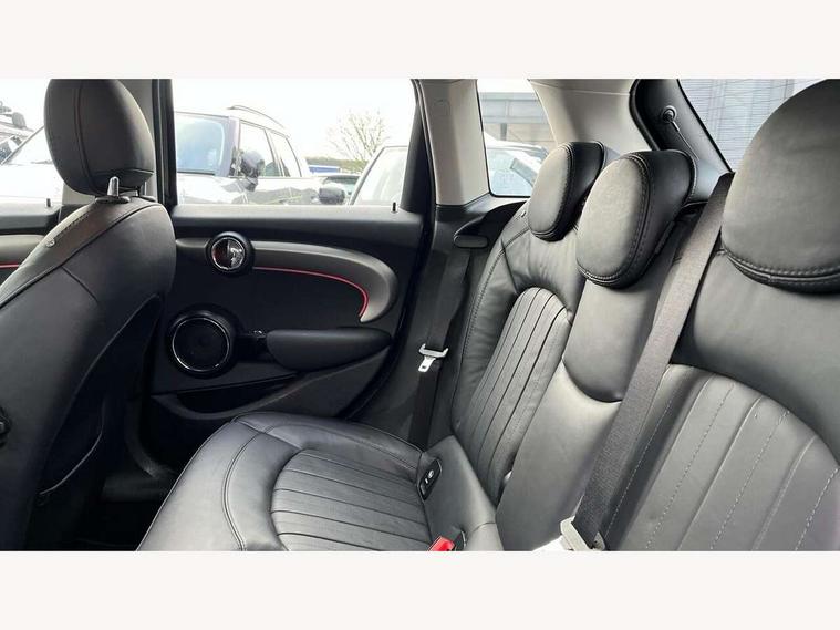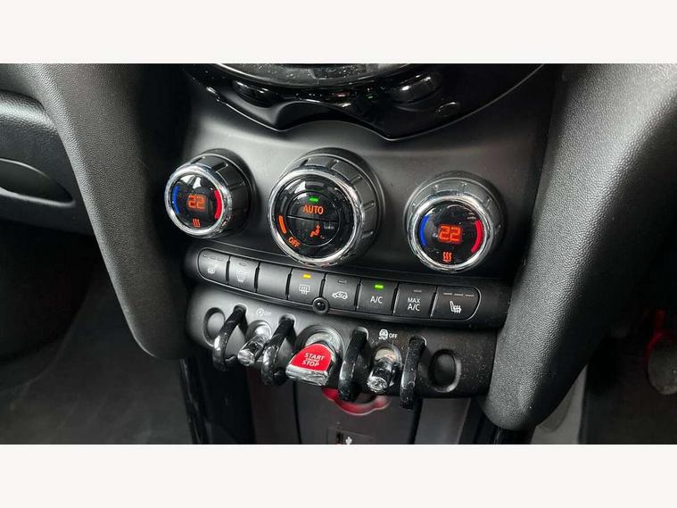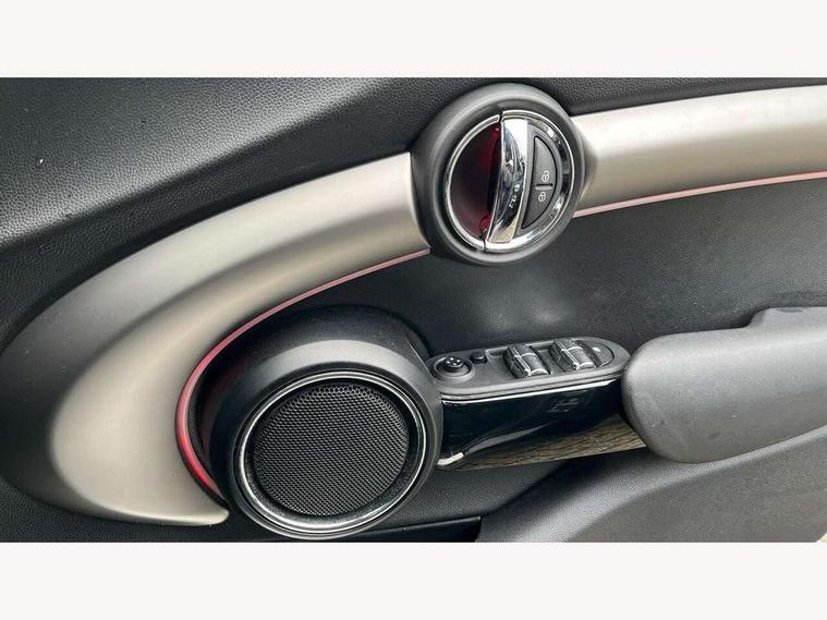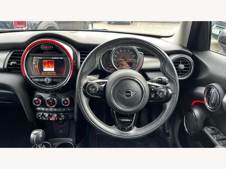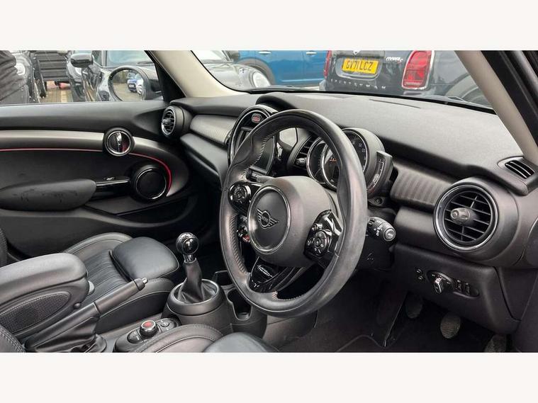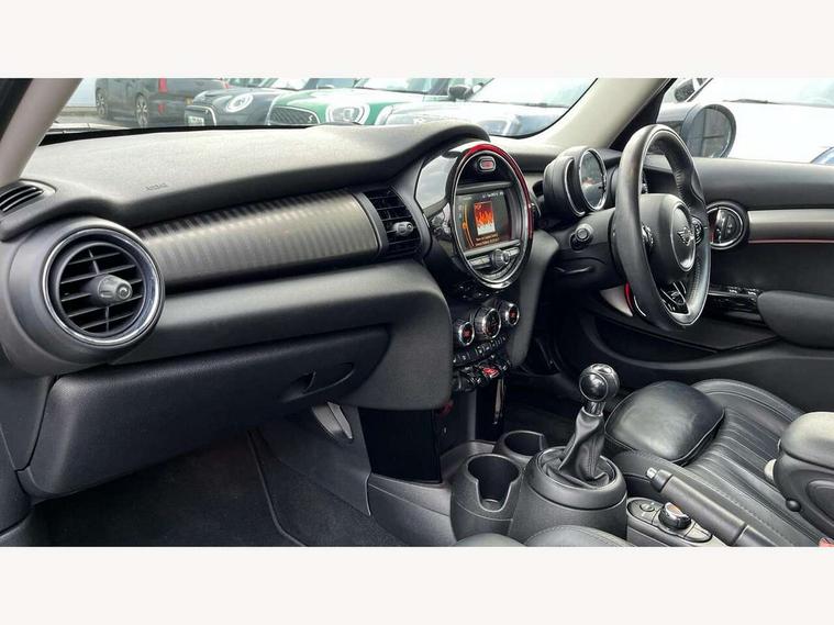 Automatic start/stop function with brake energy recuperation, Compatible mobile phone bluetooth with audio streaming, Electro-mechanical speed dependant steering assistance, Instrument cluster, Mini E-call, MINI TeleServices, On board computer, Service interval indicator, Double Vanos system, Fully variable valve control, High precision injection, 6.5" touchscreen with LED ring, FM tuner and DAB digital radio, Automatic headlight activation switch, Body colour fuel filler cap, Chrome border high gloss black slats radiator grille, Chrome line exterior, Dynamic brake lights, Electric front+rear windows, Heated rear window, Heated windscreen washer jets, LED headlight with closed ring and daytime driving lights, Left exhaust tailpipe with chrome finisher, Metal door sill strips with MINI imprint, Model logo Cooper on right of tailgate, Radiator grille bars, tailgate handle, lower front grille grating, rear central fog light in chrome, Rain sensor window wipers, Rear fog lights, Rear LED lights with union jack design, Rear window wiper, Side scuttle panel with integrated indicator, Sun/heat protection glass, White indicator lenses, 12V Accessory socket in centre console, 4 lashing eyes in luggage compartment, 60/40 split folding rear seat, Air vents, gear lever base, speakers in doors, door handles in chrome, Chrome interior highlights, Cupholders, Front and rear head restraints, Front and rear isofix with front passenger airbag deactivation, Glove compartment, Height and length steering column adjustment, Interior lighting with 12 basic colours selectable via toggle switch in roof, Leather gearshift lever and handbrake gaiters, LED reading lights, vanity mirror lights, front foot well light and spotlight on front seats, Manual air conditioning, Mechanical seat adjustment, driver seat height adjust, forward/back and front seats backrest, Mini logo projection on floor from drivers exterior mirror, MINI Yours leather steering wheel with silver contrasting stitching with MINI Yours badge, Multifunction steering wheel, Storage compartments in doors, Sunvisors with vanity mirrors, 3 point seatbelts on all five seats, 6 Airbags - front, side, head and seat belt tensioners, Anti-lock braking system (ABS), DSC - Dynamic Stability Control, Front and rear disc brakes, Hill start assist, Single tone fanfare horn, Tyre pressure monitoring system, Alarm system with tilt sensor, monitoring doors, bonnet interior and tailgate, Electronic vehicle immobiliser, Start/stop toggle with keyless go, Chrome line interior, Tool kit,
