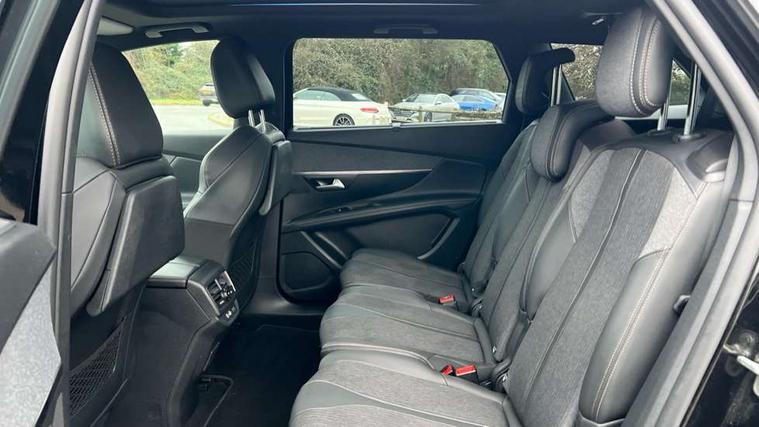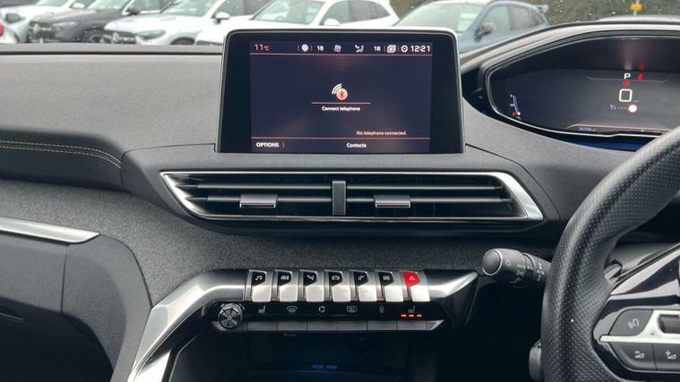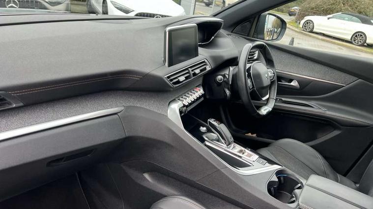 3D connected navigation + voice control, Auto start and stop system, Bluetooth telephone connection, Exterior temperature gauge with frost alarm, Headlight on warning buzzer, Lane departure warning system, Mirror screen with Apple CarPlay and Android auto, Multi function trip computer, Peugeot i-cockpit with 12.3" headup digital instrumental panel, 8.0" capacitive touch screen and compact sports steering wheel, PEUGEOT SOS and assistance, Smartphone wireless charging plate, Speed limit recognition, Sports button, Dynamic stability control, DAB Digital radio, MP3 connection, Steering wheel audio controls, USB socket, 2 X Rear number plate lights, Aluminium roof rails, Auto self levelling headlights, Automatic activation of hazard warning lights, Black front wing trim with chrome detail, Body colour door handles, Body coloured bumpers, Body coloured rear spoiler, Body protectors in black, Chrome front fog light surround, Chrome rear bumper scuff plate, Chrome trim to lower side windows, Dark tinted rear side and tailgate windows, Door mirror mounted LED Peugeot lion approach lights, Electric front/rear windows with one touch/auto up/down, Electrically heated door mirrors, Front windscreen wiper with magic wash cleaning system, Full LED headlights with LED fog lights with static cornering function, sports front bumper and grille, Gloss black B and C pillar and aerodynamic deflector trim, Gloss black rear cluster connecting strip, Gloss black windscreen surround, GT Line emblem in satin copper, Heated rear windscreen with integrated antenna, LED daytime running lights, LED sequential scrolling front indicators, LED side indicator lights integrated into door mirrors, Lion grey front bumper scuff plate, Nera black door mirrors, Panoramic opening glass roof with electric blind, Power folding door mirrors with indicator and auto dipping function in reverse gear, Radiator grille in chrome edge trim with chequered design and black 'PEUGEOT' lettering, Rear LED Peugeot signature 'Claw Effect' lights, Rear side window blinds, Rear windscreen wiper with auto activation when reversing, Stainless steel roof arches, Twin exhaust effect trim, Wheel arch protectors, 2 cupholders in front centre console, 2 individual folding 3rd row seats, 230V socket on rear centre console, 3 x 12V power sockets, 4 Grab handles retractable and damped, Aikinite stitching in armrest, gear lever and dashboard facia, Automatic dual-zone climate control, Blue ambient lighting for connecting zone, Blue ambient lighting to front door panels, central storage and cupholders, Blue ambient lighting to head up instrument panel, Electric power steering with reach and rake adjustable steering column, Flat folding rear seats, Flocked front door pocket interior with blue ambient lighting, Flocked glovebox interior, Fold flat front passenger seat with picnic table, Front central armrest with butterfly-wing opening and storage compartment, Front interior light with 2 reading spotlights and rear interior light with timer, Front passenger seat height adjust, Front passenger seat manual adjustment in longitudinal and back rest angle, Gear shift indicator, Headrests on 2nd/3rd row seats, Heating/air conditioning outlet in rear, Illuminated glovebox, Illuminated vanity mirror, Imila cloth/Leather upholstery, Interior lighting, Isofix child seat fittings x 3 in the second row, Map pocket on front seat backs, Mistral floor mats with Aikinite contrast stitching, Mistral full grain perforated leather steering wheel with aikinite stitch detail and satin chrome 'GT Line' emblem, Rear centre console with air vents, Rear reading lights x 2, Rear seat underfloor storage, Retractable parcel shelf, Roof lining - Mistral black, Satin chrome digital instrument panel and touchscreen trim, Satin chrome front door panel recess trim, Satin chrome gear lever, Satin chrome interior door handles, Satin chrome scorpion's tail and toggle switch trim, Seatbelt unfastened on the move audible and visual alert for front and rear seats, Twin rear coat hooks, Children's pack - 5008, Driver sport pack - 5008, Safety pack - 5008, Safety plus pack - 5008, Visibility pack - 5008, 3 Isofix location points, ABS + EBD + EBA, Adaptive driver and front passenger airbags including passenger airbag deactivation function, Electronic parking brake, ESP and ASR traction control with deactivation switch, Five 3 point rear safety belts, Front and rear curtain airbags, Front optimised safety headrests and rear retractable headrests (x3), height adjustable, Front seatbelt unfastened audible+visual warnings, Front side airbags, Front three point retractable seatbelts height adjustable with pre tensioners and force limiters, Front ventilated disc brakes, Hill start assist, Rear disc brakes, Rear three-point retractable seatbelts (x3) with pre-tensioners and force limiters in the outer rear seats, Tyre pressure monitor, Automatic door lock/re-lock after 30 seconds, Child lock control of rear doors and windows, Electric tailgate with Peugeot open & go system, Remote control central locking with two plip keys, Rolling code transponder immobiliser, Thatcham cat 1 ultrasonic alarm, Brumeo fabric interior trim, Satin chrome dash trim, 19" Washington two tone diamond cut alloy wheels with space saver spare wheel,