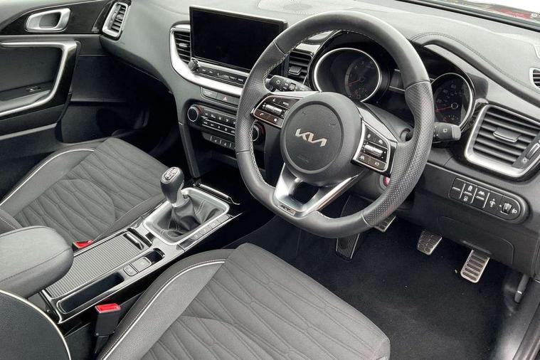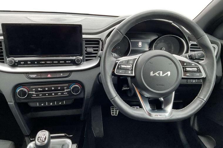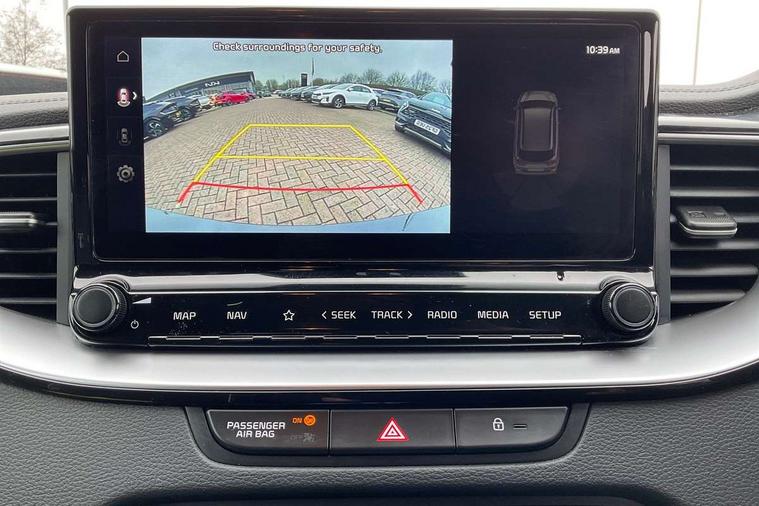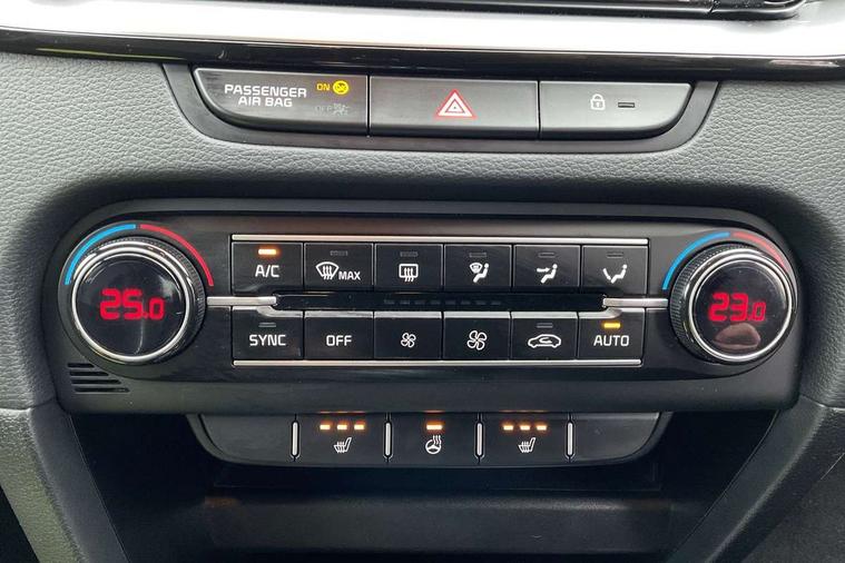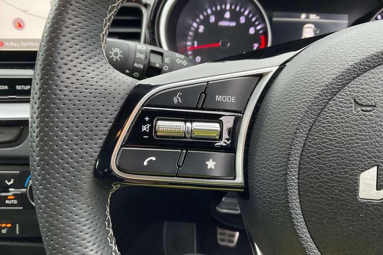 10.25" touchscreen satellite navigation, 4.2" supervision colour cluster display, Apple car play/Android Auto with voice control, Bluetooth with Voice Recognition & Music Streaming, Cruise control + speed limiter, Driver Attention Warning (DAW), Emergency call service, Emergency stop signalling system, Forward Collision-Avoidance Assist (FCA) - City/Pedestrian/Cyclist, Kia connect UVO, Lane Following Assist (LFA), Lane keep assist, Manual speed limit assist, Motor driven power steering, Rear parking sensor, Reversing camera system with dynamic guidelines (Integrated into centre fascia screen), Trip computer, Intelligent Stop and Go, 6 speaker audio system, DAB Radio with MP3, Illuminated USB ports, Steering wheel mounted controls, USB Fast Charger in Front Centre Console, USB port for connection of a media device, All-round Electric Windows with Front Auto Up & Down Function, Auto dimming rear view mirror, Automatic defog system, Automatic headlights control, Body colour bumpers, Body colour exterior door handles, Body coloured and dark chrome rear skid plate, Body coloured side sill mouldings, Dark chrome window surround, Electric adjustable/heated/folding door mirrors with LED Indicators, Heated rear window with timer, High beam assist, High gloss black and dark chrome radiator grille, High gloss black door mirrors, High Gloss Black rear spoiler, LED daytime running lights, LED front fog lights, LED Headlights, LED High-mounted Brake Light, LED honeycomb rear light, LED rear combination lights, LED rear fog light, Privacy glass (rear side windows and tailgate), Rain sensing front wipers, Rear side wing doors, Rear wash/wipe, Satin chrome dual exhaust trim, Tinted glass, Wide view drivers door mirror, Windscreen Washer Level Warning, 1 x Front 12V socket, 12V power socket in luggage compartment, 3 seat bench in 2nd row, 3 x passenger assist grips, 60/40 split folding rear seat, All-round height adjustable headrests, Aluminium pedals, Black headlining, Centre console storage box/armrest, Cloth/faux leather upholstery, Cupholders in centre console, Cupholders in rear armrest, Dash illumination dimmer switch, Door courtesy lamps, Driver & Front Passenger Sunvisors with Vanity Mirror Illumination & Ticket Holder, Driver + front passenger electric lumbar support, Driver's seat height adjuster, Dual Height Luggage Area Floor, Dual zone automatic air conditioning, Faux leather door centre trim, Front and rear door storage, Front cabin map light with sunglasses case, Front Passenger Seat Height Adjuster, Front seat back pockets, Gear shift indicator, Heated front seats, Heated steering wheel, Interior door lock/unlock function, ISOFIX Child seat top tethers and anchor fixings, Leather D-Cut steering wheel, Leather handbrake, Luggage area light, Luggage area parcel shelf, Luggage hooks, Rear centre armrest, Rear coat hooks, Satin chrome interior door handles, Single front passenger seat, Tilt/telescopic adjustable steering wheel, All round 3-point seatbelts, Anti-lock braking system (ABS), Brake assist system, Dual front side airbags, Dual horn, EBD - Electronic brakeforce distribution, Electronic parking brake, Electronic stability control (ESC) and vehicle stability management (VSM), Front passenger airbag cut-off switch, Height adjustable front seatbelts, Hill start assist control (HAC), Impact sensing auto door unlocking, Rear door child safety locks, Seatbelt reminder warning, Twin curtain airbags, Twin front airbags, Tyre pressure monitoring system, Alarm system, Engine Immobiliser & Deadlocks, Locking wheel nuts, Remote central door locking with fold away key, Speed sensitive auto door locking, Black high gloss front console garnish & door trim, Satin Chrome Fascia Trim, 17" GT-Line alloy wheels, Tyre mobility kit,