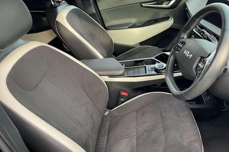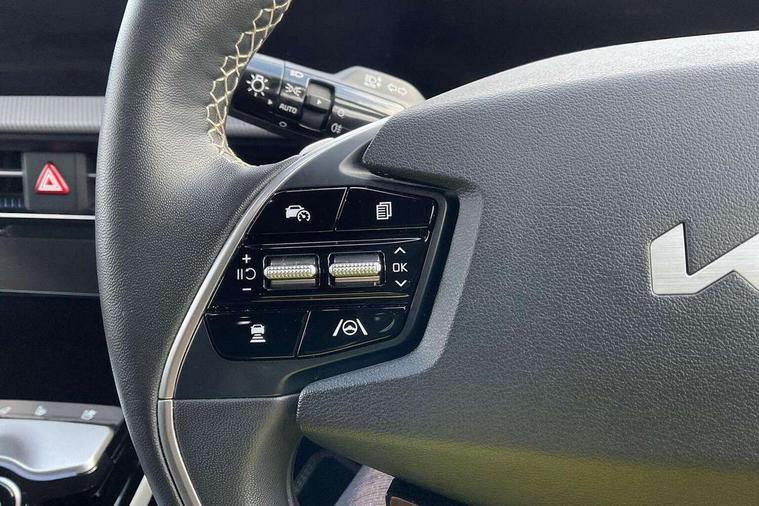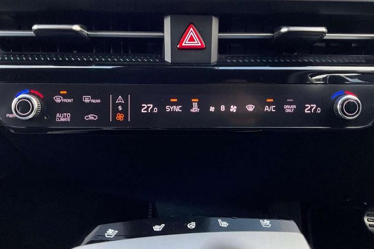12.3" Curved driver display screen, 12.3" Curved touchscreen navigation, 360 degree around view monitor, Apple car play/Android Auto with voice control, Augmented reality head up display, Blind spot monitor, Blind-spot collision avoidance assist (BCA) with Rear cross traffic assist (RCTA) and Safe exit assist (SEA), Bluetooth connectivity with voice recognition, Drive mode selector, Driver attention warning, E-call, Emergency stop signalling system, Forward Collision Avoidance (FCA) - Junction crossing, Forward Collision-Avoidance Assist (FCA) - City/Pedestrian/Cyclist/Junction turning, Front parking sensors, Highway Driving Assist 2 (HDA2), Intelligent speed limit assist (ISLA), Lane Following Assist (LFA), Lane keep assist, Low washer fluid warning, Navigation based smart cruise control with stop and go functionality, Parking collision avoidance assist (PCA), Power assist steering, Rear parking sensors, Remote Smart Park Assist (RSPA), Reversing camera with dynamic guide lines, Smart power tailgate, UVO connect, Wireless Mobile Phone Charger, 11 kW AC onboard charger, 5m Type 2 to type 2 charging cable, Charging port door opening button with a small light inside the door, 2 x USB-C charge port on front seats, 3 x Front USB charge port (two for C-type / one for USB), Meridan premium sound system with 14 speakers and active sound design (ASD), Steering wheel mounted controls, USB port for connection of a media device, All round electric windows with drivers and front passenger auto up/down function, Auto dimming rear view mirror, Automatic defog system, Automatic headlight control system, Black side sills, Body colour exterior door handles - flush auto, Deluxe door scuff plates, Dual LED headlights with adaptive driving beam, Electrically folding/adjustable/heated door mirrors with LED indicators, GT-Line exterior styling, Heated rear window, High gloss black beltline, High gloss black door garnish, High gloss black door garnish with body colour wheel arches, High gloss black door mirrors, High level LED brake light, LED daytime running lights, LED rear combination lights, LED rear fog lights, Panoramic sunroof with tilting and sliding function, Rain sensing front wipers, Rear privacy glass, Rear side wing doors, Rear spoiler, Rear wiper, Sequential indicators, Solar glass windshield, 1 x Front 12V socket, 1 x Luggage compartment 12V socket, 3 seat bench in 2nd row, 60:40 split remote folding rear seats, All-round height adjustable headrests, Alloy pedals, Ambient lighting, Artificial leather trimmed steering wheel, Centre console cupholders, Centre console with open storage compartment and armrest, Cloth headlining, Driver and front passenger premium relaxion seats, Driver and passenger sunvisors with illuminated LED vanity mirrors, Driver power adjusted memory seat with front passenger power seat with 2-way electric lumbar, Dual automatic air conditioning, Front and rear door storage, Front and rear luggage area LED lights, Front cabin LED light, Front seat back pockets, Heated front seats, Heated steering wheel, Illuminated glovebox, Interior door lock/unlock function, ISOFIX Child seat top tethers and anchor fixings, Luggage area load cover, Luggage board, Luggage net hooks, Metal paint interior door handles, Outer 2nd row heated seats, Paddle shift for drive mode select, Rear cabin LED light, Rear centre armrest with cupholder, Single front passenger seat, Ski through, Suede/Artificial leather bolsters upholstery, Tilt/telescopic adjustable steering wheel, Ventilated front seats, 3 point seatbelts on all seats, ABS, Automatic unlocking of doors in case of impact, Brake assist system, Centre side front airbags, Dual shell horn, Electric parking brake with auto hold function, Electronic stability control, Front centre airbag, Front passenger airbag cut-off switch, Front seatbelt pre-tensioners, Height adjustable front seatbelts, Hill start assist control (HAC), Multi collision brake assist, Rear door child safety locks, Twin curtain airbag, Twin front airbag, Tyre pressure monitoring system, Vehicle 2 load, Vehicle stability management, Engine immobiliser, Engine Start/Stop Button with Smart Entry System, Locking wheel nuts, Speed sensitive auto door locking, Thatcham category 1 alarm, Visible vehicle identification number, 20" Black alloy wheels, Tyre mobility kit,