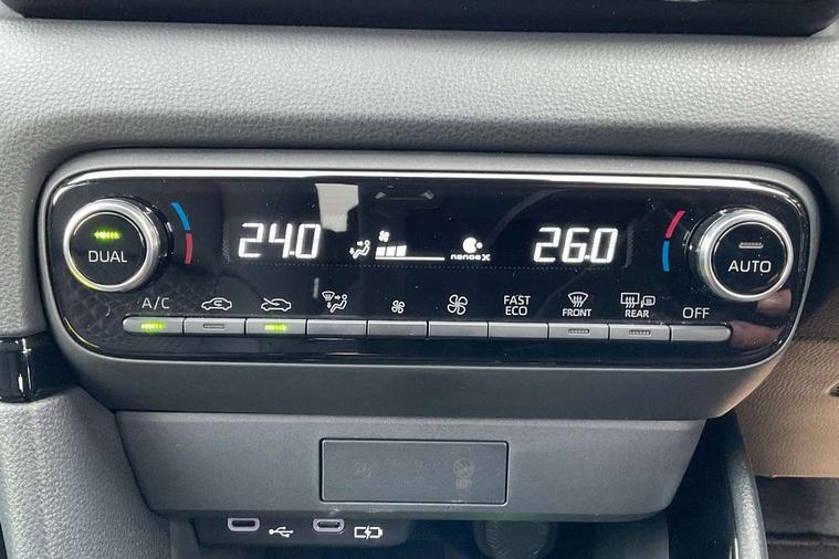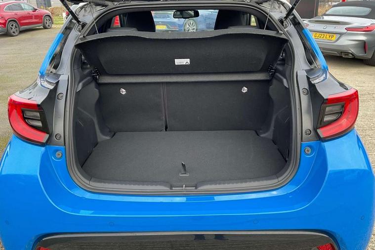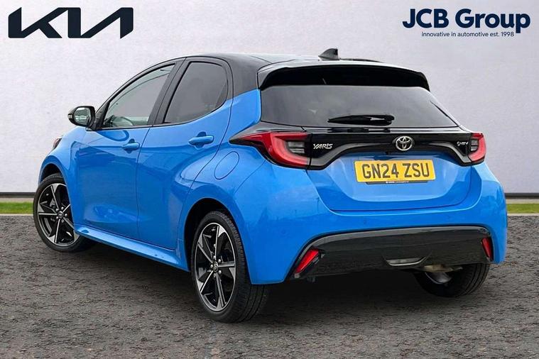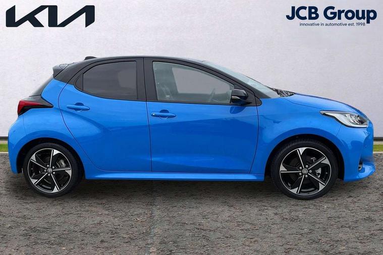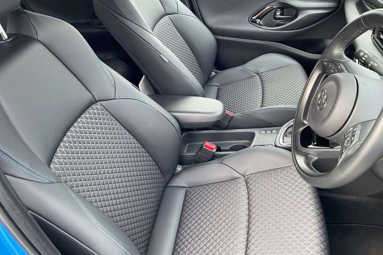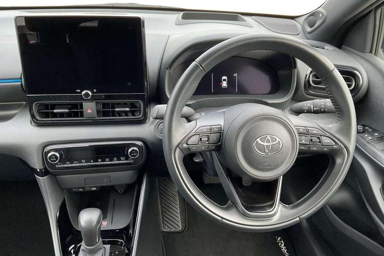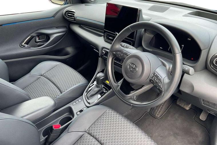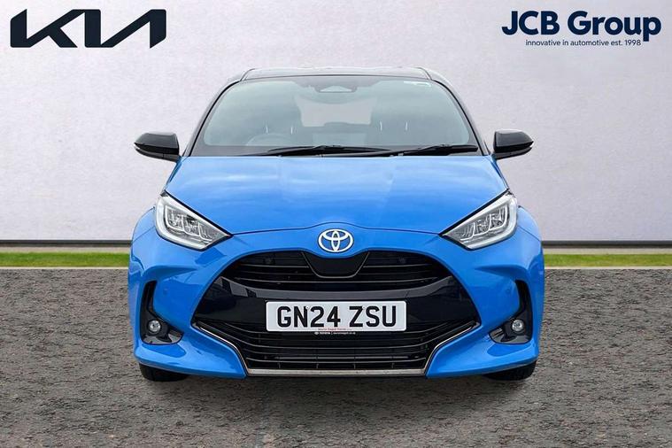 12.3" Digital Combimeter, Adaptive cruise control, Adjustable speed limit with speed warning, Bluetooth connectivity, Colour binocular inspired displays with digital speedometer, E-call, Electric power steering, Head up Display, Hybrid energy display, Multi information display switches on steering wheel, Reversing camera, Tailgate, Voice recognition, Wireless charger, Vehicle Stability Control (VSC), 10.5" Toyota smart connect multimedia with wireless smartphone integration incl apple car play and cloud Navigation, 6 speakers, 8 Speakers, JBL speaker system, Toyota Touch 3 system with DAB radio, USB connection, Acoustic windscreen glass, Auto windscreen wipers, Automatic headlights, Body coloured door mirrors, Dark chrome lower meshed front grille, Electric adjustable heated door mirrors, Follow me home headlights, Front auto power windows with anti jam protection, Full LED rear lights, LED daytime running lights, LED front fog lights, LED front light guide, LED Headlights, LED High mounted stop lamp, LED Indicators, LED rear light guide, Manual headlight levelling, Painted chequered front grille with hot stamp in mesh design, Rain sensor, Rear auto power windows with anti jam protection, Rear privacy glass, Rear side wing doors, Rear spoiler, Rear wiper, Shark fin antenna, Turning signal integrated indicators in door mirrors, Variable front intermittent wipers, 3 adjustable rear headrests, 3 seat bench in 2nd row, 3 spoke leather steering wheel, 60/40 split folding rear seat, Active headrests, Adjustable boot height, Black roof lining, Coat hooks in rear grab handles, Cup holders (2 front & door), Data Communication Module (DCM) connected services, Dual zone automatic air conditioning, Front armrest, Front sport seats, Glovebox, Height adjustable driver's seat, Height adjustable passenger seat, Isofix seat fixing, Leather gearshift, Map pockets on the backs of the front seats, Nanoe-X air purifier, Partial leather upholstery, Pollen filter, Shopping bag hooks, Single front passenger seat, Tilt/telescopic steering column, Safety pack - Yaris, 3 point seatbelts on all rear seats, ABS+EBD+Brake assist, Electronic parking brake, Emergency brake light system (EBS), Front passenger airbag on/off switch, Front seatbelt reminder, Hill start assist control (HAC), Rear child proof door locks, Rear seat belt reminder, Supplemental Restraint System (SRS) 8 airbags: Driver & passenger's airbags, dual side curtain airbags, side impact airbags, front centre airbag, Toyota Safety Sense 3 with over the air updates, Tyre pressure warning system, 2x Master key, Alarm/immobiliser, Keyless smart entry with push button start, Remote AC via MyT, Remote locking via MyT, Remote powered central double locking doors, Smart digital key, Piano black interior trim, Soft touch instrument panel, 17" Black Machined-face, 5 double spoke alloys wheels, Space saver spare wheel,