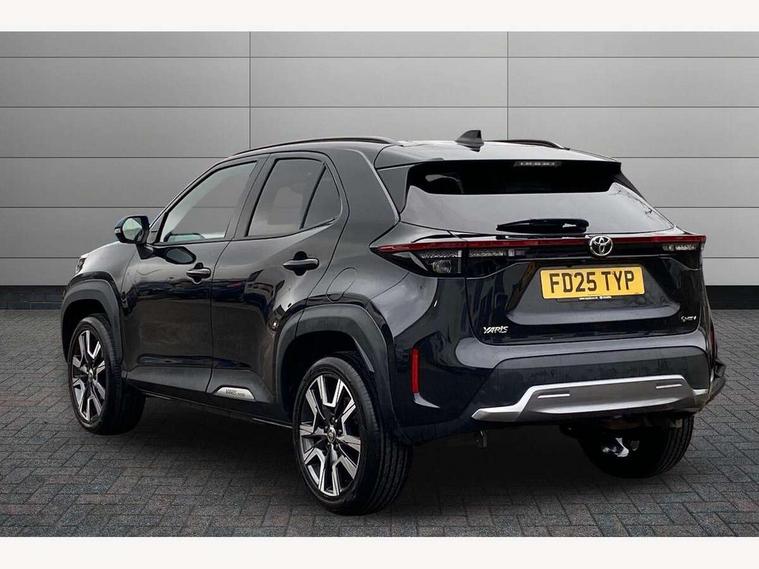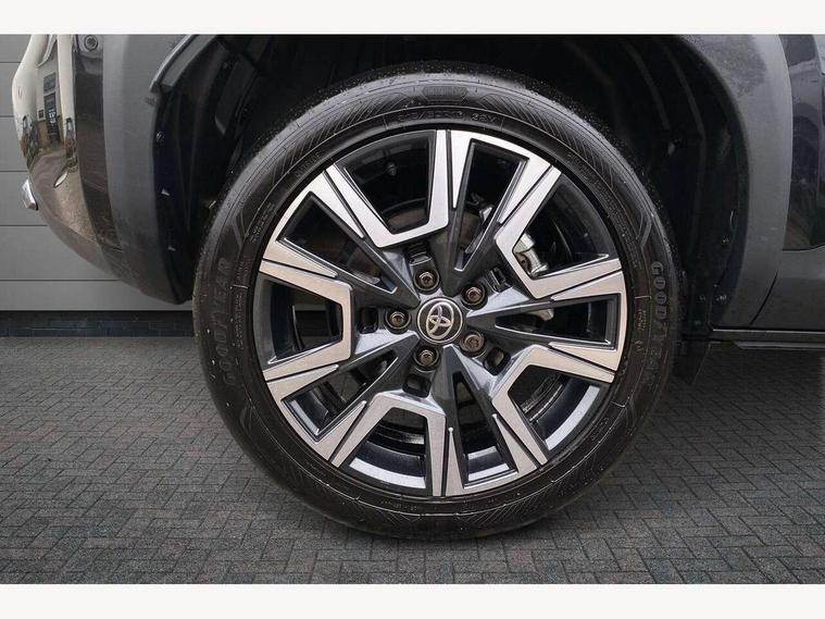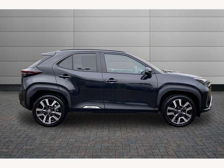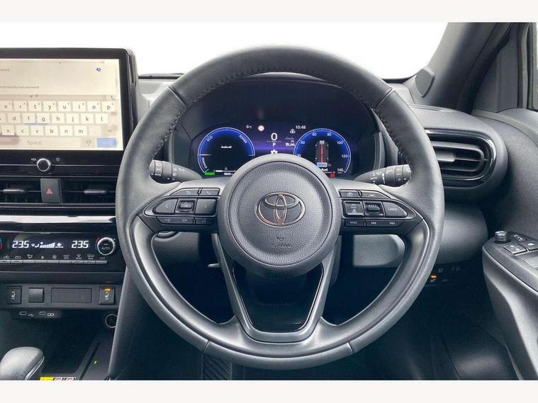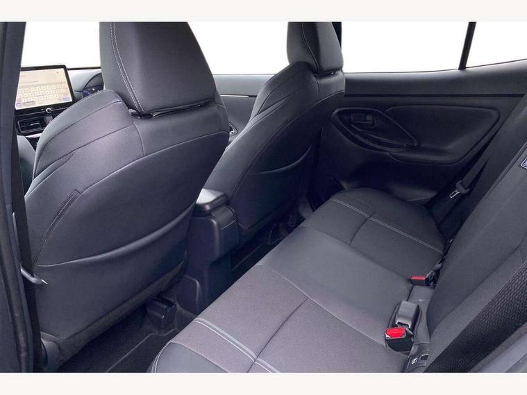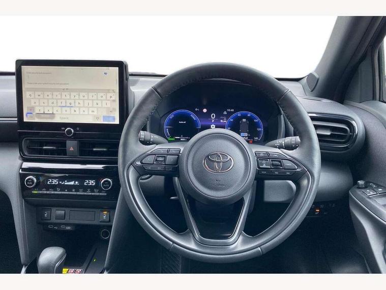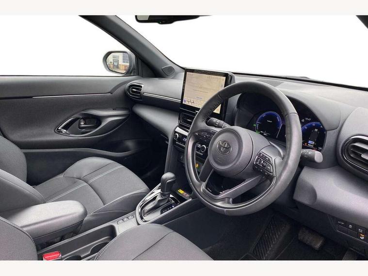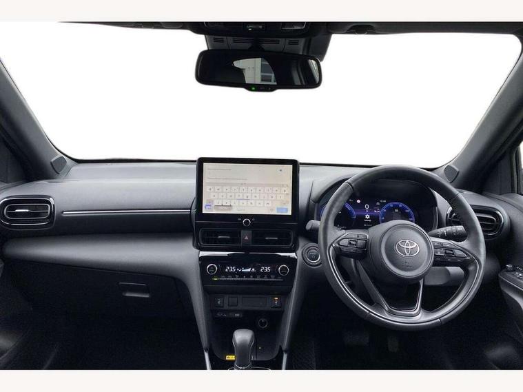 10.5" Multimedia display screen, 10.5" Toyota smart connect+ with navi multimedia system with wireless Smartphone integration incl Apple CarPlay, 360 degree panoramic view monitor, 7" Multi information display screen, Adaptive cruise control, multi info switches on steering wheel, Adjustable speed limiter, Advanced parking assist, Blind spot monitoring, Bluetooth connectivity, Color multi-information display, Digital speedometer, Digital tachometer, Drive mode selector, Driver attention alert system, Dynamic guide lines on reversing camera, eCall emergency system, Electric power steering, Emergency driving stop system, Full range intelligent adaptive cruise control, Hybrid system indicator, Intelligent front and rear parking sensors with clearance sonar and automatic braking, Intersection turn assist, Key reminder warning, Lane change assist, Lane trace assist, My T Connected services, Power tailgate, Pre-collision system enhanced with emergency steering assist, Rear cross traffic alert, Remote boot door release in cabin, Road sign assist - RSA, Safe exit assist, Tailgate, Telephone switch on steering wheel, Wireless Mobile Phone Charger, Steering assisted vehicle stability control, 6 speakers, DAB Digital radio, Front USB Type-C connector, Front USB-C device charger, Acoustic windscreen glass, Anti-jam protection on power windows, Auto dimming rear view mirror, Auto high beam [AHB] with on/off switch, Auto intermittent windscreen wipers, Automatic headlights, Automatic headlights cut-off, Automatically retractable door mirrors, Black door moulding, Black lower front grille, Black protection moulding on side doors, Black roof rails, Black wheel arch mouldings, Body colour door handles, Body colour front bumper, Body colour rear bumper, Electric adjustable heated door mirrors, Follow me home headlights, Front and rear electric windows with auto up/down function, Gloss black upper front grille, Headlight cut off reminder, Indicators integrated on door mirrors, Intermittent rear wiper, Kick activated power back door, LED 3rd brake light, LED daytime running lights guide, LED front fog lights, LED front light guide, LED Indicators, LED projector headlights, LED rear lights with sequential indicators, Manual headlight levelling, Meshed shape upper front grille, Noise reduction layer on windscreen, Pre wiring for towing hook, Privacy glass, Rain sensor, Rear roof spoiler, Rear side wing doors, Rear window defogger, Shark fin antenna, 12v power outlet - front, 12V power point in boot, 2x Rear coat hooks, 3 seat bench in 2nd row, 3 spoke leather steering wheel, 40/60 split deckboard, 40:20:40 split folding rear bench seat, Adjustable rear headrests, Adjustable speed limiter switch on steering wheel, Boot light, Central armrest, Driver and front passenger personal lights, Driver and front passenger Whiplash injury Lesseing seats, Driver and passenger seatback pockets, Dual zone automatic air conditioning, Fabric door trim, Front console box, Front cup holders, Front door pockets, Front head restraints, Front sport seats, Front/rear assist grips, Gear shift indicator, Grey roof lining, Heated driver and passenger seats, Heated steering wheel, Height adjustable driver's seat, Height adjustable front passenger seat, Hooks for luggage holding belts, ISOFIX child restraint system, Lane departure alert switch on steering control, Leather gearshift, LED centre room light, Light on driver and passenger sun visor, Manual telescopic and tilting steering wheel, Mirror on driver and passenger sun visor, Nanoe-X air purifier, Partial synthetic leather upholstery, Pollen air filter, Power adjustable lumbar support on driver seat, Rear cup holders, Rear door pockets, Rear head restraints, Remote air-conditioning system, Single compartment glovebox, Single front passenger seat, Soft tonneau cover, Storage box under boot floor, Voice recognition switch on steering wheel, White ambient lighting in centre console, White ambient lighting in footwell, White ambient lighting on front doors, Yaris cross floor mats, Tech pack - Yaris Cross, 3x3 point rear seat belts, ABS+EBD+Brake assist, Downhill Assist Control (DAC), Driver and passenger central airbags, Driver and passenger front airbags, Driver and passenger side airbags, Electronic parking brake, Emergency brake light system (EBS), Front seat belt reminder, Hill start assist control (HAC), Passenger airbag on/off switch, Pre-collision system with pedestrian and cyclist detection, Rear door child safety locks, Rear passenger side airbags, Rear seat belt reminder, Traction control, Tyre pressure warning system, Immobiliser, Intrusion alarm, Keyless smart entry with push button start, Power door locks, Power passenger window lock, Remote door lock, Gloss black side air vent surrounds, Tyre repair kit,