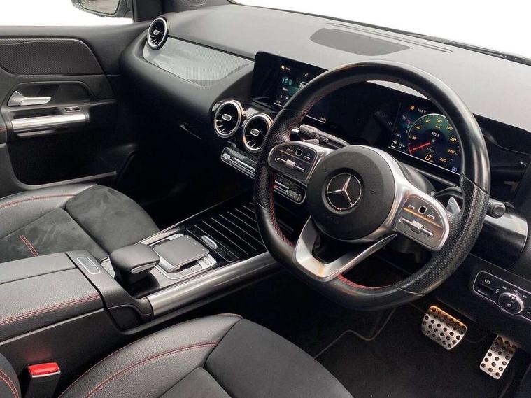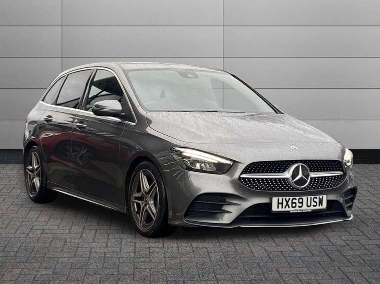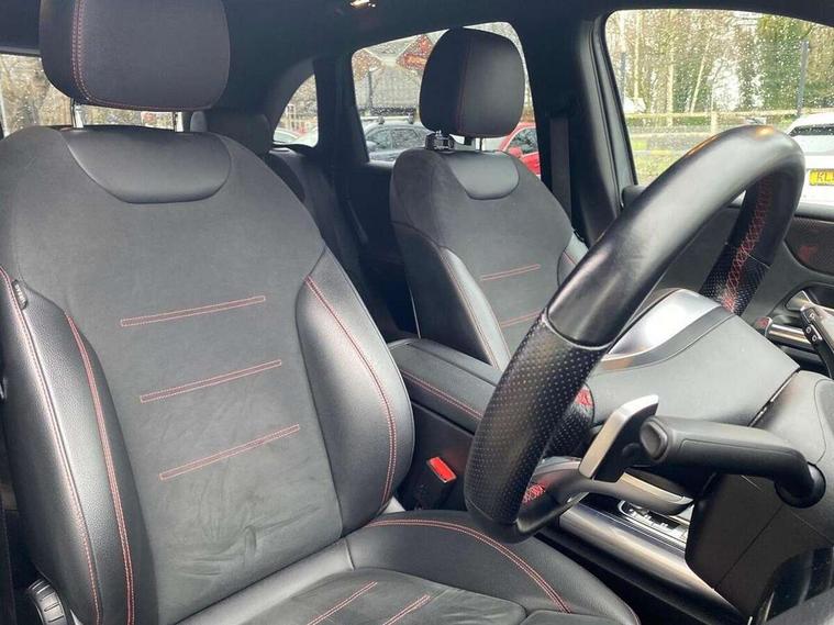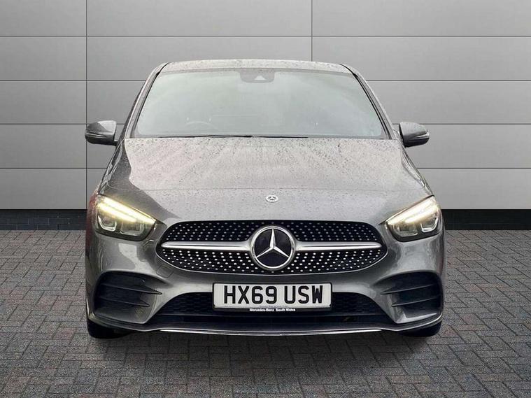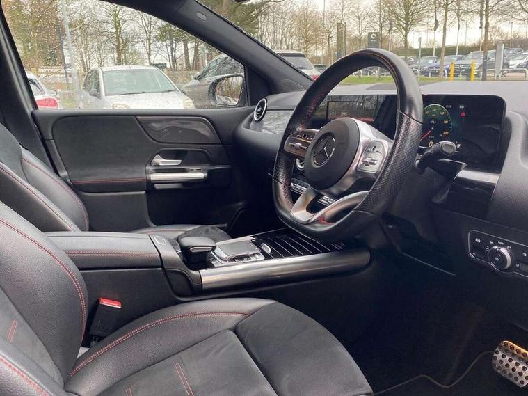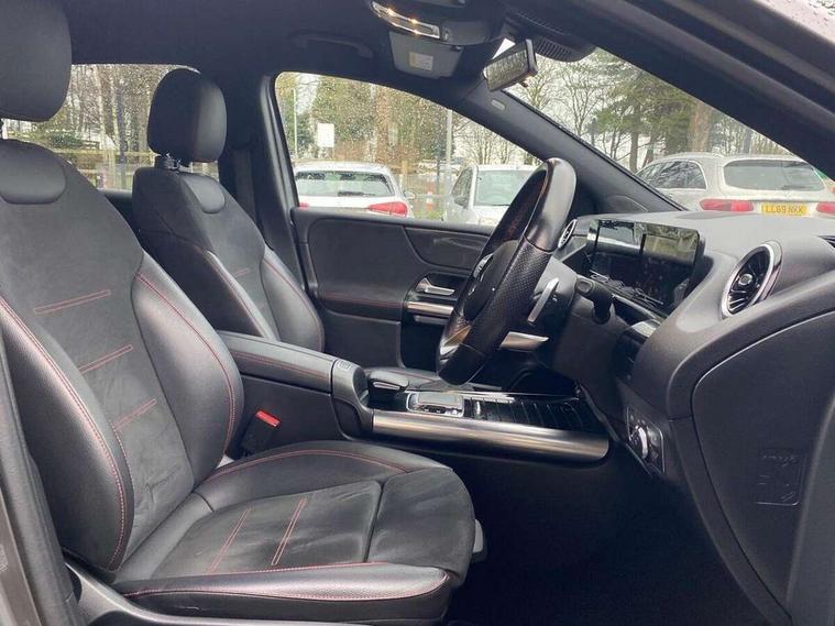 180 degree reversing camera with parking guidelines, 7 inch display in instrument panel, 7 inch touchscreen media display, Active lane keeping assist, Attention assist - Monitors steering behaviour and long journey fatigue, Brake pad wear indicator warning light, Cruise control + speed limiter, Direct steer system, DYNAMIC SELECT with a choice of driving modes (ECO, Comfort, Sport, Sport+ and Individual), Easy-pack tailgate, ECO start/stop function, Fluid level warning indicator for fuel, oil, coolant and washer fluid, Hard-disk navigation, Hey Mercedes Voice activation, Lamp failure indicator, Mercedes me connect including emergency call system, accident recovery, breakdown management and maintenance, Outside temperature gauge, Power assist steering, Pre-installation for car sharing, Preinstallation for Mercedes Benz link, Service indicator (ASSYST PLUS), Speed limit assist, Trip computer in multifunction display with current consumption indicator, BlueTEC diesel emission control system including AdBlue reservoir, Diesel particulate filter, Lowered comfort suspension, Rear axle multi-link, DAB digital radio tuner, Dual bluetooth interface, 2 USB ports (type C), MBUX multimedia system with DAB digital radio and touchpad including satellite navigation, 4 Electric Front and Rear windows, Adaptive brake lights, Aerial for GPS, AMG body styling front apron, rear apron and side skirts, Body coloured bumpers, Body coloured door handles, Body coloured side skirts, Chrome beltline strips, Diamond radiator grille pins in chrome with silver painted louvres and chrome insert, Electric adjustable and heated door mirrors with integrated LED side indicators, Exhaust system - Twin trapezoidal tailpipes in polished stainless steel, Headlamp assist automatic headlamp activation, Heated glass rear windscreen + timer control, High level LED third brake light, LED high performance headlamps with integrated LED daytime running lights, LED tail lamp, Privacy glass, Rain sensing windscreen wipers with two sensitivity settings, Rear fog lamp, 3 spoke multifunction sports steering wheel in nappa leather with flattened bottom and perforated grip area, 40:20:40 split folding rear seats with backrest, Air vents with surround in silver chrome, Ambient lamp and signal, Artico man-made leather/Microfibre Dinamica upholstery with red contrast stitching, Automatic child seat recognition sensor, Black roof lining, Brushed stainless steel sports pedals with rubber studs, Cup holder and stowage compartment lighting, Floor mats with stitched AMG lettering, Folding rear armrest, Freight packaging without tie-down hooks, Front and rear Handle recess/closing handle light in left and right, Front and rear head restraints, Front centre armrest with stowage, Front door sills with Mercedes Benz lettering, Front footwell lights, Front reading lamps in left and right console downlighter, Front seat cushion length adjustment, Front signal exit lamp in left and right, Front sport seats, Front vanity light in left and right, Galvanished gear shift paddles on steering wheel, Illuminated glove compartment stowage, Luggage net on driver/front passenger seat backrest, Manually adjustable front seats, Manually height and reach adjustable steering column, Oddments tray lighting, Rear reading lamp in support plate in left and right, Seat occupancy sensor for front passenger seat, Seats with adjustable head restraints, Spectacles compartment for driver, Sunvisors with illuminated vanity mirrors, Thermatic single zone climate control, Touchpad illumination, Touchpad on center console, Twin front cupholders, Two outer rear seat isofix and top tether child seat fixing points, Light and sight package - B Class, Seat comfort pack - B Class, 3 rear three point seatbelts, Active bonnet pedestrian safety measure which detects an impact and raises bonnet, Active brake assist includes forward collision warning system with autonomous braking, Adaptive brake assist with hold function and hill start assist, Airbags - kneebag for driver, Anti-lock braking system (ABS) with brake assist, Childproof locks manually operated for rear doors and electrically operated for rear power windows, Crash responsive emergency lighting, Driver and front passenger head and sidebags, Driver and front passenger windowbags, Dual stage driver/passenger airbags, Electric parking brake, Electronic stability programme with acceleration skid control, ESP curve dynamic assist, Front and rear seatbelt reminder, Front brake callipers with Mercedes Benz lettering, Tyre pressure monitoring system, Warning triangle and first aid kit, Alarm system with immobiliser and interior protection -Thatcham category 1, Keyless Go starting function, Remote central locking and crash sensor with emergency opening function, Carbon structure trim, Light switch in high-gloss black with ring in silver chrome, 18" AMG 5 twin spoke design alloy wheels painted in titanium grey with high sheen finish, Summer tyres, Tirefit tyre sealant kit,
