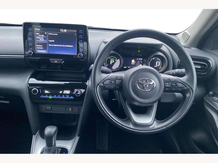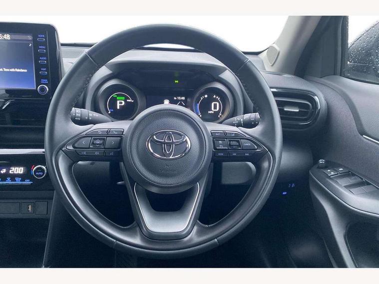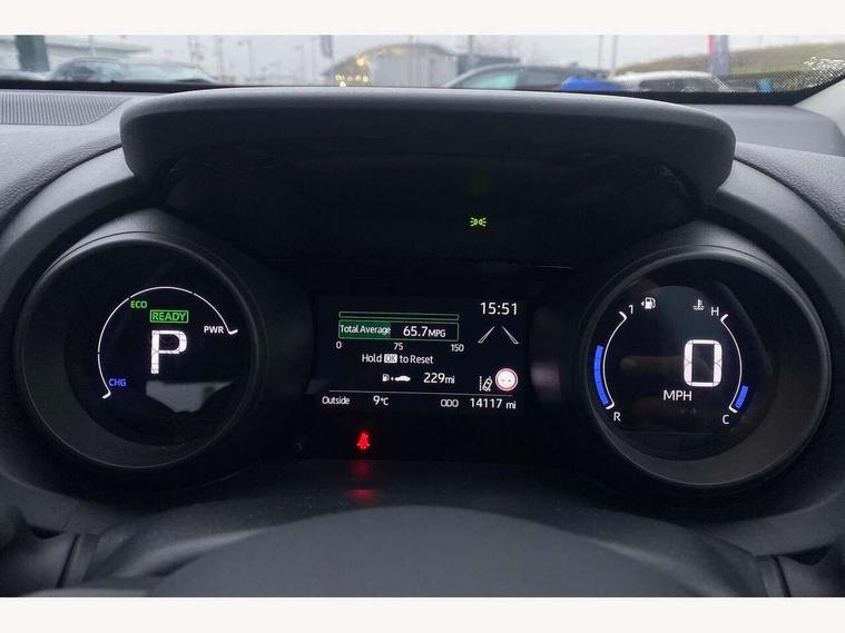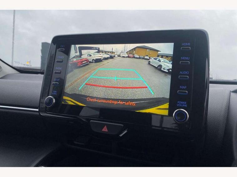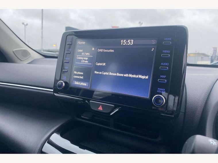 4.2" multi information display, 8" Toyota touch 2 multimedia system with Smartphone integration with Apple CarPlay and Android auto, Adjustable speed limiter, Bluetooth connectivity, Digital speedometer, Driver attention alert system, eCall emergency system, Electric power steering, Full range intelligent adaptive cruise control, Hybrid system indicator, Key reminder warning, Lane trace assist, Multimedia, audio, telephone and voice recognition switches on steering wheel, My T Connected services, Pre-collision system enhanced with emergency steering assist, Reversing camera, Road sign assist - RSA, Steering assisted vehicle stability control, 6 speakers, DAB Digital radio, USB connection, 3rd brake light, Acoustic windscreen glass, Anti-jam protection on power windows, Auto high beam [AHB] with on/off switch, Automatic headlights, Black lower front grille, Black Shark-fin antenna, Black upper front grille, Black wheel arch mouldings, Body colour door handles, Body colour front bumper, Body colour rear bumper, Electric adjustable heated door mirrors, Follow me home headlights, Front and rear electric windows with auto up/down function, Front intermittent wipers, Halogen projector headlights, Headlight cut off reminder, Indicators integrated on door mirrors, Intermittent rear wiper, LED daytime running lights, LED Indicators, Manual headlight levelling, Manually retractable door mirrors, Noise reduction layer on windscreen, Rain sensor, Rear side wing doors, Rear spoiler, Rear window defogger, 12v power outlet - front, 2x Rear coat hooks, 3 seat bench in 2nd row, 3 spoke leather steering wheel, 60/40 split folding rear seat, Adjustable speed limiter switch on steering wheel, Auto air conditioning, Boot light, Central armrest, Driver and front passenger personal lights, Fabric door trim, Fabric upholstery, Front console box, Front cup holders, Front head restraints, Glovebox, Grey roof lining, Height adjustable driver's seat, Height adjustable front passenger seat, ISOFIX child restraint system, Lane departure alert switch on steering control, Leather gearshift, Manual telescopic and tilting steering wheel, Mirror on driver and passenger sun visor, Pollen air filter, Rear head restraints, Single front passenger seat, Soft tonneau cover, 3x3 point rear seat belts, ABS+EBD+Brake assist, Driver and passenger central airbags, Driver and passenger front airbags, Driver and passenger side airbags, Electronic parking brake, Emergency brake light system (EBS), Front seat belt reminder, Hill start assist control (HAC), Passenger airbag on/off switch, Pre-collision system with pedestrian and cyclist detection, Rear door child safety locks, Rear passenger side airbags, Rear seat belt reminder, Traction control, Tyre pressure warning system, Immobiliser, Intrusion alarm, Keyless smart entry with push button start, Power door locks, Power passenger window lock, Remote door lock, 16" 10 spoke alloy wheels, Tyre repair kit,