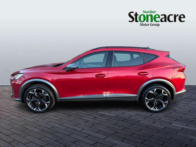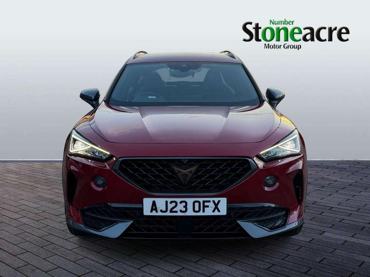 Digital cockpit and configurable dashboard, Driver alert system, Driving profile selection, Forward collision warning with automatic braking, Lane assist, Navigation system with 12'' Touchscreen Display, Park assist (inc front/rear parking sensors), PAS, Predictive adaptive cruise control with speed limiter, Rear view camera, RPM, trip computer, outside temp gauge, instrument light brightness, low fuel warning light, lights on reminder, gearshift indicator, Service interval indicator, Start/stop system with regenerative braking, Voice control system, Wired Android Auto, Wireless apple carplay, Wireless phone charger, Electronic locking differential and dynamic traction support, Standard suspension, 2 front and 2 rear USB type C sockets, Auxiliary input socket, DAB radio, Auto dimming rear view mirror, Body colour door handles, Body coloured bumpers, Dark grey wing mirror, Daytime running light with automatic headlight control and coming home feature, Dynamic headlight range control, Electric front/rear windows, Electrically adjustable heated and folding door mirrors with memory function, Front fog lamps with cornering function, Gloss black roof rails and window surrounds, LED Headlights, LED Taillights with dynamic indicator, Rain sensing wipers, Rear diffuser with black simulated exhaust pipes, Rear side wing doors, Rear wash/wipe, Third brake light, Tinted rear windows, Welcome lights, 12v power supply in centre console, 12V socket, 12v socket in loadspace, 2 front and 2 rear reading lights, 230V socket, 3 seat bench in 2nd row, 60/40 split rear bench seat with armrest and mechanical seat release, Black headlining, Dust/pollen filter, Front and rear head restraints, Front centre armrest, Height/reach adjust steering wheel, Illuminated interior front door sills, Illuminated sunvisor with mirror, Isofix, Leather multi function heated steering wheel with gear shift paddles, Luggage tie-down hooks, Single front passenger seat, Three zone climate control with control panel in rear, Variable luggage/load compartment floor, Wraparound lighting, Genuine Nappa leather Pack - Cupra, 3 point seatbelts on all rear seats, ABS, Brake control system - ESC and brake booster, Child proof door locks, Driver and front passenger airbags with front passenger airbag de-activation, Electronic parking brake, Front and rear disc brakes, Front side curtain airbags, Hill hold control, Public e-call, Seat belt reminder for front and rear seats, Tyre pressure monitoring system, Anti theft alarm system, Keyless entry and start system (KESSY), Locking wheel bolts, Copper and aluminium interior detailing, 19" 'Exclusive' machined sport matte black and silver alloy wheels,