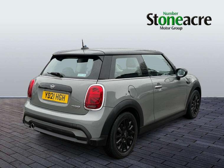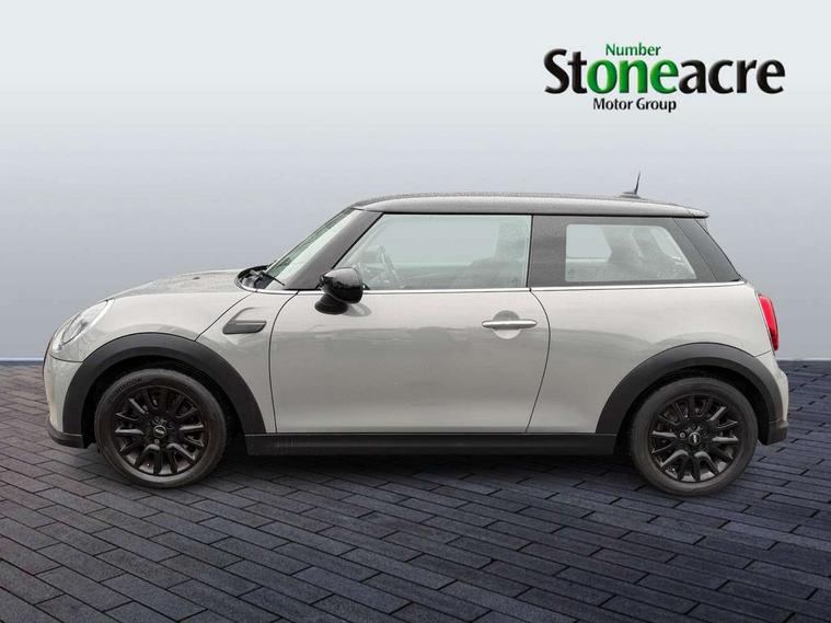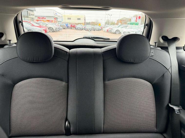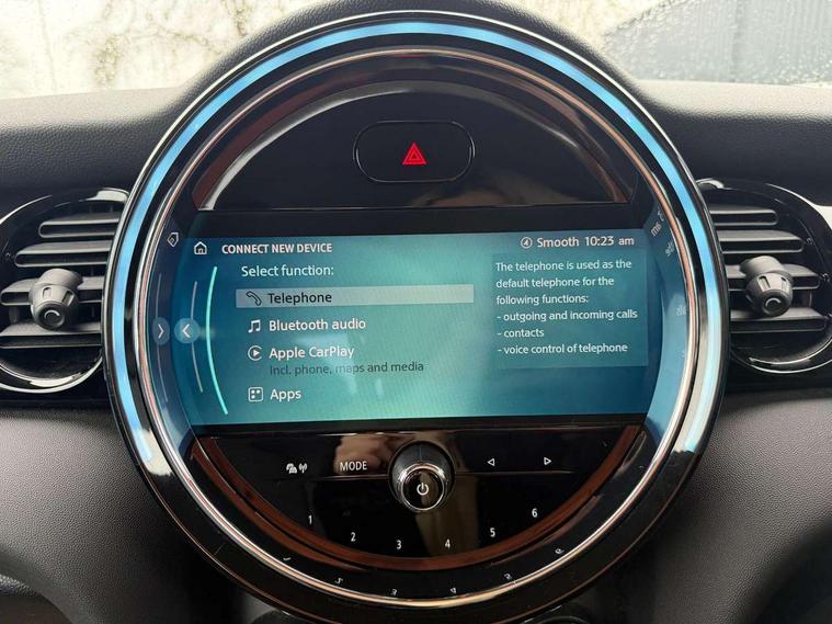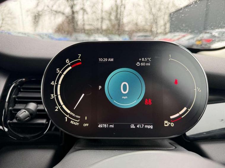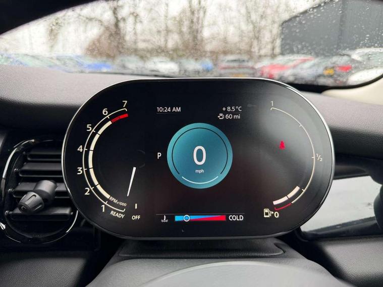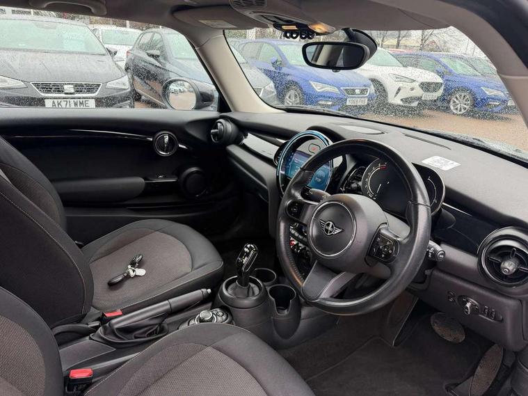 Automatic start/stop function with brake energy recuperation, Compatible mobile phone bluetooth with audio streaming, Cruise control with brake assist, Electro-mechanical speed dependant steering assistance, Flexible car sharing preparation, Instrument cluster, Mini E-call, MINI TeleServices, On board computer, Service interval indicator, Double Vanos system, Fully variable valve control, High precision injection, Performance Control, Steptronic transmission with double clutch, 4 speakers in front door trims and underneath front seats, 8.8" touchscreen with LED ring, FM tuner and DAB digital radio, Automatic headlight activation switch, Body colour fuel filler cap, Chrome border high gloss black slats radiator grille, Dynamic brake lights, Electric front windows, Exhaust tailpipe on left with chrome finisher, Heated rear window, Heated windscreen washer jets, LED headlight with closed ring and daytime driving lights, Metal door sill strips with MINI imprint, Model logo Cooper on right of tailgate, Rain sensor window wipers, Rear fog lights, Rear LED lights with union jack design, Rear window wiper, Side scuttle panel with integrated indicator, Sun/heat protection glass, White indicator lenses, 12V Accessory socket in centre console, 4 lashing eyes in luggage compartment, 60/40 split folding rear seat, Ambient lighting, Carbon black colour line - Knee roll and door armrest, Chrome interior highlights, Cupholders, Front and rear head restraints, Front and rear isofix with front passenger airbag deactivation, Glove compartment, Height and length steering column adjustment, Interior lighting with 12 different colours across the dashboard, underneath door bezel with illuminated laser-engraved design on central display, Leatherette gearshift lever and handbrake gaiters, LED reading lights, vanity mirror lights, front foot well light and spotlight on front seats, Manual air conditioning, Mechanical seat adjustment - forward/back & backrest for front seats and driver seat height adjust, Multifunction steering wheel, Passenger seat height adjuster, Satellite grey headlining including grab handles and clothes hooks, Sport leather steering wheel with speed limiter and audio/communication controls, Storage compartments in doors, Sunvisors with vanity mirrors, Tool kit, Velour floor mats, 3 point seatbelts on all four seats, 6 Airbags - front, side, head and seat belt tensioners, Anti-lock braking system (ABS), DSC - Dynamic Stability Control, Front and rear disc brakes, Single tone fanfare horn, Tyre pressure monitoring system, Alarm system with tilt sensor, monitoring doors, bonnet interior and tailgate, Electronic vehicle immobiliser, Start/stop toggle with keyless go, Piano black interior trim, Tyre repair kit,