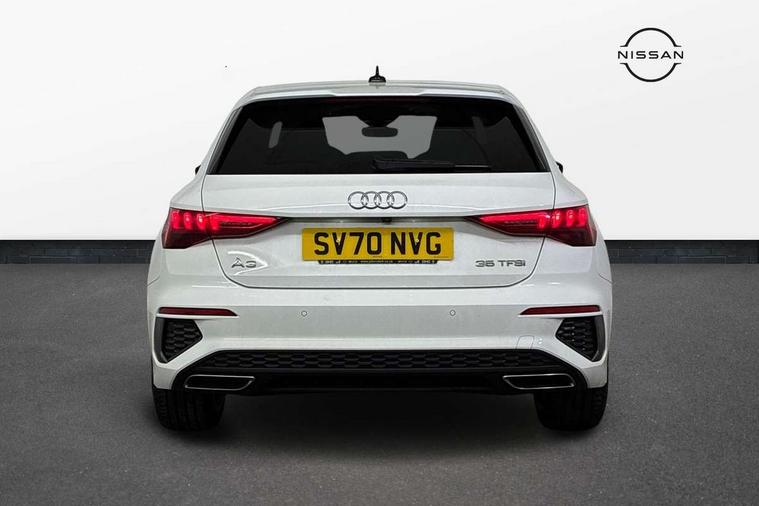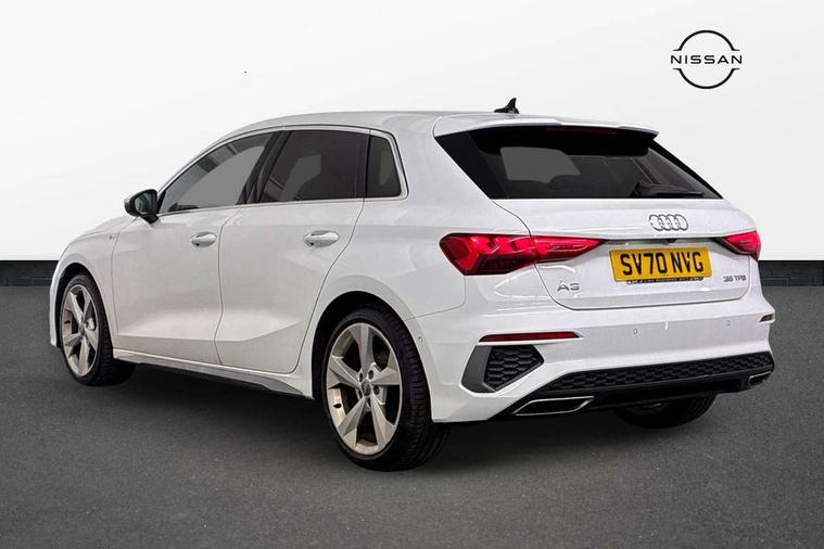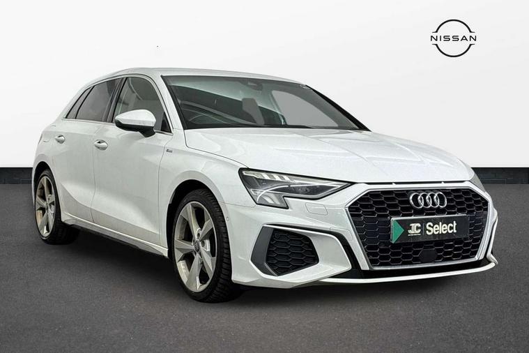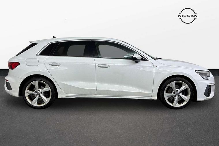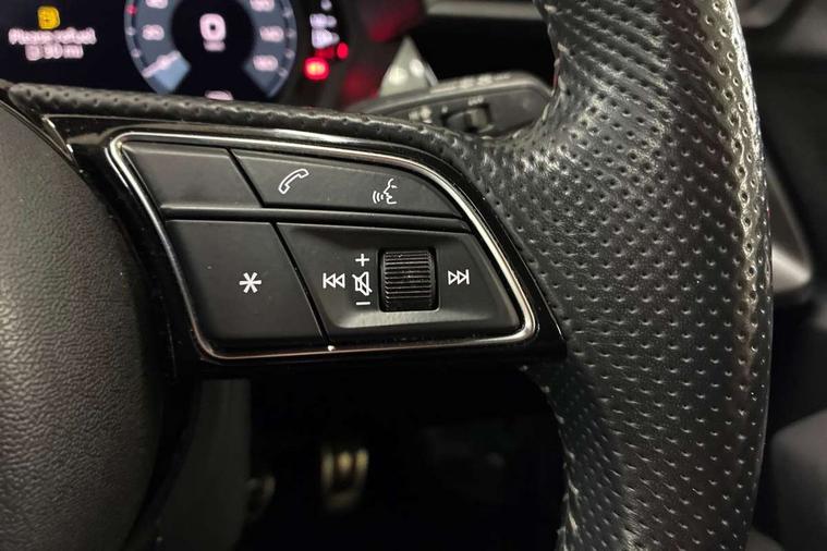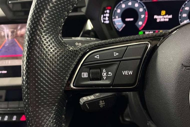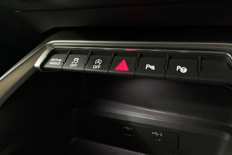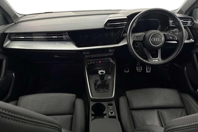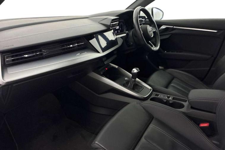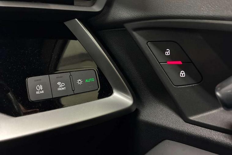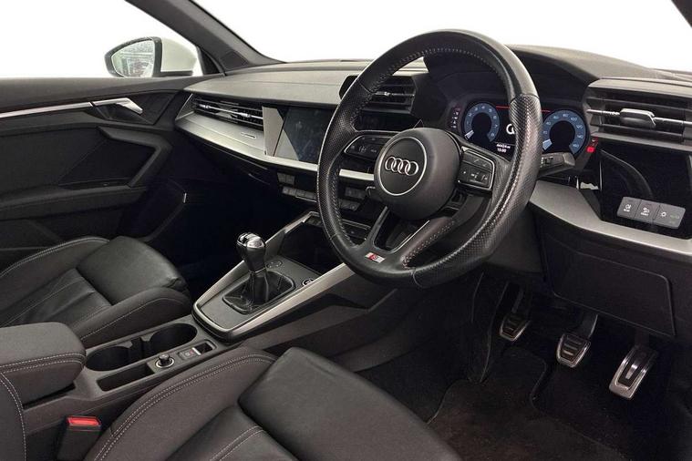 Audi connect emergency call and service, Audi drive select (Auto, Comfort, Dynamic, Efficiency and Individual), Audi smartphone interface, Audi Virtual Cockpit - 10.25" digital and colour instrument cluster, Automatic start/stop system with recuperation, Bluetooth interface, Collision avoidance assistant, Cruise control, Electromechanical power speed sensitive steering, Lane departure warning system, MMI Navigation Plus with high resolution 10.1" colour touch screen display, Rear parking sensors, Service indicator, Trip computer, Voice control system with natural language interaction, 1xUSB-A and 1xUSB-C connection, 6 passive loudspeakers, DAB Digital radio, Acoustic glass windscreen, Aluminium window trim, Auto dimming frameless rear view mirror, Body colour exterior mirrors, Electrically adjustable/heated/folding/dimming door mirrors with kerb view includes integrated LED indications + kerb view function for passenger side, Front electric windows, Illuminated aluminium inserts front door sills with S logo, LED daytime running lights, Light and rain sensors, Privacy glass - dark tinted rear window, rear door and side windows, Rear electric windows, Rear side air outlets in grained matt black, Rear wiper, S line bumpers, S roof spoiler, 12V socket and storage compartment in front centre console, 40/20/40 split folding rear seat bench with cupholder, Black cloth headlining, Dual zone electronic climate control, Front and rear centre armrest in leather, Front and rear headrests, Front/rear floor mats, Height and reach adjustable steering wheel, Interior lighting - glove compartment light and right hand side, Luggage compartment floor covering, Manual boot compartment lid, Manually adjustable front seats, Seat side bolsters, Stainless steel pedals and front footrest, Twin leather upholstery with front sports seats S embossed logo, Aluminium interior elements pack - A3 Sportback, S line styling pack - A3 Sportback, 3x3 point rear seat belts, Driver and front passenger airbag with passenger airbag deactivation, Electronic Stabilisation Control (ESC) including ABS, ASR and EDL, First aid kit with warning triangle and 2 safety vests, Hill hold assist, Pre-sense front with pedestrian and cyclist detection, Seatbelt monitoring, Tyre pressure loss indicator, Anti theft alarm, Anti-theft wheel bolts, Electronically operated child lock, Immobiliser, Remote control central locking, Accent surfaces in the dashboard and centre console in platinum grey silk effect paint finish, Dark spectrum aluminium inlays,