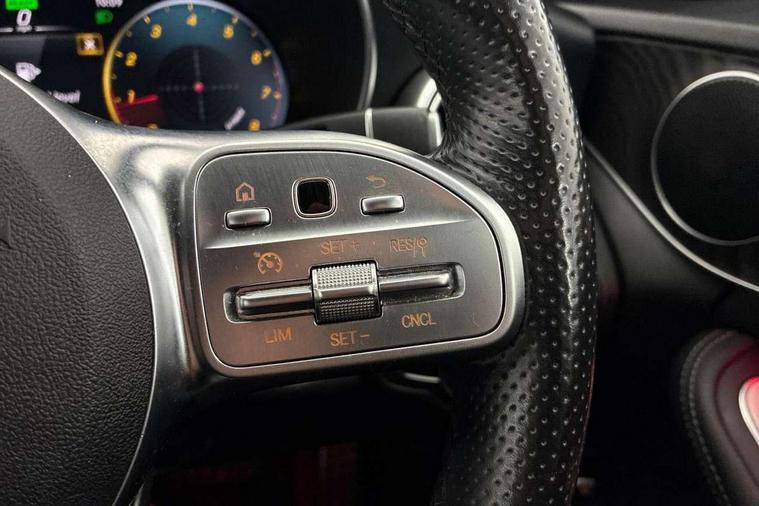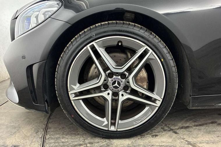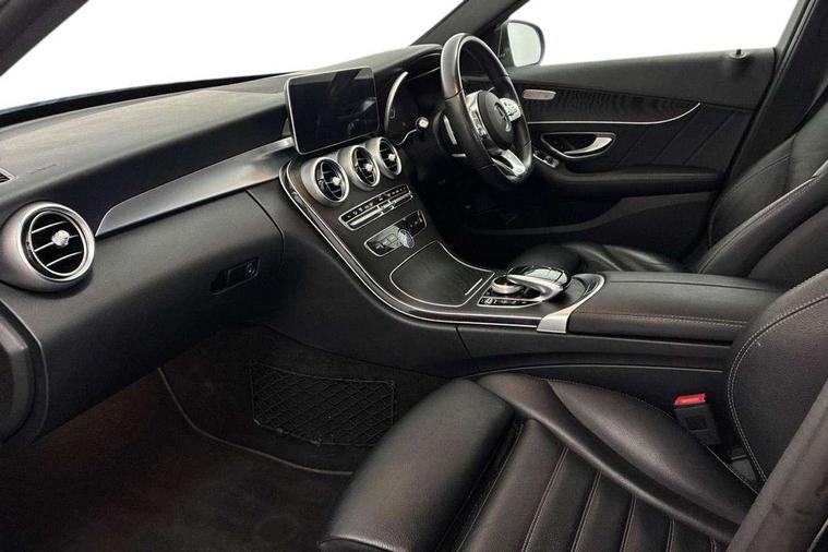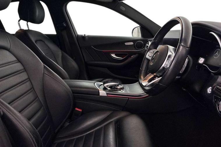 Active park assist with parktronic system, Attention assist, Bluetooth system, Collision prevention assist plus, Comand Online HDD Nav with media interface, radio/CD/DVD/MP3, 10.25 screen, linguatronic voice control, DYNAMIC SELECT with a choice of driving modes (ECO, Comfort, Sport, Sport+ and Individual), Multi function trip computer, Outside temperature gauge, Remote boot release, Reversing camera, Service indicator (ASSYST PLUS), Smartphone integration with Apple CarPlay and Android auto, Wireless charging, Petrol Particulate Filter, 2 USB ports in centre console, DAB Digital radio, Mid-range sound system with 7 speakers and 225W amplifier, SD card slot, Steering wheel mounted audio controls, Adaptive brake lights, Aerial in rear window, AMG body styling, Body coloured bumpers, Body coloured door mirrors, Chrome pins diamond radiator grille with integrated stars, Electric windows one touch open/close, Electrically adjustable and heated door mirrors, Green tinted glass, Heated windscreen washers, LED daytime running lights, LED Indicators, LED tail lights, LED third brake light, Multi beam LED headlights, Rain sensor windscreen wipers, Side windows surround in polished aluminium, Twin exhaust pipes, 2 cupholders in front centre console, 3 spoke flat bottom AMG steering wheel in nappa leather, 40:20:40 split folding rear seats, AMG floormats, AMG sports seats, Auto Mercedes-Benz child seat recognition sensor, Dual zone automatic climate control, Electric front seat height adjustment, Front and rear head restraints, Front centre armrest with storage compartment, Front door sills with Mercedes Benz lettering, Gearshift paddles, Heated front seats, Illuminated glovebox, Interior lighting - 64 colour Ambient lighting, Multifunction steering wheel, Rear top tether child seat ISOFIX attachment, Sports pedals with stainless steel surfaces and rubber studs, Sunvisors with illuminated vanity mirrors, Lighting pack - C class, Mirror pack - C Class, Seat comfort pack - C Class, Stowage space pack - C Class, 3 rear 3 point seatbelts, ABS with Brake Assist, Active bonnet, Adaptive brake system, Black seat belts, Brake calipers with Mercedes-Benz lettering + perforated brake discs, Child proof door locks, Crash sensor, Drivers knee airbag, Drivers pelvis airbag, Dual stage driver/passenger airbags, Electronic parking brake, ESP with ASR, Front passenger seat occupancy sensor, Front side airbags, Hill start assist, Rear seatbelt warning indicator, Tyre pressure monitoring system, Warning triangle and first aid kit, Window airbags, Alarm system/interior protection/immobiliser, Chrome surround in electric key, Remote central locking, Tyre inflation kit,