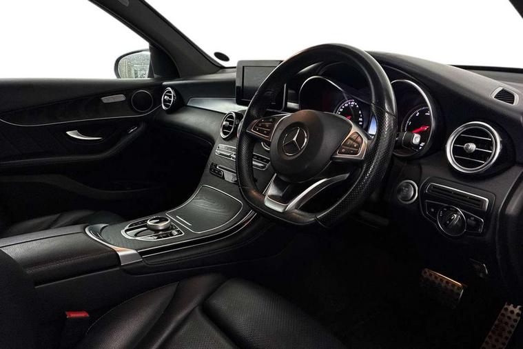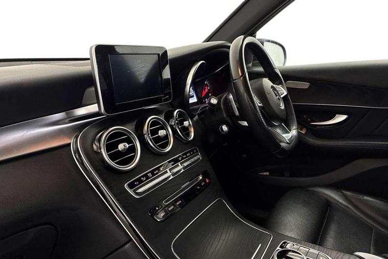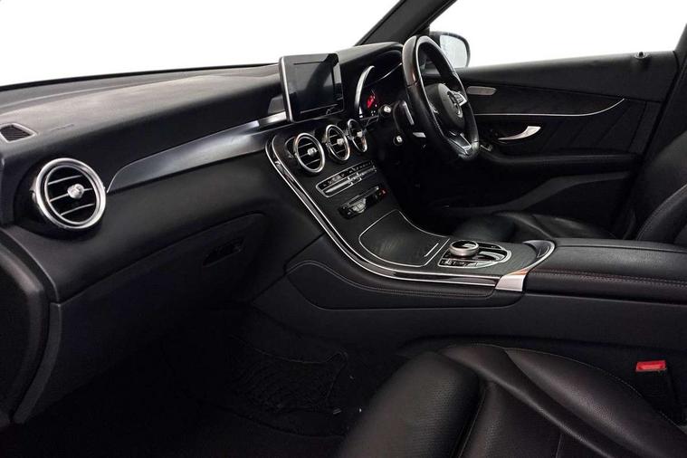 7" colour screen, Active park assist with parktronic system, Attention assist, Bluetooth interface for hands free telephone, Collision prevention assist plus, Crosswind Assist, DYNAMIC SELECT with a choice of driving modes (ECO, Comfort, Sport, Sport+ and Individual), Garmin Map Pilot navigation system with SD card, touchpad and voice control, Instrument cluster with 5.5-inch TFT multi-function display, Multi function trip computer, Outside temperature gauge, Power opening/closing tailgate, Remote boot release, Service indicator (ASSYST), Diesel particulate filter, 5 speakers, DAB Digital radio, Frontbass loudspeakers, Mercedes Audio 20 radio/single CD + telephone keypad, USB connection, Adaptive brake lights, Aerodynamic rear spoiler, AMG bodystyling, Automatic headlights, Body coloured bumpers, Chrome exterior trim, Electric windows one touch open/close, Electrically adjustable and heated door mirrors, Exhaust tailpipe finisher, LED daytime running lights, LED rear lamps, Privacy glass (to rear of B post), Rain sensor windscreen wipers, Range adjustable headlights, Rear wiper, Tinted glass all round, 2 cupholders in front centre console, 2 way rear head restraints, 3 spoke flat bottom AMG steering wheel in nappa leather, 4 way adjustable front head restraints, 4 way electric lumbar support for driver and front passenger, 40:20:40 split folding rear seats, AMG floor mats, AMG sports seats, Auto Mercedes-Benz child seat recognition sensor, Automatic climate control, Black roof lining, Dividing net - rear, Electric front seat height adjustment, Front armrest with storage box, Front door sills with Mercedes Benz lettering, Gearshift paddles, Heated front seats, Height/reach adjustable steering column, Lockable/illuminated glovebox, Multifunction steering wheel, Rear top tether child seat ISOFIX attachment, Sports pedals with stainless steel surfaces and rubber studs, Sunvisors with illuminated vanity mirrors, Easy-pack load compartment cover, Interior lighting pack - GLC, Mirror pack - GLC, Storage pack - GLC, 3 rear 3 point seatbelts, ABS with Brake Assist, Active bonnet, Adaptive brake system, Brake calipers with Mercedes-Benz lettering + perforated brake discs, Child proof door locks, Drivers knee airbag, Dual stage driver/passenger airbags, Electronic parking brake, ESP with ASR, Front and rear seatbelt reminder, Front passenger seat occupancy sensor, Front side airbags, Hill hold function, Tyre pressure monitoring system, Warning triangle and first aid kit, Window airbags, Alarm system/interior protection/immobiliser, Automatic door locking, Keyless Start, Remote central locking, Tyre inflation kit,