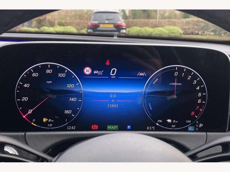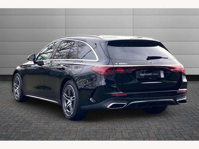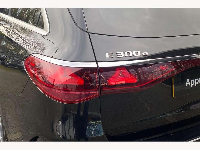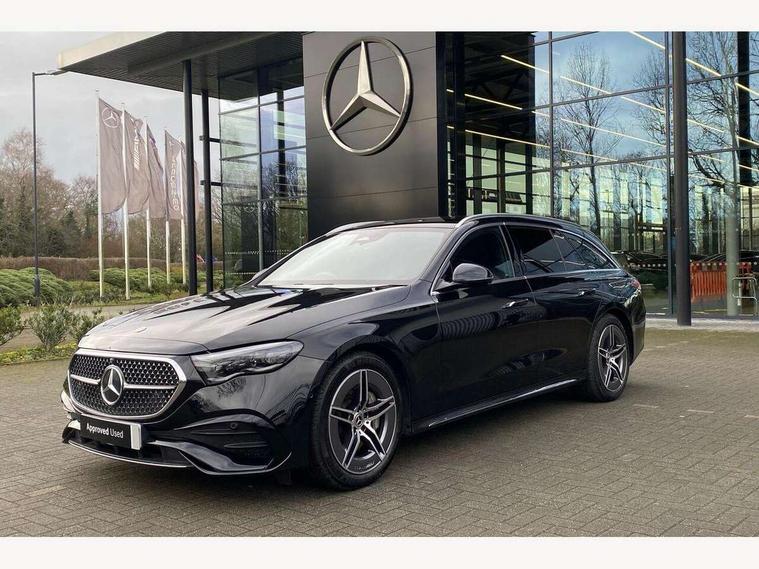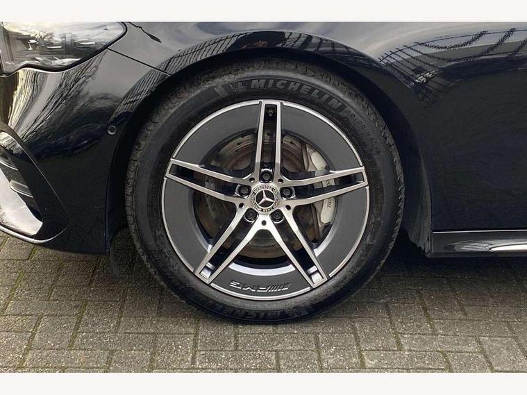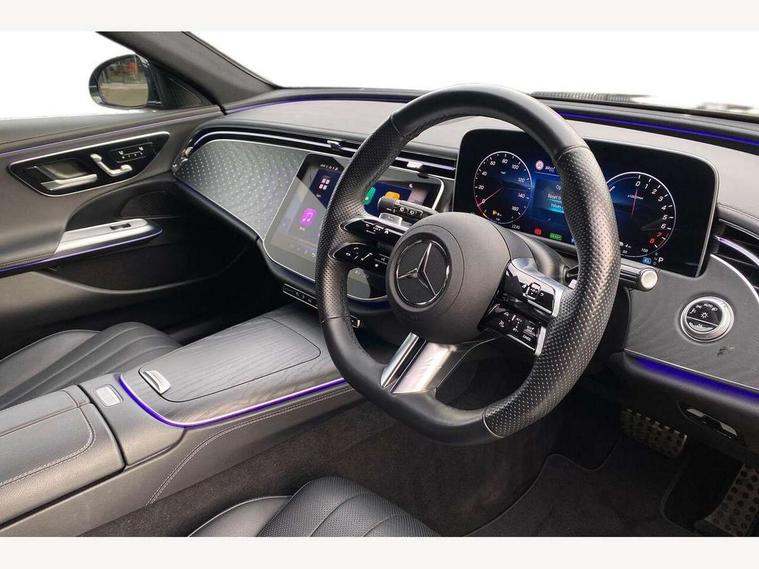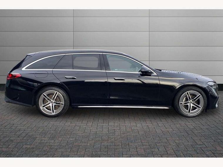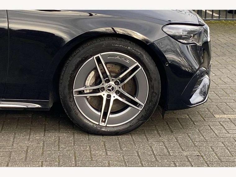 12.3" Driver display screen, 14.4" central media display, 5G Communications module, Acoustic presence indicator, Attention assist, Augmented reality navigation, Blind spot assist, Brake wear warning display, Direct steer speed sensitive steering, Easy-pack tailgate - Powered opening/closing automatically, ECO start/stop function, Emergency call assistance, Evasive manoeuvre support, Fluorescent jacket for driver, Hard disc navigation, Head up Display, MBUX navigation premium, MBUX voice control, Mercedes connect me, Outside temperature display, Preinstallation for live traffic, Remote and charging services plus, Service indicator (ASSYST), Status display for rear seat belts in instrument cluster, Trip computer in multifunction display showing current fuel consumption, Wireless charging, Wireless smartphone integration with Apple CarPlay and Android auto, 5m Domestic charging cable, 5m Public charging cable, 9G TRONIC automatic transmission, AC charging, Agility control suspension, Rear air suspension with level control, Sporty engine sound system, 2 USB ports in centre console, 2 USB ports in the rear, DAB Digital radio, Preinstallation for MBUX Entertainment Plus, 3rd brake light, Adaptive brake lights, Aerial integrated in rear window, AMG bodystyling, Auto dimming driver's door mirror, Auto dimming rear view mirror, Black radiator grille, Chrome roof rails, Digital air vent control, Electric folding door mirrors, Electric windows with one touch opening/closing and obstruction sensors, Electrically adjustable and heated door mirrors, Heat insulating privacy glass, LED daytime running lights, LED digital light with adaptive highbeam assist plus, Pre-installation for roof rail systems, Rear side wing doors, Rear wiper, Surround lighting with logo projection, 3 seat bench in 2nd row, 4 way lumbar support, Ambient lighting, AMG brushed stainless steel sports pedals with rubber studs, AMG floor mats, AMG line interior, Automatic child seat recognition sensor, Central stowage compartment with USB socket for use with Android Auto and Apple CarPlay, Comfort seats, Courtesy lights in rear grab handles with reading light functionality, Folding rear seat backrest, Front centre armrest with stowage compartment, Glove compartment - lockable, air conditioned and illuminated, Head restraints for driver and front passenger (four-way adjustability) and in rear (two-way), Heated front seats, Illuminated door sills, Multifunction sports steering wheel in nappa leather, Roof liner in black fabric, Seat occupancy sensor for front passenger seat, Single front passenger seat, Steering wheel touch control buttons for audio and onboard settings, Sunvisors with illuminated vanity mirrors, Thermotronic 4 zone climate control, Leather package - E Class, Memory package - E Class, Parking package with 360 degree camera - E Class, USB plus package - E Class, 3x3 point rear seatbelts, Active bonnet pedestrian safety measure which detects an impact and raises bonnet, Adaptive brake system with HOLD function and brake drying in the wet, Airbags - sidebag for driver and front passenger with combined thorax/pelvis bag, Anti-lock braking system (ABS), Automatic front passenger airbag deactivation, Central airbag, Childproof locks manually operated for rear doors and electrically operated for rear power windows, Driver and adaptive front passenger airbags, Electronic parking brake, Electronic Stability Programme, Hill start assist, ISOFIX child seat attachment points two outer rear seats, Knee airbags, Pedestrian protection, Pre-Safe anticipatory safety system, Tyre pressure monitoring system, Warning triangle and first aid kit, Window airbags, Alarm system with interior monitoring, Central locking with interior switch, automatic locking and crash sensor with emergency opening function, Dashcam, Digital vehicle key, Guard 360 degree vehicle protection plus, Increased anti theft protection, Keyless Go, Urban guard vehicle protection plus, Centre console trim in open pore black ash wood, Dash trim in open pore black ash backlit wood with laser cut Mercedes Benz star pattern, 19" AMG 5 twin spoke alloy wheels, Summer tyres, Tirefit,