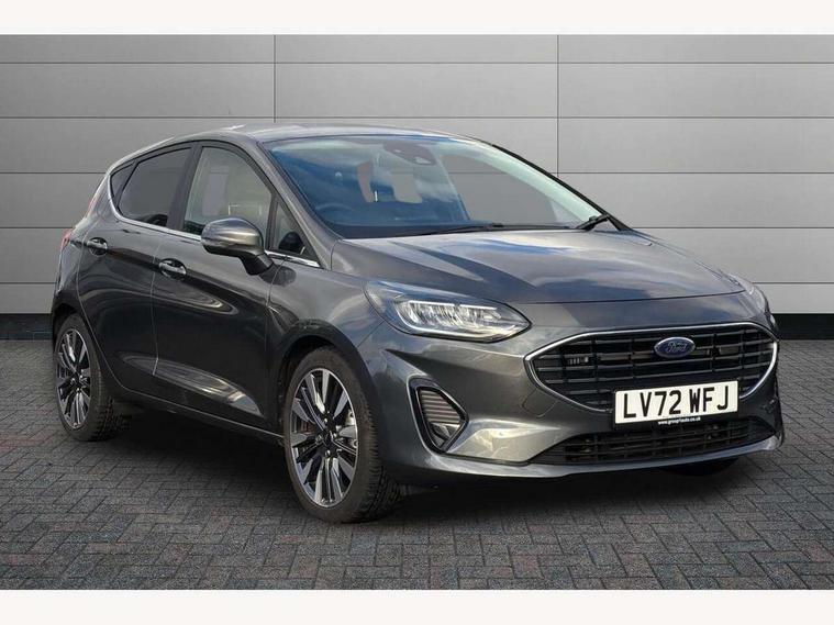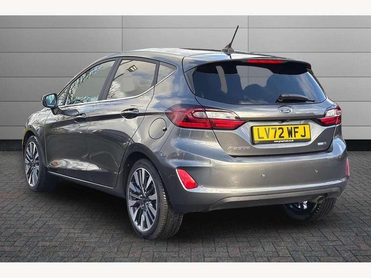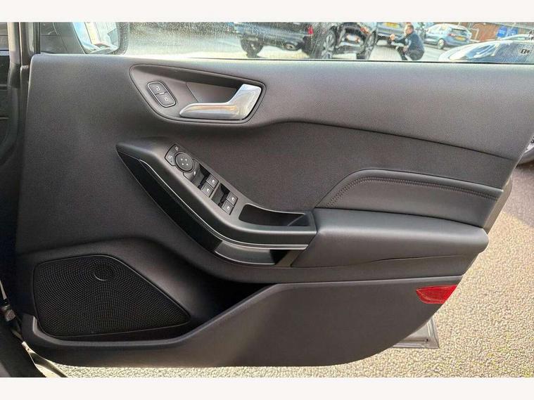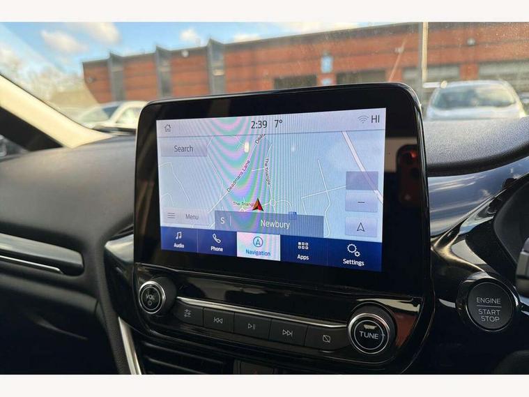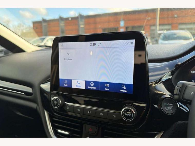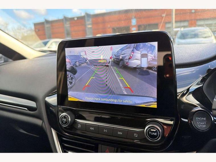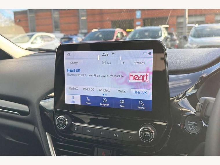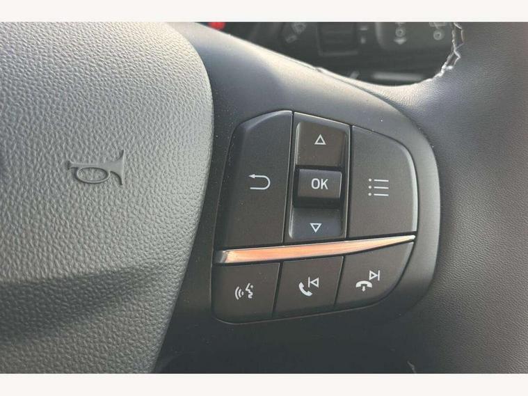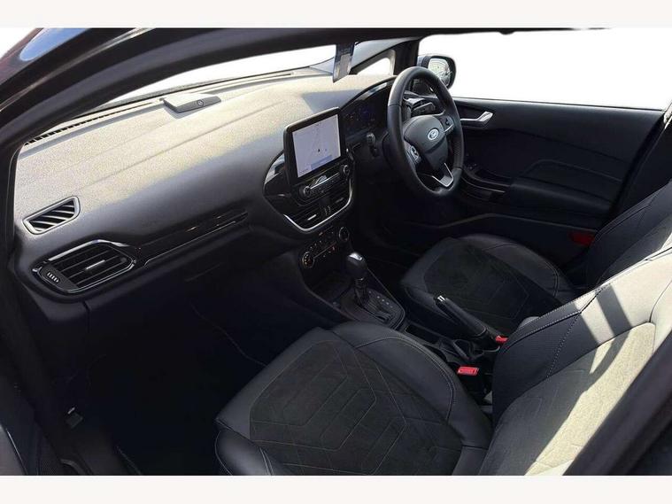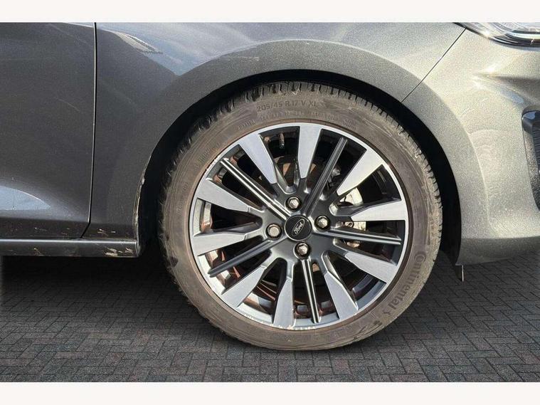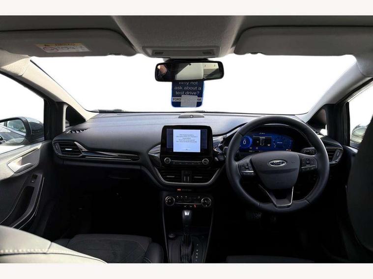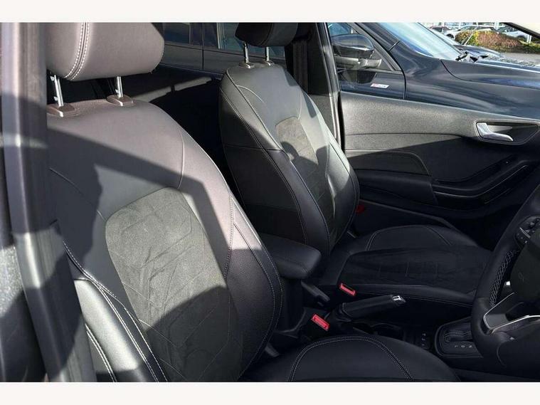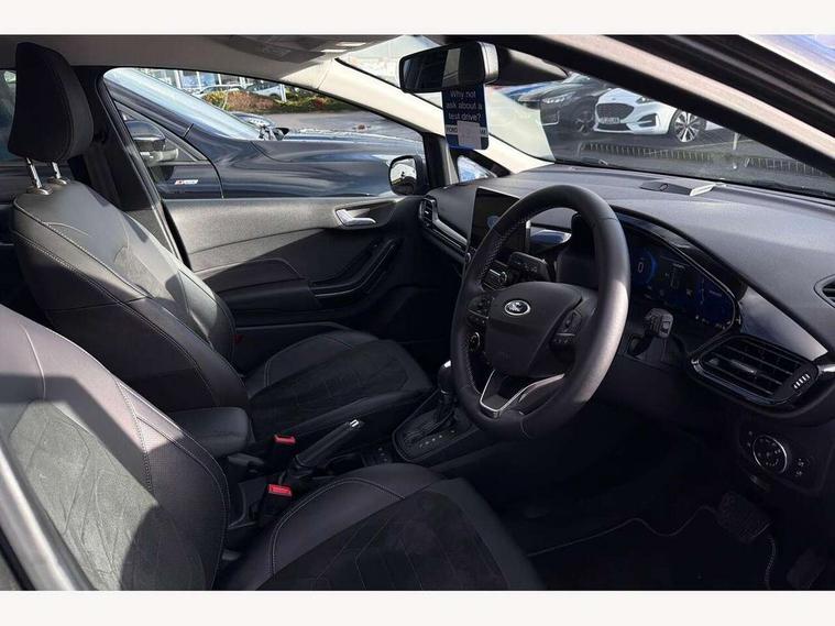 4.2" TFT instrument cluster screen, Bluetooth system, Electric power steering, Ford easy fuel, Rear parking distance sensors, Selectable drive modes (Normal, Sport, Track), Traffic sign recognition, Trip computer, 2 USB ports, Auxiliary input socket, B&O Premium audio system with 8" touchscreen, 10 speakers, 360 degree sound system, Ford SYNC 3 navigation system and Ford pass connect, DAB Digital radio, Steering wheel mounted controls, Auto high beam, Body colour bumpers, Body colour door handles, Body colour rear spoiler, Body coloured electrically operated and heated door mirrors with side indicators, Chrome beltline trim, Chrome front grille, Chrome lower window surround, Cornering front fog lights, Electric front windows/one touch facility, Electric rear windows, LED Night signature to rear lights, Power foldable door mirrors with puddle lights, Quickclear heated windscreen, Rain sensing wipers and auto dimming rear view mirror, Rear privacy glass, Rear wiper, 3 spoke leather trimmed steering wheel with audio control, 60/40 split folding rear seat, Adjustable head restraints, Boot carpet, Centre console with opening armrest, 2x cupholders, 12v and USB, Chrome inner door handles, Drivers and Passenger lumbar support, EATC - Electronic Auto Temperature control, Footwell illumination, Front floor mats in velour, Front map reading lights, Front seat and rear pockets, Height adjustable passenger seat, Illuminated glovebox, Leather gear knob, LED ambient lighting, Load area light, Luxury woven headliner, Manual 4-way driver seat adjust, Overhead console with sunglasses holder, Pollen filter, Rake/reach adjustable steering wheel, Sensico partial premium upholstery, Sensico wrapped steering wheel, NCAP Pack - Fiesta, 3 point seatbelts on all rear seats, ABS+EBA, Curtain airbags, Driver and passenger airbags, Drivers knee airbag, Electronic stability control with hill start assist, Front passenger airbag deactivation, Front side airbags, Seatbelt warning, Two tone horn, Tyre pressure monitoring system, Ford keyfree system with Keyless entry and keyless start, MyKey system, Remote central locking & engine immobiliser, Thatcham Cat.1 alarm, 17" 8 spoke alloy wheels,