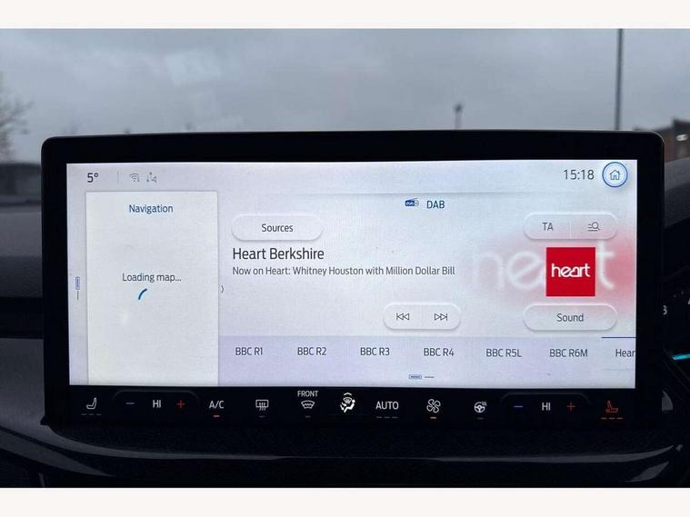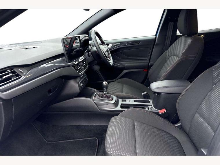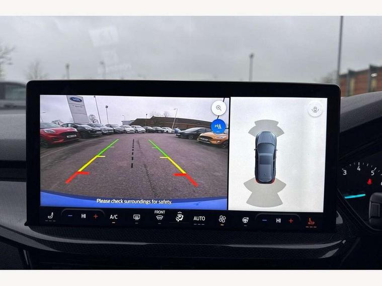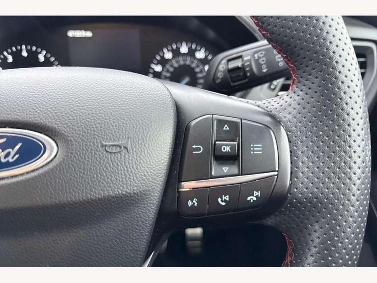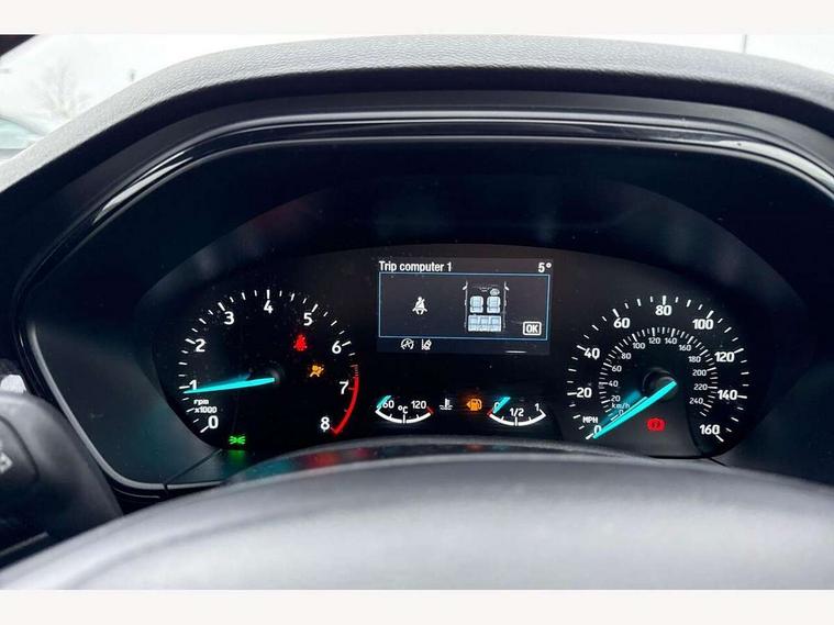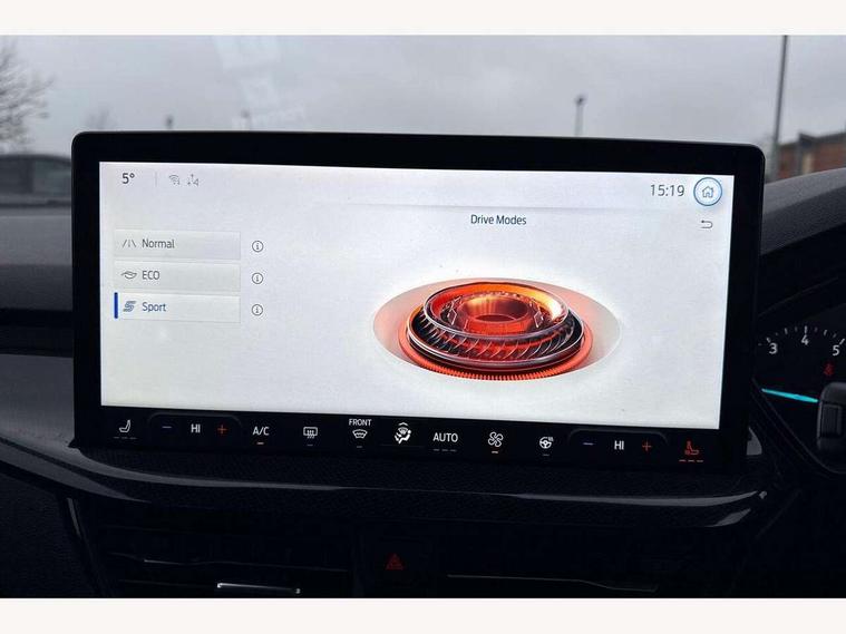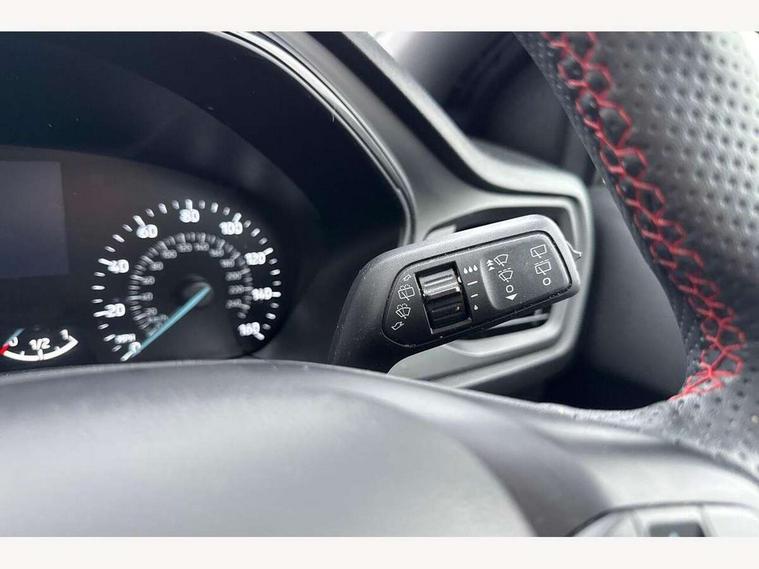 4.2" Colour TFT Ice blue illumination analogue cluster with trip computer, Bluetooth system, Digital clock, Easy fuel capless refuelling system, Eco mode, Ford SYNC 4 Navigation with 13.2'' touchscreen, DAB radio, Emergency Assistance, Apple Carplay & Android Auto, 6 speakers & FordPass Connect, Lane keeping system - lane keeping alert and lane keeping aid, PAS, Rev counter, Selectable drive mode, Service interval indicator, Sports tuned suspension, 2 USB ports, Auto headlamps (on/off), Body coloured door handles, Electrically operated front and rear windows with one touch opening and closing, Electrically operated heated power fold door mirrors with puddle lamp with side indicators, Front variable intermittent wipers with electric wash, Full fixed LED headlamps, Heated rear window, LED daytime running lamp, LED rear lamps, LED third brake light, Polished twin tailpipe, Privacy glass, Quickclear heated windscreen, Rain sensor, Rear side wing doors, Tailgate wash/wipe, Unique ST-Line grille, full bodystyling kit, and large body coloured rear spoiler, 3 rear headrests, 3 seat bench in 2nd row, Cloth upholstery, Dual zone electronic air temperature control, Height adjustable front headrests, Isofix child seat preparation, Reach + rake adjustable steering column, Single front passenger seat, 3x3 point rear seatbelts, ABS+Electronic Brake force Distribution, Auto hold function, Driver airbag, EDL traction control, Electronic parking brake, Electronic stability control, Front and rear seatbelt reminder, Front inertia reel height adjustable seatbelts with pre-tensioners, Front passenger airbag, Front side airbags, Passenger airbag deactivate switch, Post collision braking, Pre collision assist with autonomous emergency braking and pedestrian/cyclist detection, Remote/power child rear door locks, Side curtain airbags, Three rear inertia reel lap/diagonal seatbelts, Tyre pressure monitoring system, Keyless entry and keyless start, MyKey system, Remote central locking & engine immobiliser, Thatcham alarm with power door dead locks, 17" 5 spoke Rock mettalic finish alloy wheels with mini spare wheel,