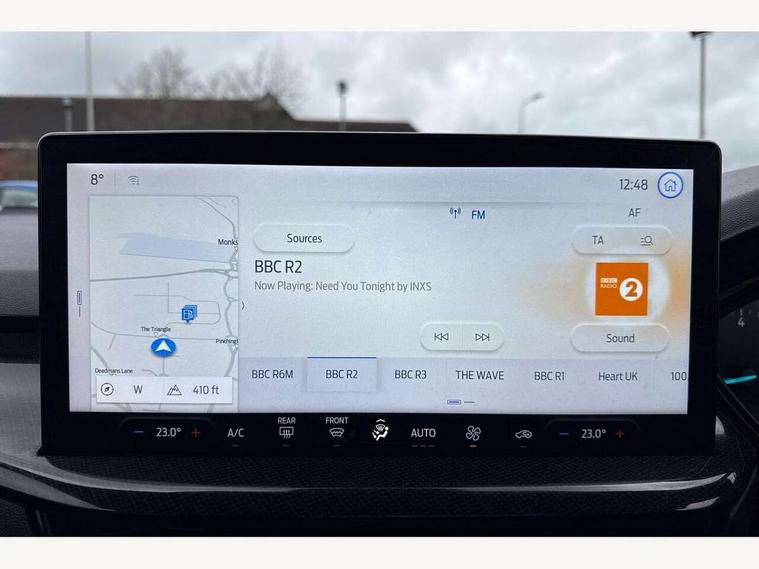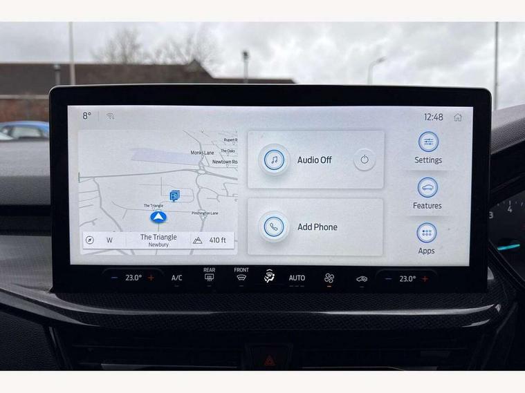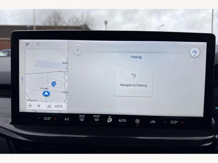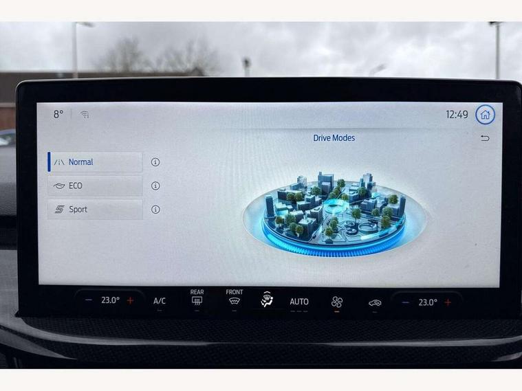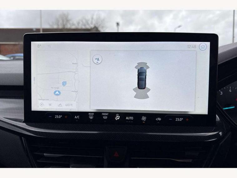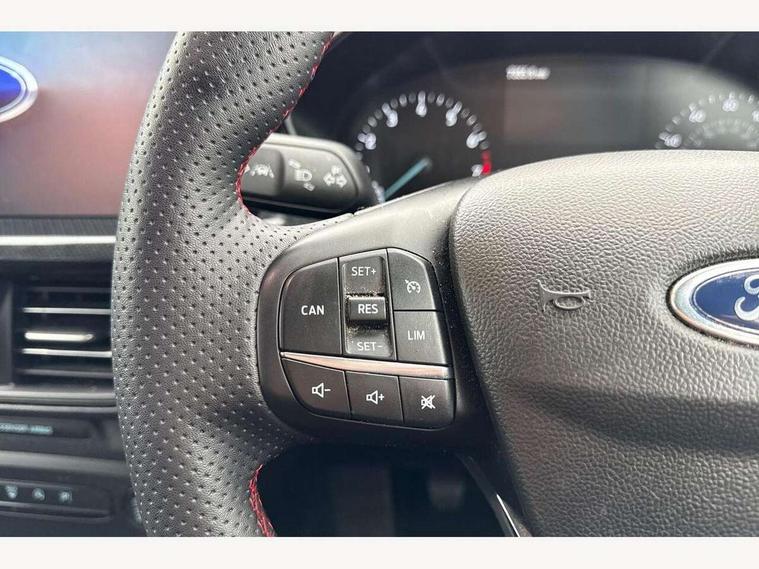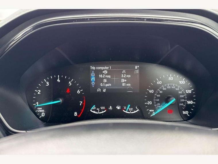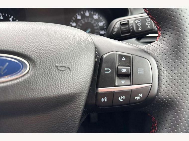 4.2" Colour TFT Ice blue illumination analogue cluster with trip computer, Bluetooth system, Digital clock, Easy fuel capless refuelling system, Eco mode, Ford SYNC 4 Navigation with 13.2'' touchscreen, DAB radio, Emergency Assistance, Apple Carplay & Android Auto, 6 speakers & FordPass Connect, Lane keeping system - lane keeping alert and lane keeping aid, PAS, Rev counter, Selectable drive mode, Service interval indicator, Sports tuned suspension, 2 USB ports, Auto headlamps (on/off), Body coloured door handles, Electrically operated front and rear windows with one touch opening and closing, Electrically operated heated power fold door mirrors with puddle lamp with side indicators, Front variable intermittent wipers with electric wash, Full fixed LED headlamps, Heated rear window, LED daytime running lamp, LED rear lamps, LED third brake light, Polished twin tailpipe, Privacy glass, Quickclear heated windscreen, Rain sensor, Rear side wing doors, Tailgate wash/wipe, Unique ST-Line grille, full bodystyling kit, and large body coloured rear spoiler, 3 rear headrests, 3 seat bench in 2nd row, Cloth upholstery, Dual zone electronic air temperature control, Height adjustable front headrests, Isofix child seat preparation, Reach + rake adjustable steering column, Single front passenger seat, 3x3 point rear seatbelts, ABS+Electronic Brake force Distribution, Auto hold function, Driver airbag, EDL traction control, Electronic parking brake, Electronic stability control, Front and rear seatbelt reminder, Front inertia reel height adjustable seatbelts with pre-tensioners, Front passenger airbag, Front side airbags, Passenger airbag deactivate switch, Post collision braking, Pre collision assist with autonomous emergency braking and pedestrian/cyclist detection, Remote/power child rear door locks, Side curtain airbags, Three rear inertia reel lap/diagonal seatbelts, Tyre pressure monitoring system, Keyless entry and keyless start, MyKey system, Remote central locking & engine immobiliser, Thatcham alarm with power door dead locks, 17" 5 spoke Rock mettalic finish alloy wheels with mini spare wheel,