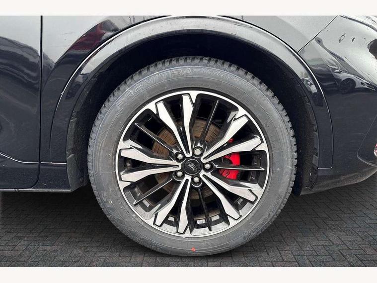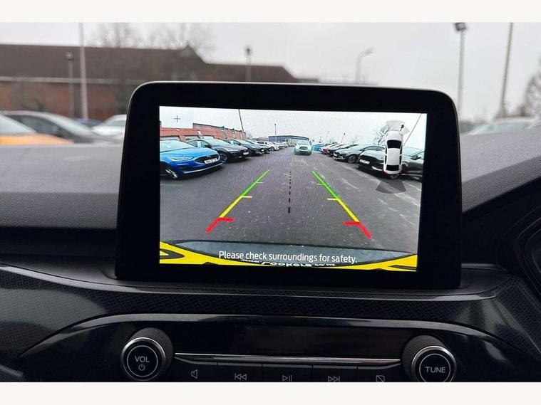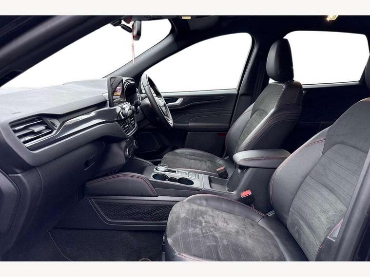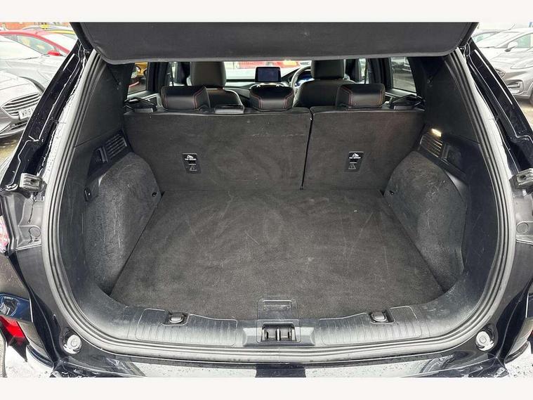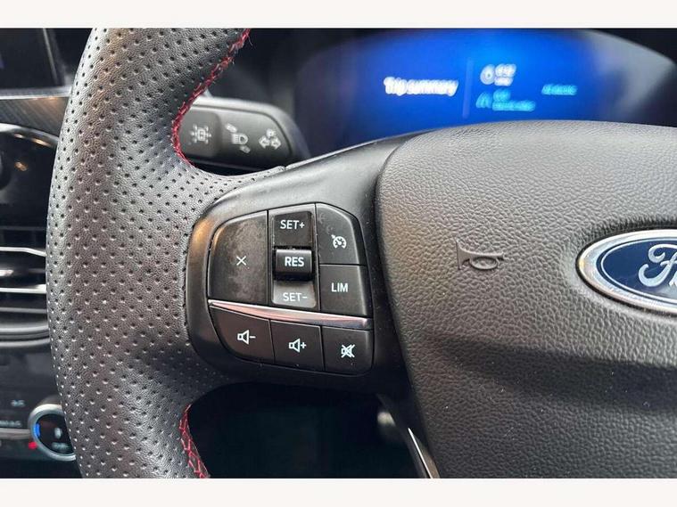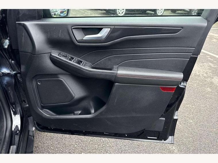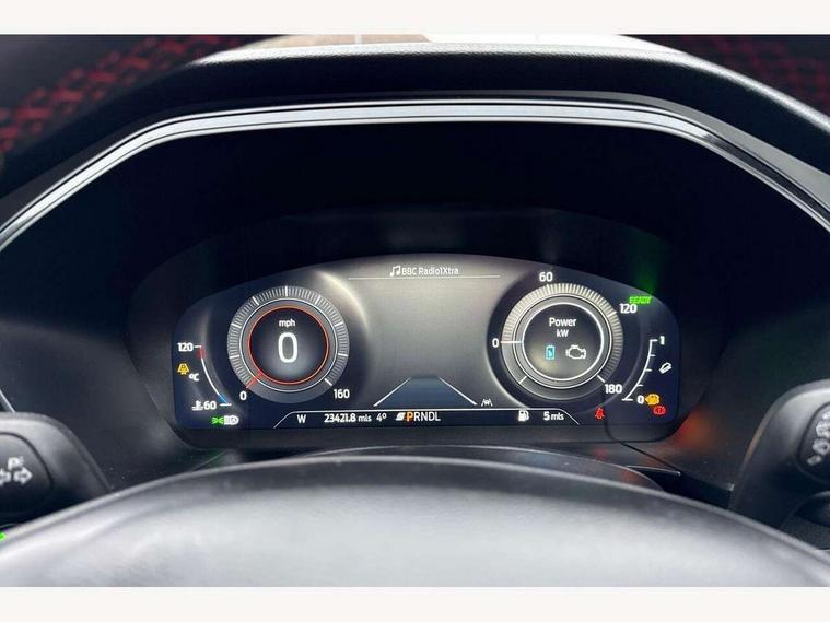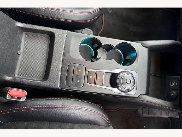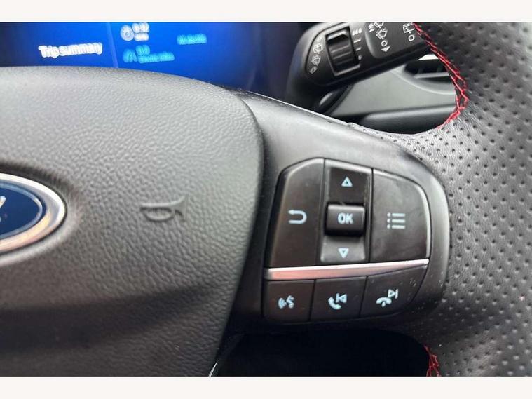 12.3" digital colour instrument cluster, Ford easy fuel, Ford SYNC 3 with 8" TFT LCD touchscreen, App Link, andriod auto/apple carPlay, emergency assistance and navigation with Ford pass connect, Front and rear parking sensors, Hands free power tailgate, Lane keeping aid with lane departure warning, Power assist steering, Rear view camera, Selectable drive modes, Service interval indicator, Sports suspension, Twist beam rear suspension, B&O premium audio system with 10 speakers and subwoofer, 2 USB ports, DAB radio/CD, Auto headlamps with high and low beam, Black roof rails, Day/night rear view mirror, Front LED fog lamps, Large rear spoiler, LED daytime running lights, LED rear lights, Power folding heated door mirrors with puddle lights, Power front/rear windows with global close, Power opening panoramic roof, Privacy glass, Quickclear heated windscreen, Rear side wing doors, Rear wiper, ST Line body styling kit with unique front and rear fascia and bumper, rear painted diffuser, front painted skid plates, dark mesh upper grille, ST Line front scuff plates, Third brake light, Twin exhausts, 10 way power adjustable drivers seat, 2nd row sliding seats with 60:40 split, 8 way manual passenger seat including lumbar support and height adjust, Alloy pedals, Centre console with electronic parking brake, Dark headlining and pillars, Electronic automatic temperature control (EATC), Flat bottomed leather steering wheel in sensico with red stitching, Front and rear head restraints, Heated passenger and driver seats, Heated rear seats, Heated steering wheel, Partial premium touch sensico leather upholstery with black cloth inserts and red stitching, Rear charging point, Single front passenger seat, Sports seats, ST Line front and rear floor mats, 3x3 point rear seatbelts, Airbags - front driver/passenger, front and rear curtain, Drivers knee airbag, Electronic stability control (ESC) and ABS, Ford MyKey Gen 2 safety system, Manual child proof rear door locks, Post collision braking, Pre collision assist with autonomous emergency braking, Rear seat Occupancy alert, Red brake calipers, Tyre pressure monitoring system, Engine immobiliser, Keyless entry and Ford power start button (Keyless start), Locking wheel nuts, Remote powered central double locking doors, Thatcham category 1 alarm,