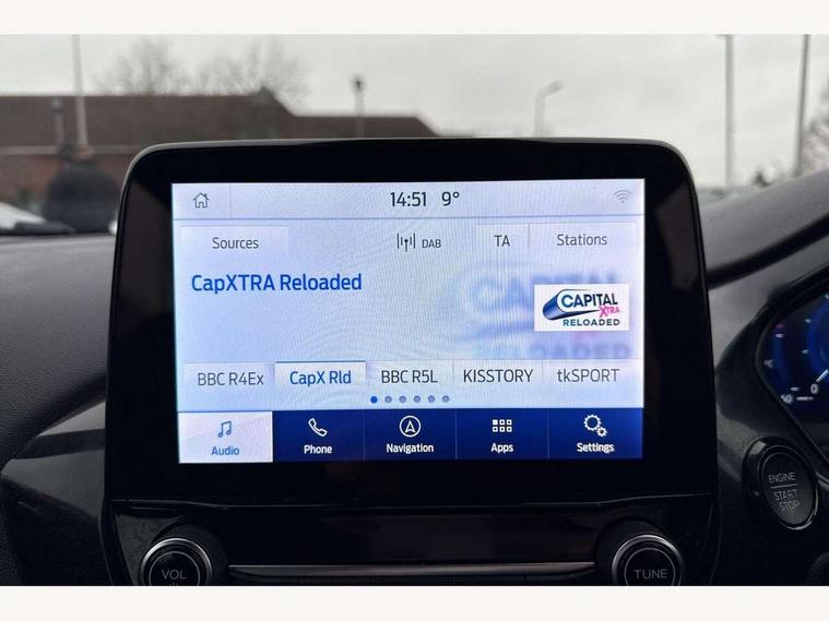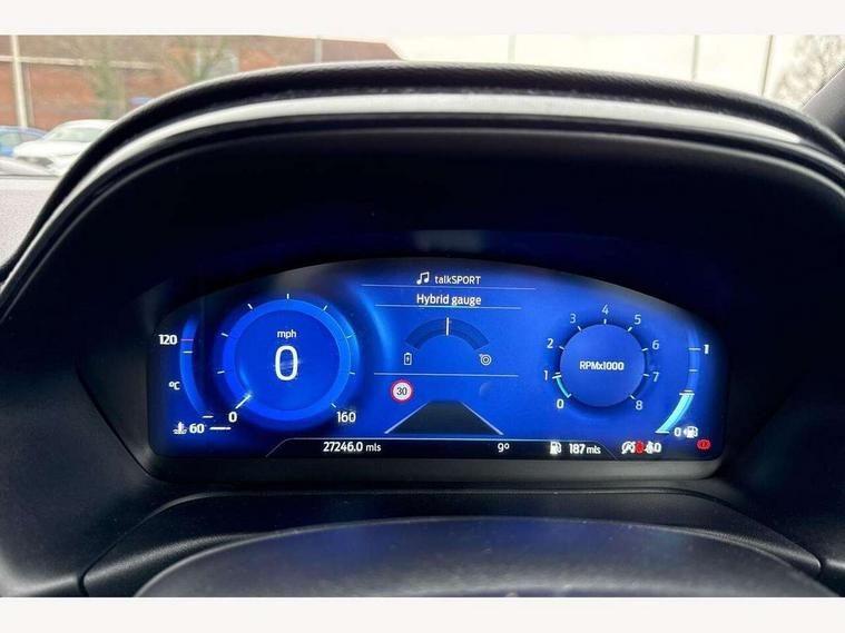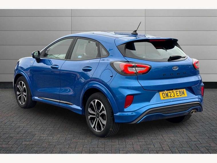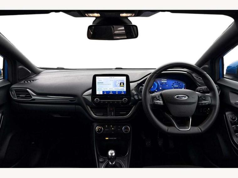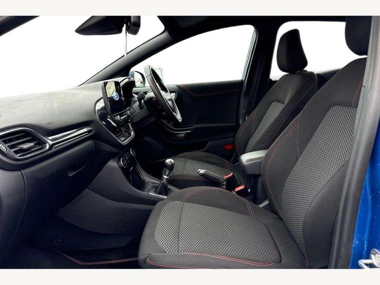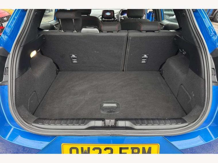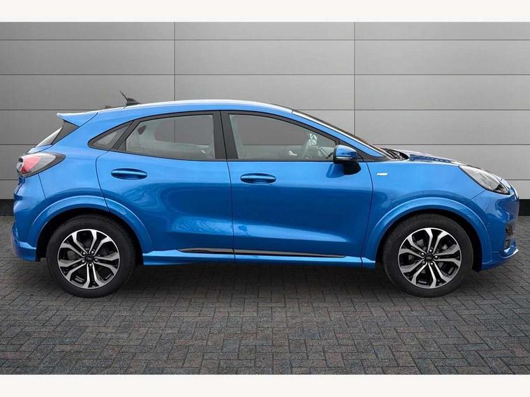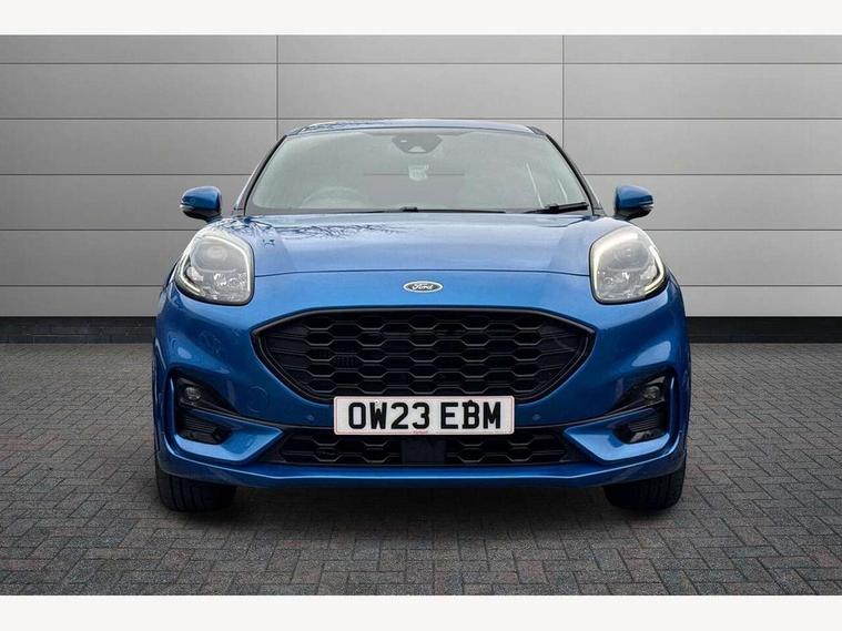 Driver impairment monitor, Emergency call service, Ford easy fuel, Full digital 12.3" instrument cluster, Lane keeping aid with lane departure warning, Power assist steering, Power start button, Rear parking sensor, Selectable drive modes(Normal, Eco, Sport, Slippery and Trail), Speed sign recognition, Sport suspension, Automatic headlights with auto high beam, Automatic rain sensing wipers, LED rear lamps, Power foldable heated door mirrors with puddle lamps, Projector headlamps with LED day time running lights and front fog lamps, Quickclear heated windscreen, Rear side wing doors, Rear wiper, ST-Line body styling kit with unique grille and large body colour rear spoiler, Third brake light, 3 seat bench in 2nd row, Centre console with armrest and stowage, Ford megabox extended bootspace, Front and rear head restraints, Front floor mats, Manual 2 way passenger seat adjustment, Manual 4 way driver seat adjust with lumbar adjustment, Single front passenger seat, ST- Line cloth trim with red stitching, ST-Line flat bottomed sensico leather steering wheel with leather handbrake and aluminium gear knob, Ford SYNC 3 navigation pack - Puma, 3 rear seatbelts, Child safety lock, Electronic stability control (ESC) and hill start assist, Pedestrian/cyclist detection & post-collision braking, Pre collision assist system, Tyre pressure monitoring system (TPMS), Thatcham alarm,