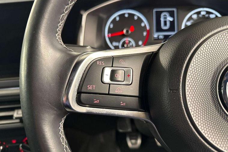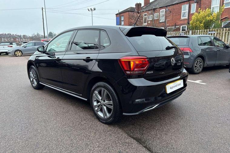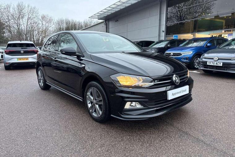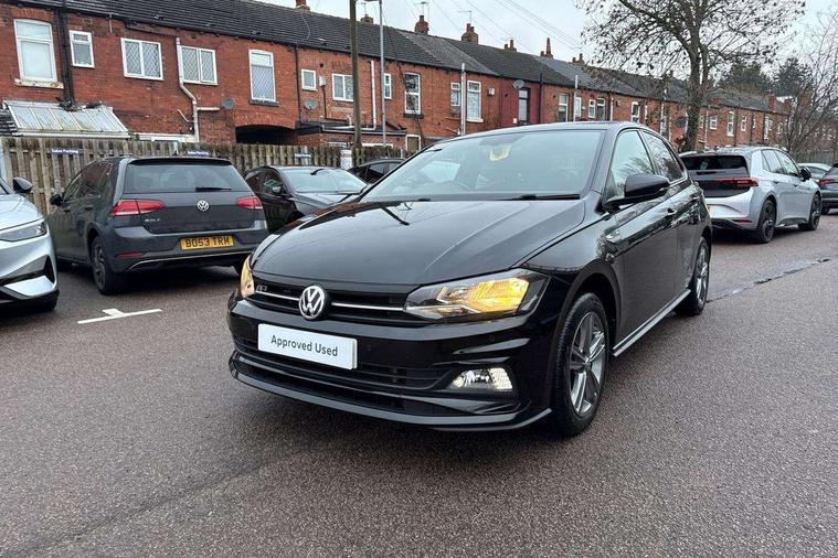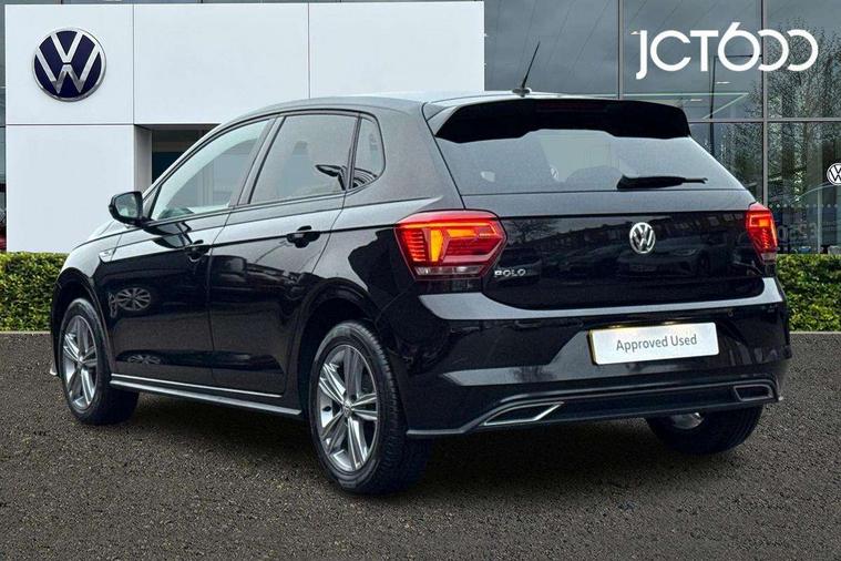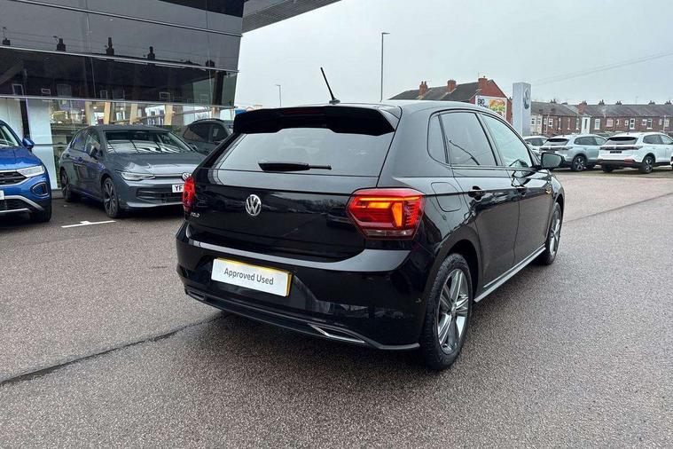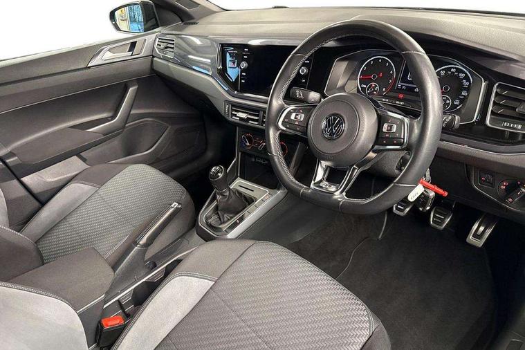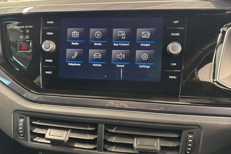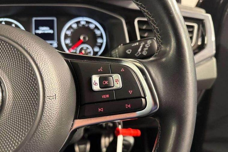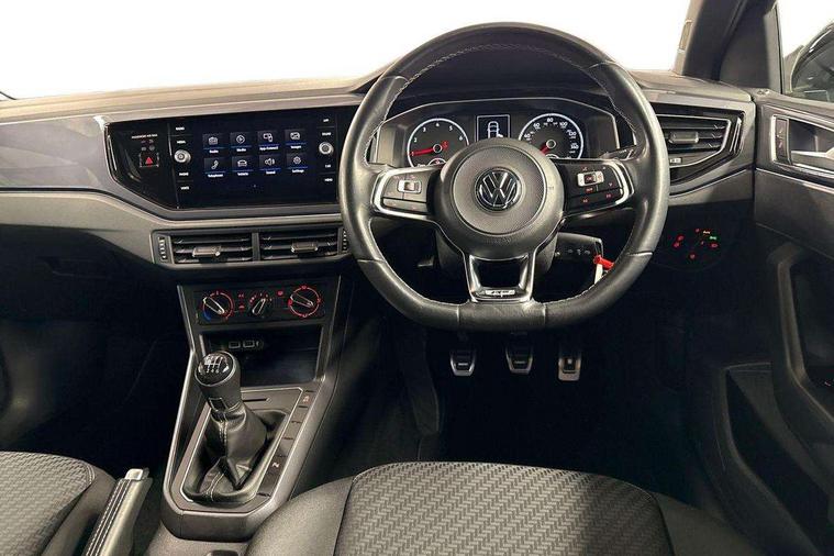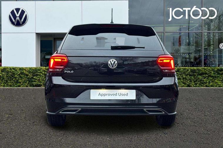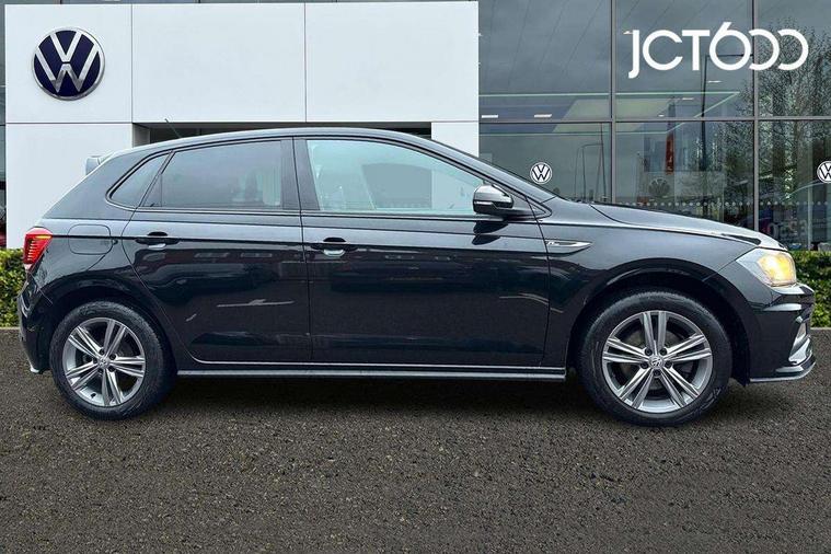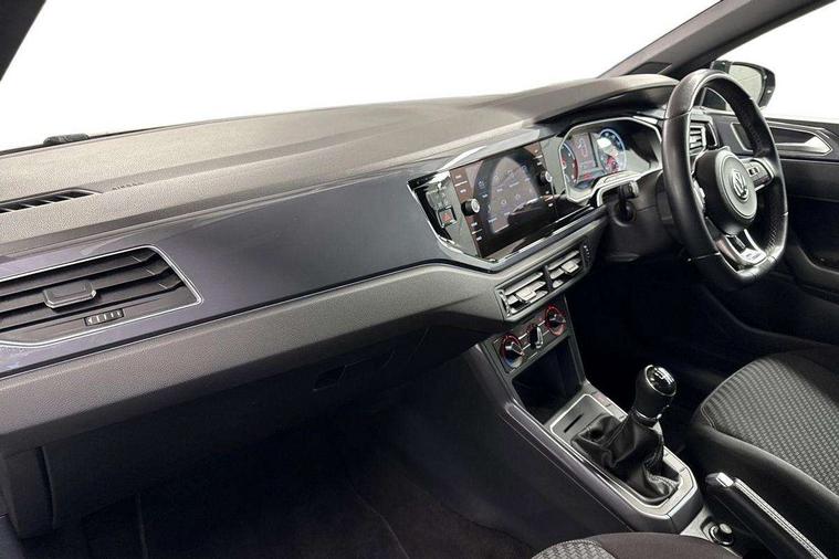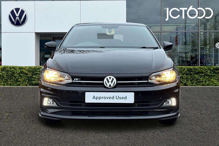 App-Connect, Digital clock, Driver alert system, Multifunction computer plus, Power assisted speed sensitive steering, Speedo and rev counter, electronic odometer, trip, service interval display and fuel gauge, Start/stop system, Volkswagen connect, Warning buzzer and light for front seatbelts unfastened, Battery regeneration during braking, Galvanished body, Black grille with chrome surround, Body colour door handles, Body coloured side sills, Chrome trimmed strip on lower bumper, Electric front windows, Electrically foldable, adjustable and heated door mirrors with reverse activated kerb view adjustment on passenger's side, Front fog lights including static cornering, Front windscreen washers and wipers with 4 speed intermittent delay, Heat insulating tinted glass, Heated rear window with auto timer, High level 3rd brake light, LED darkened rear light clusters, LED daytime running lights, LED rear number plate lights, Left and right chrome effect trapezoid fascia exhaust tailpipe surrounds, Rear diffuser, Rear electric windows, Rear windscreen washer and wiper with interval delay, reverse activated, Unique R Line badging, 2 bag hooks in luggage compartment, 2 front cupholders and 12 V socket with cover, 3 rear head restraints, 60/40 split folding rear seat, Ambient lighting in front foorwell, front/rear door and dashboard light strips, Carbon flag cloth upholstery, Centre console storage with open storage compartment, Chrome-plated electric mirror adjustment switch surround, Chrome-plated electric window button surround, Driver and front passenger seat height adjustment, Driver and front passenger sunvisors with illuminated vanity mirrors, Dust/pollen filter, Folding rear seat backrest, Front + rear carpet mats, Front centre armrest with storage compartment, Front seat backrest storage pockets, Front sport seats with lumbar adjustment and R line logo on seat backrest, Gear lever gaiter in black trim surround, Glovebox, Handbrake grip button in chrome effect, Height/reach adjustable steering column, Instrument lighting, adjustable panel illumination, Interior light with delay, Isofix Preparation 2 Rear child seats, Jack and tool kit, Leather gear knob and handbrake grip, LED interior lighting - 2 reading lights front and rear with interior delay and dimming function, Luggage compartment cover, removable, Luggage compartment lighting, Luggage compartment with variable load floor, Stainless steel pedals, Storage compartment in front doors, Storage compartment in rear doors, Storage compartment under front seats, Three spoke leather trimmed multifunction steering wheel with aluminium inserts and R Line Logo, Titanium black roof lining and sun visors, Unique R Line door sill protectors, Light and sight pack - Polo, R Line styling pack - Polo, 3 point height adj front seatbelts + pretensioners, 3x3 point rear seatbelts, ABS, Automatic post collision braking, Driver/front passenger airbag, Drivers and front passengers safety optimised head restraints, ESP with EDL + ASR, Front and rear passenger curtain airbags, Front passenger airbag deactivation, Front seat side impact airbags, Front/rear disc brakes, HBA (Hydraulic Brake Assist), Hill hold control, Single tone horn, Tyre pressure monitoring system, Alarm with interior protection and deactivation via infotainment system, Electronic engine immobiliser, Remote central locking with 2 remote folding keys, Chrome plated air vent surround, Chrome plated instrument surrounds, Shadow steel decorative inserts, Steel space saver spare wheel,