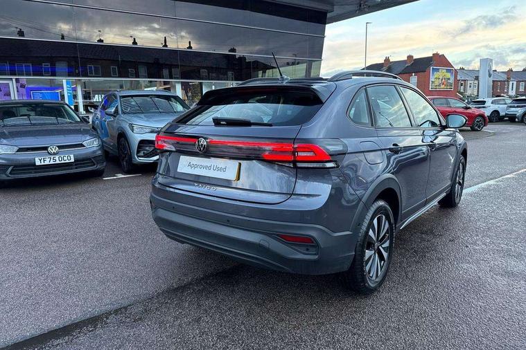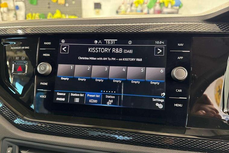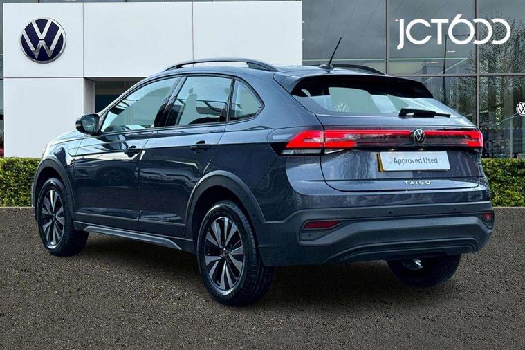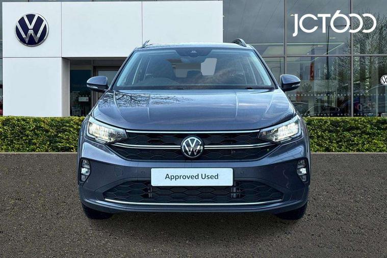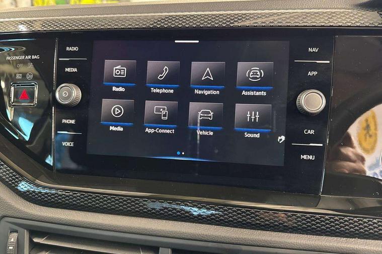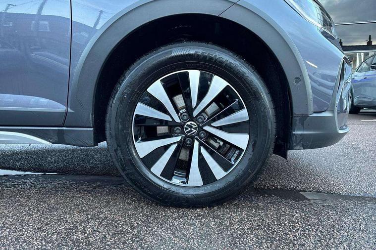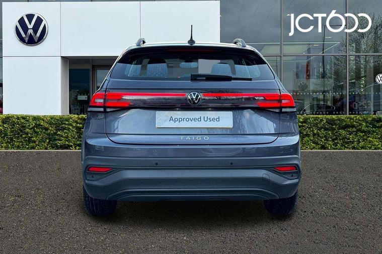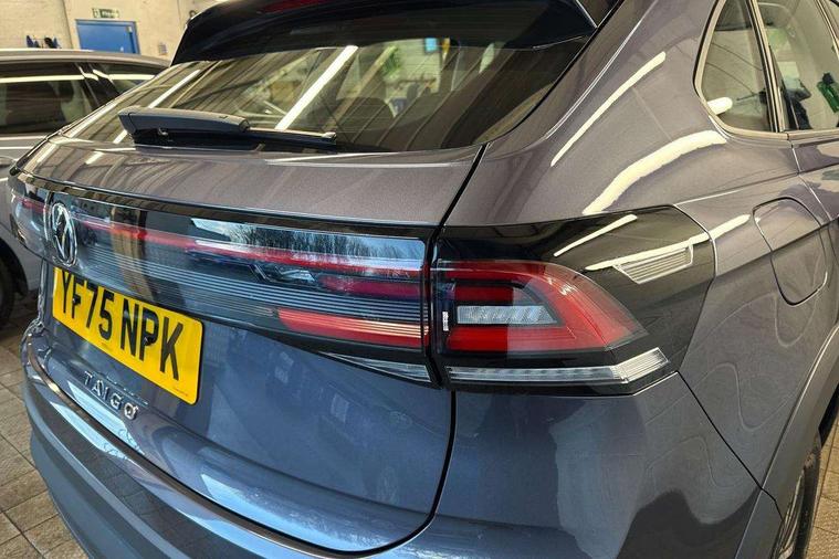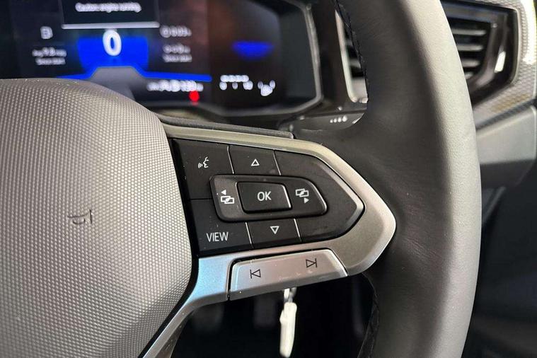 8" Digital cockpit basic display, Advanced driver attention and drowsiness monitor, Dynamic road sign display, e-Call (emergency call), Power Steering, Predictive adaptive cruise control, Travel assist including emergency assist, Washer fluid level indicator, Wireless Charging including Bluetooth, Start-stop system with battery regeneration (recuperation - energy recovery during braking), Digital radio reception (DAB+), WeConnect plus, Ambient lighting with logo projection, Aspherical driver's exterior mirror, Auto headlights, Body coloured bumpers, Body coloured exterior mirror housings and door handles, Electric windows, External USB type C socket and charging sockets, Heat insulating glass windscreen, LED rear combination lamp, LED third brake light, Left convex exterior mirror, Power folding adjustable/heated exterior mirrors and front passenger exterior mirror lowering function, Rear fog light on one side, reversing light on both sides, Rear side wing doors, Rear wash/wipe with intermittent wipe setting, 'Slash/ Austin' Cloth upholstery, 12V socket in centre console, 2 front reading lights, 3 rear head restraints, 3 seat bench in 2nd row, Black carpets, Child seat anchor for child seat system i-Size, 2x top tether and child seat anchor in front on front passenger side, Door and side trim panels in titan black, Driver and front passenger seat height adjustment, Front centre armrest, Handbrake lever handle in leather, Height and reach adjustable steering wheel, Leather trimmed gear knob, Leather wrapped multifunction steering wheel, Luggage compartment floor, Luggage compartment light, Lumbar support for driver's and front passengers seat, Seat covers in titanium black, Single front passenger seat, Split folding backrest with centre armrest and unsplit rear seat bench, Storage compartment under front seats, Sun visors with illuminated vanity mirrors, Chrome Package - Taigo, Drivers assistance pack - Taigo, Light and Sight pack including High beam assist - Taigo, 2 x 3-point seatbelts/outer rear seats with ECE label, 3-point seat belts in front with pretensioner and height adjustment, 3-point seatbelt for centre rear seat, Adaptive driver and front passenger airbags with passenger airbag deactivation function, Driver and front passenger airbags with front passenger airbag de-activation, front side and curtain airbags, Driver and front passenger safety-optimised head restraints, Electronic stability control, Extended and predictive pedestrian/ cyclist protection, Front and rear disc brakes, Front curtain and side airbags with center airbag, Hill start assist, Manual rear child locks, Single tone horn, Tyre pressure loss indicator, Anti-theft alarm system with interior monitoring, backup horn, and towing protection, Lava stone black gloss/matt decorative inserts in dash and front door panels, Low rolling resistance tyres,