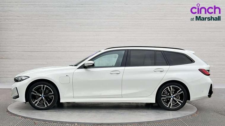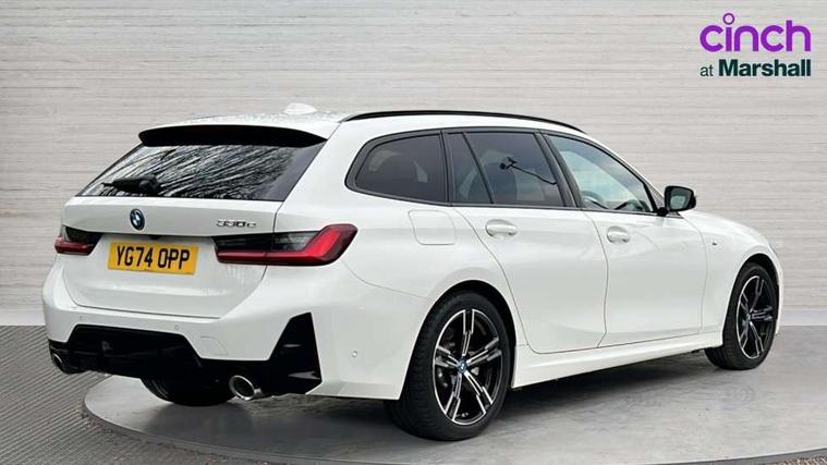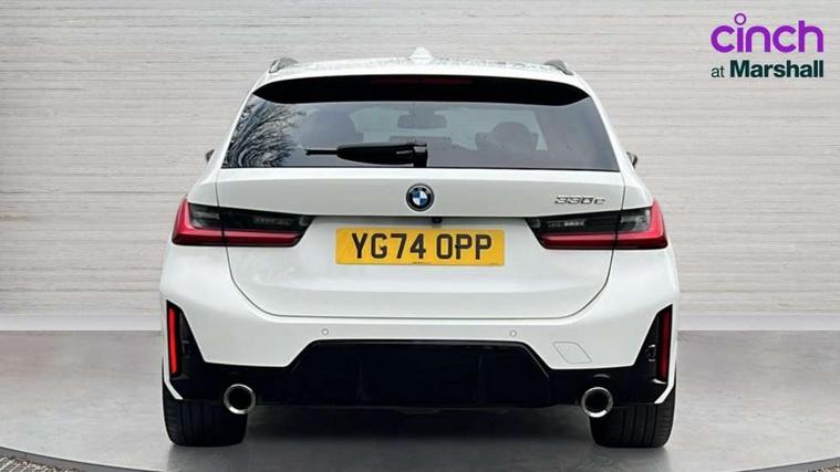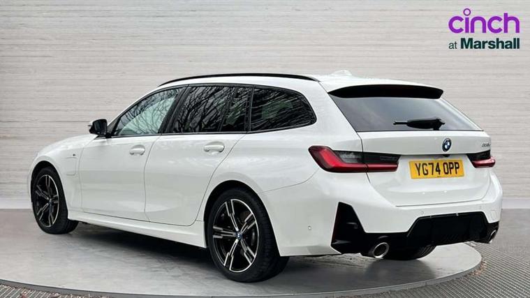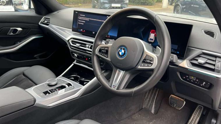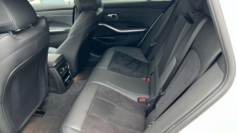 Active guard plus, Attentiveness assist, Automatic Start/stop button, BMW Iconic sounds electric, BMW iDrive, BMW Teleservices, Condition based service, ConnectedDrive Services, Driving experience switch, Live cockpit plus with Navigation + 12.3" instrument display + 14.9" display, Intelligent voice assist, 2 USB, 4G LTE connect, Oil sensor for level and grade, PAS, Preparation for driver assistance, Shifting point display, Double joint spring strut front axle, Fast charging cable - Mode 3, Fuel tank breather system, Sport automatic transmission with steering-wheel mounted gearshift paddles and launch control, Standard suspension, DAB tuner, 3rd brake light, Acoustic glazing, Automatic headlight beam throw control with load dependent regulating reaction, dynamic compensation of braking dive and acceleration squat, BMW emblem, engine compartment lid and tailgate, Body colour roof fin, Door sill strips, Electric windows - front and rear, with open/close fingertip control, anti-trap facility and comfort closing, Follow me home headlight function, Front and rear bumper system with replaceable deformation elements, Front apron plastic in body colour, Fuel filler flap - right rear in body colour, Heated washer jets, High gloss shadow line exterior trim, High gloss shadow line roof rails, Illuminated bow type door handles in body colour drivers side with door lock, Interior rear view electrochromatic mirror with automatic anti dazzle function, LED rear lights, Licence plate panel integrated into front bumper and tailgate, Matt black B-pillar finsher, Matt black window recess cover, Model designation on right side of tailgate, One piece front bumper cover including towing eye cover in body colour, Rain sensor with automatic headlight activation, Rear side wing doors, Rear wiper, Reversing lights, Side frame decorative moulding black matt, Visible exhaust tailpipe finisher, Welcome lights in interior and door handle area, 12V power socket in front storage compartment, 2 front cupholder in centre console with clamping elements and matt black inlay, 3 seat bench in 2nd row, 3 zone automatic air conditioning, 40:20:40 split folding rear seat with loading system, Ambient door handle light, Ambient light design projected onto the left and right entering and exiting area, Ambient lighting front and rear with 9 selectable colours, Ambient storage compartment lighting in the centre console, Anthracite headlining, Armrest integrated in front and rear door trim + front centre console armrest, Battery in luggage compartment, BMW ID, Contour lighting in instrument panel and door trim panel, Cruise control operation in steering wheel, Driver backrest width adjustment, Folding rear centre armrest with 2 cupholders, Front and rear ambient footwell lighting, Front and rear door exit lighting (left / right), Front and rear headrests, Front and rear reading lights, Front and rear velour floor mats, Front sport seats, Heated front seats, Height adjustable mechanically and infinitely variable steering column, Illuminated armrest storage compartment, Illuminated glove compartment, Illuminated luggage compartment, Lashing eyelets in luggage compartment, M Sport multifunction leather steering wheel, Make-up mirror lights, Single front passenger seat, Standard seat for driver and passenger with manual adjustment, Sunvisors with vanity mirrors and ticket pocket, Toolkit located in luggage compartment, Connected pack professional - 3 Series Saloon/Touring, Interior and exterior mirror pack - 3 Series Touring/Saloon, M Aerodynamics package - 3 Series Saloon/Touring, M sport exterior styling pack - 3 Series Saloon/Touring, Storage compartment pack - 3 Series Saloon/Touring, 3x3 point rear seatbelts, BMW emergency call, Child locks on rear doors, Crash sensor activating of airbags, Unlocking doors, hazard warning lights, fuel cut off, interior lighting+activation of safety battery terminal clamp, Driver and front passenger with seat occupancy detection for driver's and passenger side, Driver and passenger side airbags, body protection at side and airbags deploy from seat backrests, Dynamic brake control, Dynamic stability control + (DSC+) - Anti-lock Braking System (ABS) with brake assist and cornering brake control + Automatic Stability Control (ASC), Dynamic Traction Control - DTC, Electromechanical parking brake including automatic hold function and automatic release of the parking brake when pulling away, Electronic differential lock control (EDLC), Head airbags in 1st and 2nd row, head protection at side, curtain airbags open from headliner above 1st and 2nd row, Plastic fuel tank, Side impact protection, Tyre pressure monitoring with three level warning strategy, Ventilated front and rear disc brakes, Warning triangle and first aid kit, Alarm system, Centre lock switch, Closing system with central locking, Electronic vehicle immobiliser,