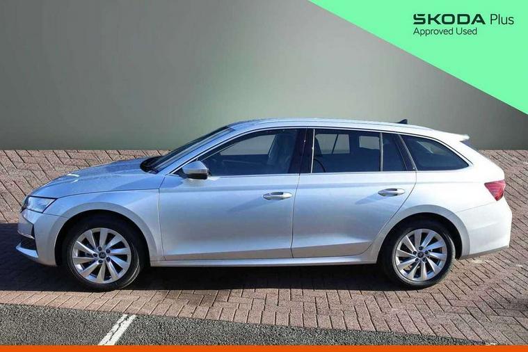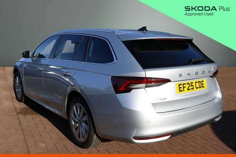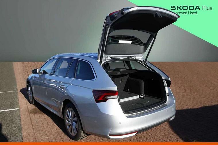 1x USB Typc C port in rear view mirror, 4x USB Type C ports - 2x in front centre console and 2x in rear (45W), Drive mode selection, Driver fatigue sensor, eCall emergency system, Electro-mechanical power steering, Front assist system, Traffic jam assist, Traffic sign recognition, Turn Assist, Virtual Cockpit - 10.25" digital display, Voice control system, Wireless charging (15W) with cooling function, Wireless SmartLink for Apple CarPlay and Android Auto, 13" touchscreen display with navigation, DAB Digital radio, Aero front windscreen wipers with intermittent function, Auto dimming rear view mirror, Body colour bumpers, Body colour door mirrors and handles, Chrome grille surround, Chrome roof rails, Chrome strip in lower front bumper, Chrome window surrounds, Electric front and rear windows, Heated rear windscreen, High level third brake light, Ice scraper in fuel cap, LED daytime running lights, LED Headlights, Logo projection in front doors, Rain and light sensors, Rear fog light on one side, Rear privacy glass, Rear side wing doors, Rear spoiler, Rear window wiper, 12 volt socket in boot, 3 rear headrests, 3 seat bench in 2nd row, 4 foldable roof handles, Front head restraints, Heated front seats, Illuminated glovebox, Interior door handles in dark chrome, Jumbo Box storage, Luggage compartment lighting x2 lights, Mechanical rear seat release from boot, Single front passenger seat, Steering wheel in black leather with black stitching, Storage compartments in left and right of boot, Sun visors with mirrors, Sunglasses storage, Ticket holder, Umbrella in door panel, Unsplit rear bench seat, split folding backrest with centre armrest with cupholder, Comfort package - Octavia Estate, Simply clever package premium - Octavia, 3x3 point rear seat belts, Alarm with interior monitoring, tilt sensor and back up horn, Curtain airbags and front side airbags, Driver and front passenger airbags, Drivers knee airbag, Electronic parking brake, ESC including ABS, EBV, MSR, ASR, EDS, HBA, DSR, Front central airbag, Hill hold assist, ISOFIX on front passenger seat and outer rear seats, Passenger airbag deactivate switch, Three point seat belts in front and rear, Two tone horn, Tyre pressure monitor, Visual and acoustic seat belt reminder, Warning reflectors in front door, Anti-theft wheel bolts, Keyless start/stop, Remote central locking, Chrome air vent surrounds,