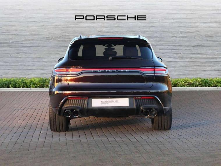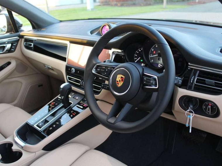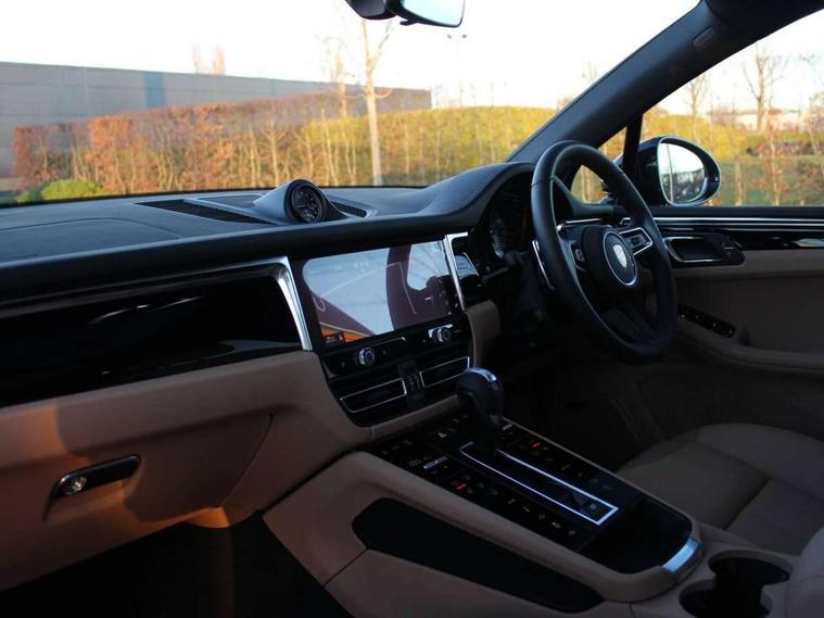 Analogue clock on dashboard, Automatic start/stop system, Automatic tailgate, Cruise control + speed limiter, Digital boost pressure gauge on colour display of instrument cluster, eCall emergency call system, Instrument cluster with high resolution 4.8-inch TFT display, gear indicator for PDK, service interval display, external temperature indicator, fuel gauge, Off-road button, On board computer, Porsche Communication Management (PCM) including online navigation module, mobile phone preparation, audio interfaces and voice control system, Sports button in centre console, 7-Speed Porsche Doppelkupplung (PDK) with automatic mode and manual controls (gearshift paddles) on steering wheel, Direct fuel injection (DFI), Gasoline particulate filter, VarioCam Plus variable valve timing and switchable valve lift, 2 USB sockets in rear centre console, Apple CarPlay with Siri voice recognition, Connect Plus including online navigation, LTE communication module with SIM card reader, wireless internet access, Porsche Car Connect services, DAB Digital radio, Porsche Vehicle Traking System Plus (PVTS Plus), Smartphone compartment with wireless charging, Two USB C charging and connectivity ports in the front centre console storage compartment, Active radiator grille shutters, Automatic headlight activation including welcome home lighting, Bumper system with high strength cross members and two deformation elements + One threaded fixture point for towing eye contained in onboard tool kit, Dynamic cornering lights, speed-sensitive headlight and dynamic range control, adverse weather function, four-point LED daytime running lights, Electric front and rear windows with remote closing function + anti trap + one touch, Electrically folding and heated exterior mirrors, Front light modules with LED position lights and direction indicators, Front windscreen wipers with two speeds, intermittent wipe and rain sensor, Front with integrated cooling air intakes, Fully galvanised body, Heated rear window with automatic switch off, High level 3rd LED brake light integrated into roof spoiler, Loading edge protection in aluminium, Rear side wing doors, Rear window wiper with intermittent function and washer jet, Roof spoiler in high gloss black, Towbar preparation, 3 adjustable rear headrests, 3 rear seats, 3 zone auto climate control separate temperature setting+air recirculation include quality sensor, airflow regulation+AC MAX button+humidity sensor, 4 way adjustable front head restraints, 40:20:40 split folding rear bench seat, Cloth hook b-pillar, Fold up centre console armrest with fore/aft adjustment, Front and rear bottle holders in door panels, Front passenger seat, Glove compartment, Isofix fastening system for child seats on outer rear seats, Luggage compartment cover, Particle/pollen filter with active carbon filter, Rear armrest with 2 cupholders, Storage bin in centre console, Storage compartment in side of luggage compartment and storage compartment in spare wheel recess, Storage pocket in front and rear doors, Two integrated cup holders in front with variable diameter, Two socket 12V power outlets in front console and luggage compartment, Uncovered storage compartment in centre console, Ambient comfort lighting pack - Macan, Lower exterior trim package in black - Macan, 3-point automatic seatbelts with front and outer rear seats pretensioners and force limiter + manually height adjustable seatbelt + reminder warning, 6-piston aluminium monobloc fixed caliper brakes at front, internally vented brake discs, Auto hold function, Brake discs with 360 mm diameter at front and 330 mm at rear, Child locks on rear doors, Curtain airbags along entire roof frame and side windows from A pillar to the C pillar, Electronic parking brake, Front passenger airbag deactivation facility for installation of child seats indicator in overhead console, Front side airbags integrated into seat, Full size driver and passenger airbags, Multi-Collision braking, Porsche hill control (PHC), PTM(Porsche Traction Management) and All-wheel drive with map-controlled multi-plate clutch, Roll over sensor for curtain airbag and seatbelt pretensioners, Side impact protection in doors, Tyre pressure monitoring system, Vehicle stability system, Porsche stability management (PSM) including ABS, ASR, ABD, MSR and trailer stability management, Vented discs brake with combination floating calipers at rear, Alarm system with ultrasonic interior surveillance, Dashcam prep, Engine immobiliser with key transponder, Remote control central locking, Accent trims with silver coloured finish,