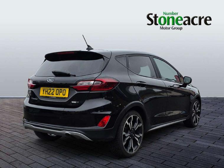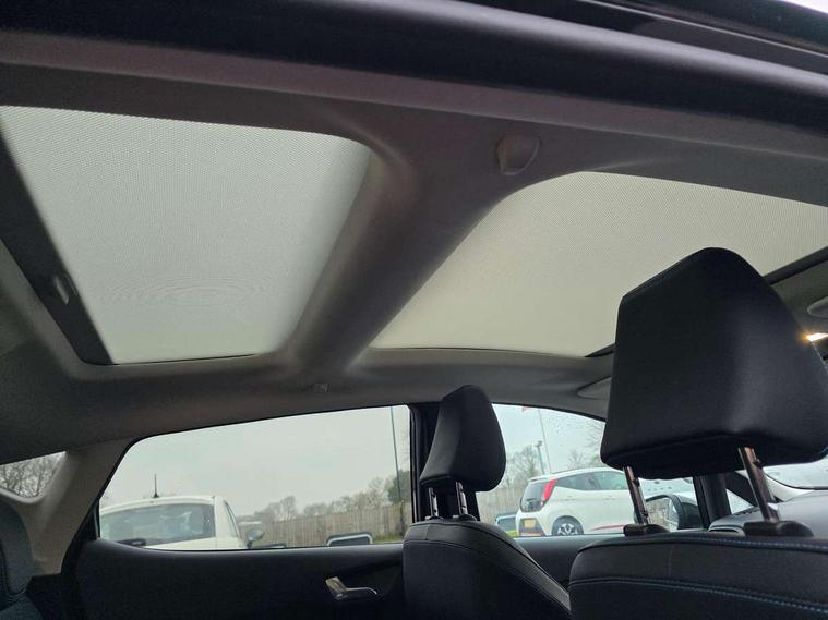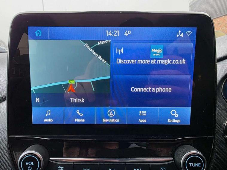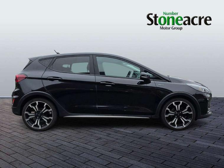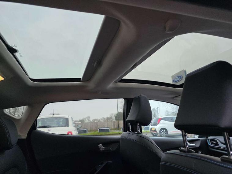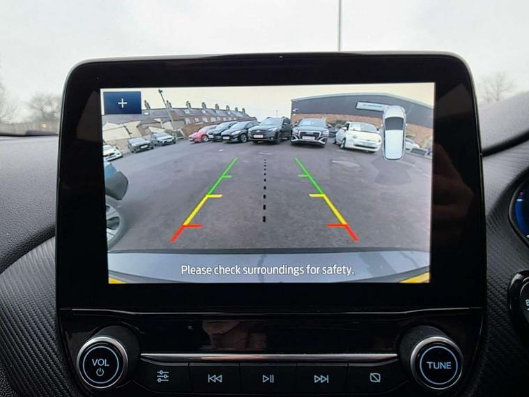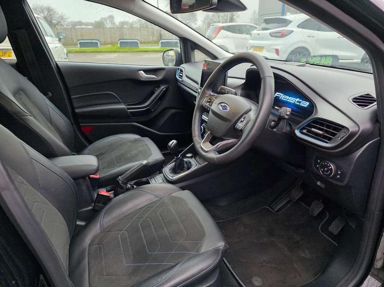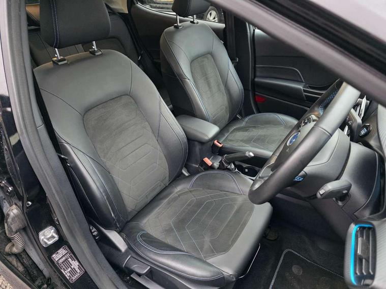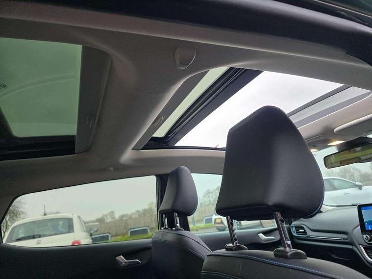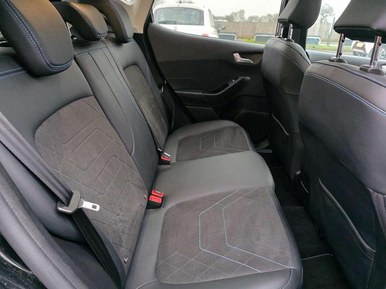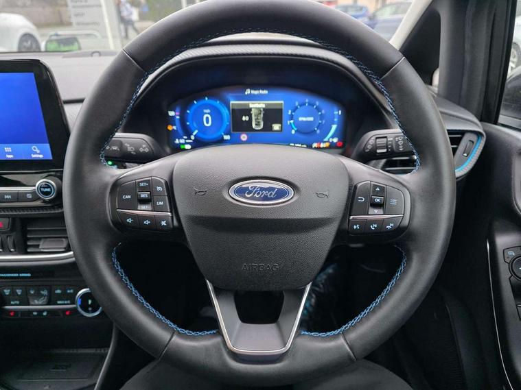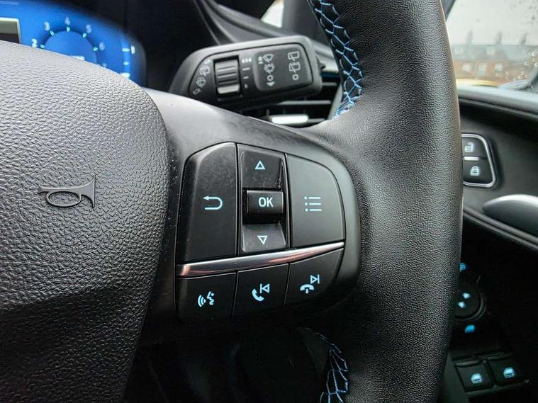 12.3" Full digital cluster, Driver alert system, Electric power steering, Extra selectable drive modes ( Trail, Slippery), Ford easy fuel, Ford SYNC 3 Nav with DAB radio, 8" touch screen, voice control, emergency assist, Apple CarPlay/Android auto, 2x USB, 6 speaker, Ford pass connect, Rear parking distance sensors, Rear view camera, Speed sign recognition, Trip computer, Wrong way alert, Rough road suspension with increased ride height adjust, Auto high beam, Body colour bumpers, Body coloured electrically operated with side indicators, Electric front windows/one touch facility, Electric rear windows, Front ST line scuff plate, LED Night signature to rear lights, LED third brake light, Quickclear heated windscreen, Rain sensing wipers and auto dimming rear view mirror, Rear privacy glass, Rear side wing doors, Rear wiper, Rugged bodystyling kit with active front wing badges, Silver roof rails, 3 seat bench in 2nd row, 4 way manually adjustable passenger seat, Adjustable head restraints, Centre console with opening armrest, 2x cupholders, 12v and USB, Drivers and Passenger lumbar support, EATC - Electronic Auto Temperature control, Front floor mats in velour, Leather gaiter, LED ambient lighting, Manual 4-way driver seat adjust, Sensico partial premium leather upholstery with blue stitching, Sensico wrapped steering wheel, Single front passenger seat, NCAP Pack - Fiesta, Winter pack [GTBAB]- Fiesta, 3 point seatbelts on all rear seats, Electronic stability control with hill start assist, Manual child lock in rear doors, Tyre pressure monitoring system, Ford keyfree system with Keyless entry and keyless start, MyKey system, Remote central locking, Thatcham alarm with power door dead locks, 18" 5x2 spoke alloys with bi-colour black machined finish,