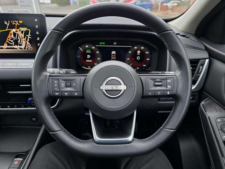 Android auto/Apple CarPlay (Wired), Blind spot warning, Drive modes (sport, normal, eco), Electric speed sensitive power steering, Emergency and breakdown call, Front and rear parking sensors, Full Digital 12.3" TFT Digital Combimeter, Google maps services - search, weather, 3D maps and Google street view, Idle stop/start system, Intelligent around view monitor, Intelligent Cruise control (ICC), Intelligent driver alert system, Intelligent forward collision warning, Intelligent lane intervention, Lane departure prevention, Lane departure warning system, Maximum speed limiter, Moving object detection, Nissan connect 12.3 inch touchscreen infotainment system, Nissan connect navigation, Push button starter, Rear cross traffic alert, Rear view camera, Remote control services - door locks, lights, horn and car locator, Telematics - notifications and connectivity services, TomTom live traffic services, Traffic sign recognition with legal speed adjustment, Trip computer, Virtual personal assistant and firmware over the air capability, Wireless apple carplay, 6 speakers, AM/FM audio system with DAB, Bluetooth audio streaming, Front USB connections (Type-A and Type-C), Rear USB charging only ports (Type-A and Type-C), Auto dimming rear view mirror, Auto rear wiper when reversing, Automatic hazard signal with emergency stop signal, Body colour mirror caps, Body coloured door handles, Bodyside mouldings, Chrome side window finisher, Door handle with button, e-POWER badging, Electric auto folding door mirrors, Electrically adjustable and heated door mirrors with LED turn indicator, Follow me home headlights, High beam assist, Intelligent auto headlights, LED daytime running lights, LED Headlights, LED rear lights, One touch front and rear electric windows with remote opening and closing, Partially body coloured bumpers, Privacy glass, Rear bumper with graphite insert, Rear reversing light (bulb lighting), Rear roof spoiler, Rear side wing doors, Rear styling plate, Shark fin antenna, Splash free rain sensing wipers, Super UV and infrared cut glass, Three blink turn signal, 12v power socket in dashboard and luggage, 2x Rear coat hooks, 3 bench rear seats in 2nd row, 3 rear headrests, 4 folding assist grip, 6-way manually adjustable driver's seat, 60/40 split folding rear seat bench, Ambient lighting around centre console, Centre console storage tray, Chrome interior door handles, Cloth monoform upholstery, Driver and front passenger sunvisors with illuminated vanity mirrors, Driver seat back pocket, Dual zone automatic climate control with pollen filter, e-POWER shifter, Front and rear door storage, Front centre console and armrest, Front cupholders x 2, Front door with bottle holders, Glovebox with light, Hard trunk cover, Height adjustable driver's seat, Height adjustable front headrests, Height adjustable passenger seat, Leather steering wheel, Luggage board system, Luggage space lighting, Manually adjustable passenger (slide recline + lifter), Multifunction steering wheel, Passenger seat back pocket, Rear armrest with 2 cupholders, Rear door bottle holders, Single front passenger seat, Soft PVC kneepad, Steering wheel switches, Sunglasses holder, Tilt/telescopic adjustable steering wheel, Two rear isofix child seat anchorage points with top tether, Welcome light and console tray ambient lighting, 3x3 point rear seatbelt pretensioners + load limiters, ABS with EBD and brake assist, Active brake limited slip, Auto hold function, Child locks on rear doors, Curtain and front side, far side airbags, Driver and passenger airbags, Driver, passenger and 2nd row rear seat belt reminder, Electronic parking brake, Front seatbelt pretensioners + load limiters, Height adjustable front seatbelts, Hill start assist, Intelligent blind spot intervention, Intelligent front emergency braking with pedestrian, cyclist recognition and junction assist, Intelligent rear automatic braking, Tyre pressure monitoring system, Vehicle dynamic control, Capless fuel filler, Engine immobiliser, Intelligent Key, Remote central door locking with deadlocking, Thatcham Cat.1 alarm, Interior instrumental panel B finisher, 18" Diamond cut alloy wheels, Tyre puncture repair kit,