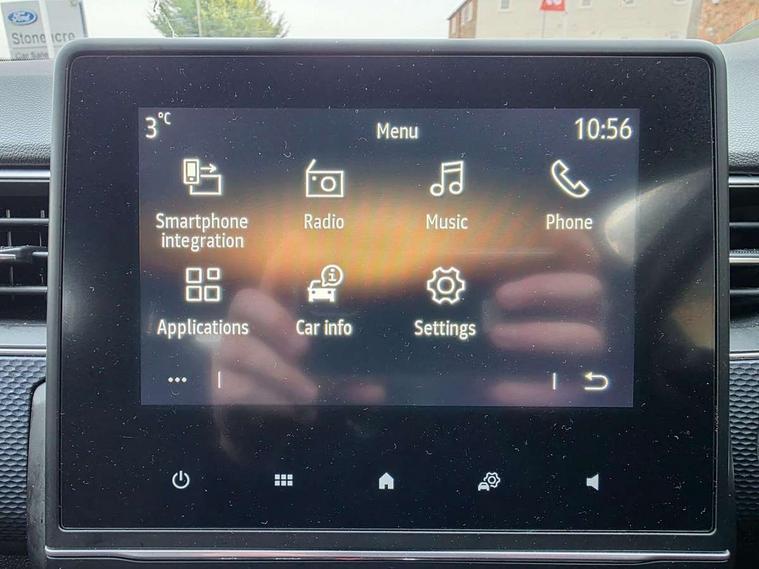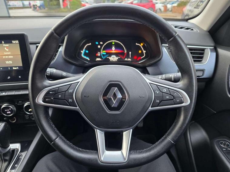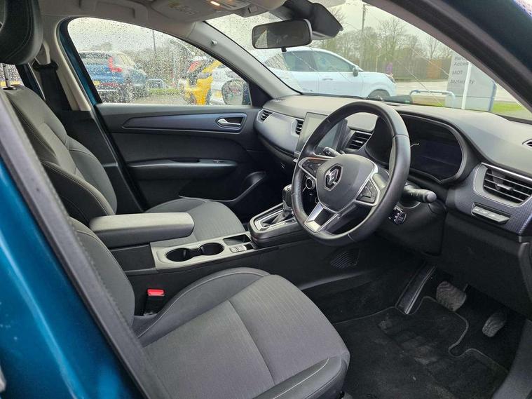7" TFT Driver information display, Bluetooth system, Cruise control and speed limiter, EASY LINK 7" touchscreen, eCall emergency call system, Eco mode, EV button to activate pure mode, Front and rear parking sensors, Gear change indicator, Lane departure warning, Lane keep assist, Rear view camera, Renault automatic emergency assist, Smartphone integration compatible with Apple CarPlay and Android Auto, Traffic sign recognition, Trip computer, Variable assistance electric power steering, Arkamys classic sound system with 6 speakers, DAB radio, USB port, 3rd brake light, Automatic headlights, Automatic windscreen wipers with rain sensor, Black side door protection with chrome insert, Body coloured bumpers, C-shaped LED front signature lighting, Chrome decopart on wing (fender molding), Dark grey front and rear skid plates, Front and rear electric windows, Front driver window with one touch facility and anti-pinch function, Front grille with chrome on upper part, Full LED headlights, Heated rear window, Rain sensor, Rear windscreen wiper, Shiny black shark fin antenna, Side mirrors adjustable electrically, electrically foldable, with defrosting and temperature sensor, automatically foldable at vehicle closure, Tinted rear windows, 3 seat bench in 2nd row, 60:40 split and fixed base rear seats, Automatic climate control with combined filter, humidity sensor and AQS, Black and grey cloth upholstery, Central console with storage, Driver's seat height adjustment, Front and rear head restraints, Height and reach adjustable steering wheel, ISOFIX child seat fixing points on rear outermost seats, Passenger seat height adjuster, Rear air vents, Single front passenger seat, Standard bulb front and rear roof lights, Synthetic leather steering wheel, 3x3 point rear seat belts, ABS+EBA, Active emergency braking system, B Brake Mode - One pedal driving with increased regenerative braking, Distance warning alert, Driver airbag, Driver and passenger front and side airbag deactivation, Driver and passenger side airbags, Driver height adjustable seat belt, Electronic parking brake, ESC (Electronic Stability Control), Front and rear no seatbelt warning sound, Front curtain airbags, Front head airbags, Hill start assist, Passenger airbag, Tyre pressure warning light, Anti drill door locks and locking fuel cap, Central door locking, Deadlocking system, Hands free keycard with Keyless access and start, RAID (Renault Anti-Intruder Device) automatic door locking, Rear side wing door and window child locking function (front driver door control panel), Superlocking, Thatcham alarm, 17" Bahamas diamond cut alloy wheels,
