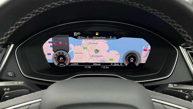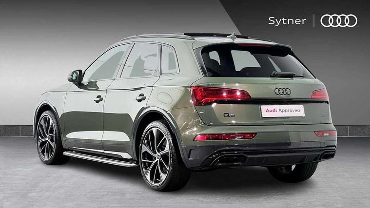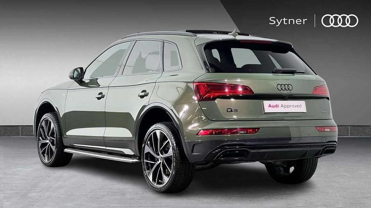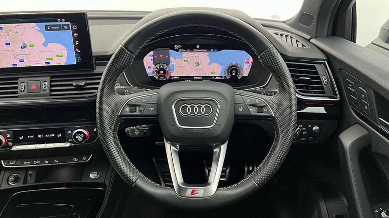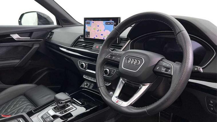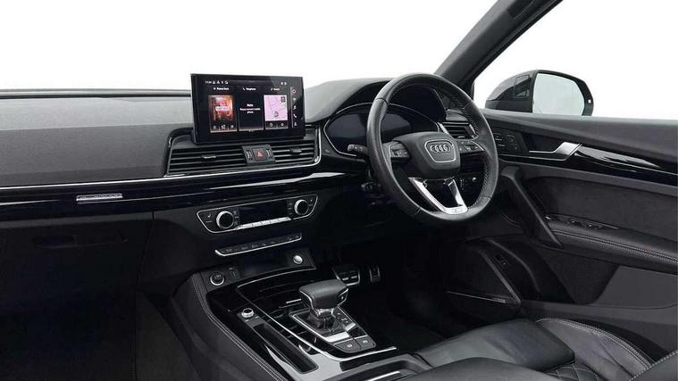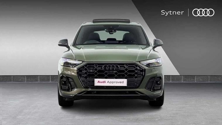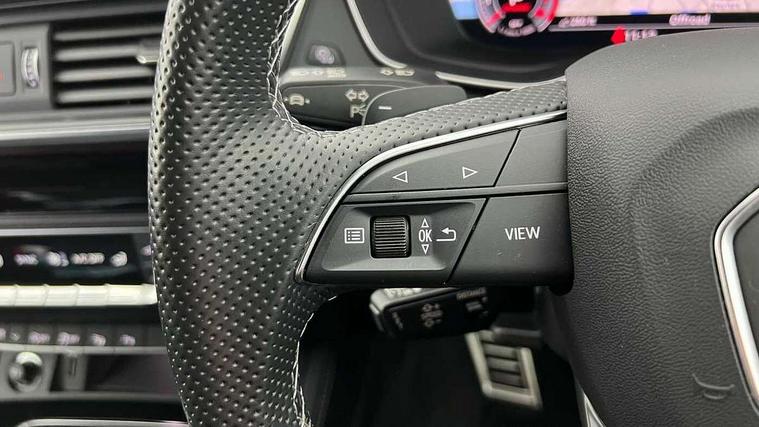 360 degree camera with top view, Advanced key with electric hands free boot opening system, Audi connect safety and service (e-call), Audi connect with Amazon Alexa Integration, Audi drive select, Audi Phone Box with wireless charging - Qi enabled compatible phone and additional bluetooth interface, Audi virtual cockpit plus with 12.3" screen and three different layout designs, Audi wireless smartphone interface, Automatic start-stop system with coasting functionality and efficiency programme, Electro - mechanical power assisted steering, Head up Display, MMI navigation plus with 10.1" touch screen, Mobile telephone preparation - bluetooth interface, Park assist with parking aid plus, Power tailgate, Service interval indicator, Voice control system with Audi hotword activation "Hey Audi", Adaptive air suspension, Quattro on demand, Bang + Olufsen sound system, DAB Digital radio, 3rd brake light, Acoustic windscreen, Audi beam with 'Vorsprung' logo, Audi matrix LED headlights with OLED rear lights + dynamic front and rear indicators, Auto dimming door mirrors, Auto dimming rear view mirror, Automatic headlight adjustment, Automatic headlights and windscreen wipers, Black roof rails, Body colour bumpers, Body colour underbody protection, Chrome plated exhaust trims, Daytime running lights, Door sills in Selenite silver, Electric adjustable/heated/folding door mirrors, Front air inlet surrounds in titanium black, Front and rear electric windows, Gloss black finish for Audi rings and Q5 logos without engine badging, Headlight washers, High gloss black B pillar trims and triangular rear door trim, Lower bumpers painted in contrast Manhattan grey, Panoramic sunroof, Rear chrome trim strip below lights, Rear privacy glass and rear side windows, Rear side wing doors, Rear wiper, Roof bars, Running boards, S Line rear spoiler, 2 x USB charging port with aux input socket, 3 rear headrests, 3 spoke heated leather multi-function steering wheel, 4 way electric lumbar support for driver and front passenger, 40:20:40 split folding 3 rear bench seat in 2nd row with rear centre armrest, Black cloth headlining, Comfort front centre armrest, Contrast stitching on seats, steering wheel and gear lever gaiter, Deluxe 3 zone electronic climate control, Electrically adjustable front seats with driver memory, Fine Nappa leather upholstery with diamond pattern contrast stitching + front sport seats with S embossed logo, Front/rear floor mats, Gear lever in black leather, Heated front and outer rear seats, Height adjustable front head restraints, Illuminated door sill trims with aluminium inlays, ISOFIX child seat mounting and top tether, Luggage compartment cover, Massage function for front seats, Rear seat bench plus, Removable luggage compartment floor, Single front passenger seat, Stainless steel pedals, Sunvisors with vanity mirrors, Tool kit, Black styling package - Q5, City Assist pack - Q5, Extended interior upholstery pack - Q5, Extended LED Interior multi coloured Lighting Pack - Q5, Tour pack - Q5, 3 point seatbelts on all seats, 6 airbags - Driver, front passenger, curtain and side airbags, Electrically operated child locks on rear doors, Electromechanical parking brake, Electronic stabilisation control including ABS, ASR and EDL, Front passenger airbag deactivation, Hill descent control, Hill hold assist, Multi collision brake assist, Pop-up bonnet for pedestrian protection, Pre sense city, Seat belt force limiter, Seatbelt monitoring, Tyre pressure warning, Warning triangle and first aid kit, Anti theft alarm, Anti-theft wheel bolts, Keyless Go access/ignition system, Remote central locking, Piano black finish inlay, Tyre repair kit,