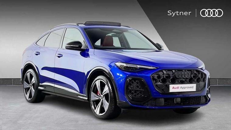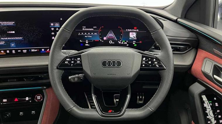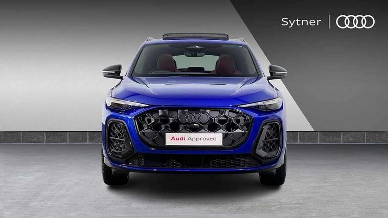 Adaptive cruise assist plus with steering intervention, Advanced driver attention alert, Audi application store, Audi connect emergency call and service, Audi digital key, Audi drive select, Audi smartphone interface, Audi virtual cockpit plus with 11.9" OLED colour display, Camera based traffic sign recognition, Fatigue monitor, Front cross traffic intersection assist, Garage door opener, Lane change assistant with exit warning system, rear cross traffic alert and rear turn assist, Lane departure warning with emergency assist, MMI 10.9" front passenger touch display, MMI navigation plus with high resolution 14.5" OLED touchscreen colour display, Park assist plus, Parking system plus with 360 display, PAS, Reversing camera, Swerve assist and turn assist, Top view camera, Traffic sign based speed limiter, S adaptive air suspension, 2 USB-C ports in both the front and rear, DAB Digital radio, Smartphone compartment with wireless charging, Acoustic glass for front door windows, Active digital light signatures - Six additional combinations of active daytime running light signature, Auto dimming rear view mirror, Coming/leaving home lighting function, Digital OLED tail lights including communication light, Electrically adjustable heated and folding + automatically dimming exterior mirrors, Exhaust tailpipes in dark chrome, Front and rear electric windows, Front door sill trims with aluminium inlays, illuminated with 'S' logo, Full body paint finish, Headlight cleaning system, Heated rear window, High beam assist, High gloss window surrounds, Inlay and front air inlets in matt anthracite chrome, Logo projection light in exterior mirrors, Matrix LED headlights, Memory function for door mirrors, Panoramic sunroof, Privacy glass, Projection light for rear window, Radiator grille in phantom black, Rear and side windows with heat insulating glass, Rear honeycombe grille in matt black with inlay in matt anthracite chrome, Rear side wing doors, Rear wash/wipe, Red S rhombus badging with 'S' lettering on rear, S exterior styling, Towbar preparation, Windscreen with acoustic glazing, 3 rear head restraints, 3 seat bench in 2nd row, 3 spoke leather steering wheel with multi-function buttons with touch control, flattened on top and bottom, with S badging and contrast stitching, 40:20:40 split folding rear seat bench with centre armrest and cup holders, Comfort centre armrest, Deluxe 3 zone electronic climate control, Electric steering wheel adjustment, Electrically adjustable front seats with memory function for driver's side, Front and rear floor mats, Front seat ventilation, Front sport seats with integrated head reastrains, Headlining in black cloth, Heated front seats, Heated outer rear seats, Heated steering wheel, i-Size child seat mounting on the front passenger side and outer rear seats, i-Size and top tether on the outer rear seats, Interior trim in aluminium look, Luggage compartment lid, electrically opening and closing, Perforated fine nappa leather with diamond stitching incl. ventilation and massage function for front seats, Pneumatically adjustable lumbar support with massage function for front seats, Single front passenger seat, Softwrap in Dinamica, Stainless steel pedals and footrest, Steering wheel grips in perforated leather and shift paddles, Ambient lighting package plus - Q5, Black styling package plus - Q5, Sound and Vision pack - Q5, Storage and luggage compartment pack - Q5, 3x3 point rear seatbelts, ABS, Acoustic vehicle alerting system, Convenience key with safelock, Driver and front passenger airbag with passenger airbag deactivation, Electric child safety locks, First aid kit with warning triangle and high visibility vests, Front emergency brake assist, Front side airbags with head airbag system and front interaction airbag, Hill hold assist, Occupant detection in rear seat area, Proactive passenger protection system for front, sides and rear, Red brake calipers, Side airbags in front and rear with head airbag system and front interaction airbag, Tyre pressure loss indicator, Anti theft alarm, Anti-theft wheel bolts, Remote control key with SAFELOCK and keyless go, Accent surfaces and control buttons in gloss black, Black dashboard with contrast stitching, Steel grey seat stitching, Upper and lower interior elements in dinamica microfiber, Tyre repair kit,