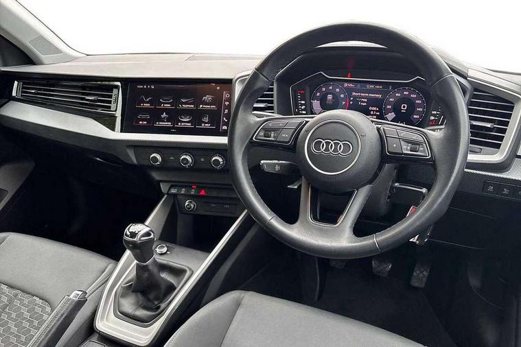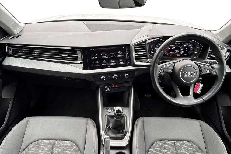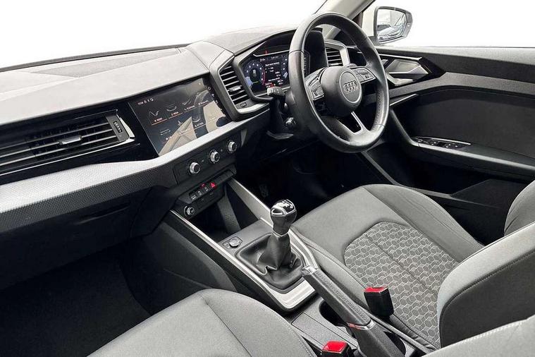 10.25" Digital instrument cluster display classis style instrument dials + speed, odometer, time, outside temperature, telephone menu + fuel level warning, Audi drive select - power steering assistance + engine, Audi smartphone interface with connect compatible smartphone via USB directly MMI display + Nav, music, third party apps controlled via MMI controller, Automatic start/stop system, Bluetooth interface, Cruise control, Driver's information system, Electromechanical power steering, Emergency e-call, Lane departure warning system, Rear parking sensor, Service interval indicator, Speed limiter, Voice control system, Washer fluid level indicator, Dynamic suspension, 2 x USB type C connection points, 6 passive loudspeakers, DAB Digital radio, MMI radio plus with 10.1" colour MMI display screen and MMI touch, Auto dimming rear view mirror, Body coloured bumpers, Body coloured door mirrors, Electric front and rear windows, Electrically adjustable, heated, folding door mirrors with integrated LED side indicator, Front side air inlets in grained matt black and C frame in anthracite black, Heat insulating glass windscreen and side windows, Heated rear windscreen, High level LED brake light, LED headlights with LED rear lights + dynamic rear indicators + headlight adjustment and high beam, turning light + LED daytime running lights, Radiator grille and rear diffuser in matt anthracite black, Radiator protective grille frame in matt aluminium silver, Rain and light sensors, Rear fog lights, Rear side wing doors, Rear wiper, Side front spoiler lips in grained matt black, 12V socket in centre console with two cup holders, 3 rear seats with headrests, 3 seat bench in 2nd row, 3 spoke leather multifunction plus steering wheel, 40:60 Split folding rear seat or folded fully, Black front and rear floor mats, Door sill trims with aluminium inlay, Driver and passenger seat with manual height adjust with forward and backwards adjustment, Front head restraints, Front passenger seat, Grey cloth headlining, Height and reach adjustable steering wheel, ISOFIX child seat mounting for front passenger and outer rear seats including top tether attachment point of outer rear seats, Leather gear knob with aluminium trim, Leatherette handbrake grip, Luggage compartment light with front and rear reading lights, Manual air conditioning, Manually adjustable lumbar support in front seats, Novum cloth upholstery with front sport seats, Luggage compartment pack - A1, 3x3 point rear seatbelts, Audi pre-sense front with pedestrain and cyclist recognition, Brake assist function, Driver and front passenger airbag with front side and head airbags, Electronic Stability Control including ABS, EBD, ASR and EDL, Front passenger airbag deactivation switch, Hill hold assist, Manual rear child locks, Seatbelt height adjustment for front seats, Seatbelt monitoring, Tyre pressure warning light, Warning triangle and first aid kit, Anti theft alarm, Anti theft wheel bolts and loose wheel warning, Immobiliser, Remote central locking with 2 foldaway keys, Aluminium trim for control switches, air vents and digital instrument cluster, Black dashboard, Silver grey accent areas including air vents, door handle recesses and centre console in diamond paint finish, Slate grey inlays polygon structure in fine paint finish,
