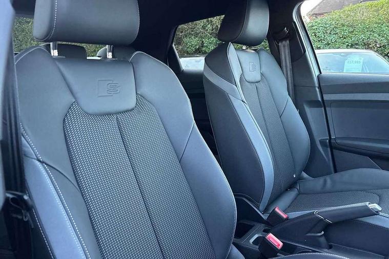 10.25" Digital instrument cluster display classis style instrument dials + speed, odometer, time, outside temperature, telephone menu + fuel level warning, Advanced driver attention and drowsiness monitor, Audi connect emergency call and service, Audi drive select, Audi remote connect and control, Bluetooth interface, Camera based traffic sign recognition, Cruise control, Driver's information system, Electromechanical power steering, Lane departure warning system, Rear parking sensor, Service interval indicator, Smartphone interface, Speed limiter, Start stop system with recuperation, Voice control system, Washer fluid level indicator, Sports suspension, 2 x USB type C connection points, 6 loudspeakers, DAB Digital radio, MMI radio plus with 10.1" colour MMI display screen and MMI touch, Auto dimming rear view mirror, Black door mirror housings, Black side skirts, Body coloured bumpers, Door sill trims with aluminium inlays and logo, Electric front and rear windows, Electrically adjustable, heated, folding door mirrors with integrated LED side indicator, Front side air inlets in grained matt black and C frame in anthracite black, Front wing badges, Headlight cleaning system, Heat insulating glass windscreen and side windows, Heated rear windscreen, High level LED brake light, LED daytime running lights, LED headlights with range control LED rear lights + dynamic rear indicators, Light and rain sensors, Privacy glass, Radiator grille and rear diffuser in matt anthracite black, Radiator protective grille frame in matt aluminium silver, Rear fog lights, Rear side wing doors, Rear wiper, Side front spoiler lips in grained matt black, 12V socket in centre console with two cup holders, 3 rear seats with headrests, 3 seat bench in 2nd row, 3 spoke flat bottomed multi-function plus leather steering wheel with S badging, grips in preforated leather, contrast stitching and paddle shift, 40:60 Split folding rear seat or fully collapsed, Black carpets, Black cloth headlining, Front and rear velour black floor mats with contrast stitching in fine silver, Front head restraints, Front passenger seat, Height and reach adjustable steering wheel, Interior lighting includes roof module, front and rear reading lights and right luggage compartment lighting, ISOFIX child seat mounting for front passenger and outer rear seats including top tether attachment point of outer rear seats, Leather gear knob with aluminium trim, Leather handbrake grip, Manual air conditioning, Manual height adjustable for driver and front passenger seat, Manually adjustable lumbar support in front seats, Stainless steel pedals, Ambient lighting package - A1, Black styling pack - A1 Sportback Black Edition, Luggage compartment pack - A1, 3x3 point rear seatbelts, Audi pre-sense front with pedestrain and cyclist recognition, Brake assist function, Driver and front passenger airbag with front side and head airbags, Electronic Stability Control including ABS, EBD, ASR and EDL, Front passenger airbag deactivation switch, Hill hold assist, Manual rear child locks, Seatbelt height adjustment for front seats, Seatbelt monitoring, Tyre pressure loss indicator, Warning triangle and first aid kit, Anti theft alarm, Anti theft wheel bolts, Immobiliser, Remote control key with safelock, Aluminium trim for control switches, air vents and digital instrument cluster, Black dashboard, Silver grey inlays polygon structure in diamond paint finish, Structured grey accent surfaces insert of air vents, interior door handle recesses and centre console in quartz paint finish,